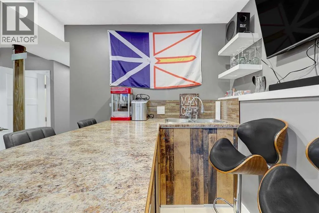 STUNNING, BETTER-THAN-NEW MODIFIED BI LEVEL FACING POND IN WESTGATE! This extensively finished modified bi-level sits in a sought-after pocket of Westgate, only a short walk from the new hospital, the college, multiple shopping districts, and a wide selection of restaurants. Built in 2018, the property offers a move-in-ready experience with four bedrooms, three bathrooms, a fully developed yard, a heated and insulated garage, fencing already in place, and an enclosed three-season deck. The home presents even better than new, featuring fresh interior paint, a new fridge and stove, a basement wet bar, and a remarkable custom shower constructed with tempered glass. The front entry showcases impressive vaulted ceilings and opens into a bright, seamless layout that blends the kitchen, dining area, and living room. The kitchen is equipped with quartz surfaces, a centre island with seating space, a walk-in pantry, generous cabinetry, and high-end appliances. The dining area easily accommodates a large table for gatherings and entertaining, while the living room is framed by an oversized window and an eye-catching fireplace. Two well-proportioned bedrooms, a full bathroom, and convenient hallway linen storage complete the main level. The private primary suite is set above the garage, offering a walk-in closet and a four-piece ensuite. The fully completed basement is a standout feature, offering an expansive family room, a full wet bar, a showpiece bathroom with oversized tile flooring and a tiled shower, and an additional spacious bedroom. The garage includes heat, insulation, and a utility sink with hot and cold taps. Outside, the backyard is fully fenced + landscaped and includes a covered three-season deck with storage beneath. (Hot tub is negotiable) (id:27476)