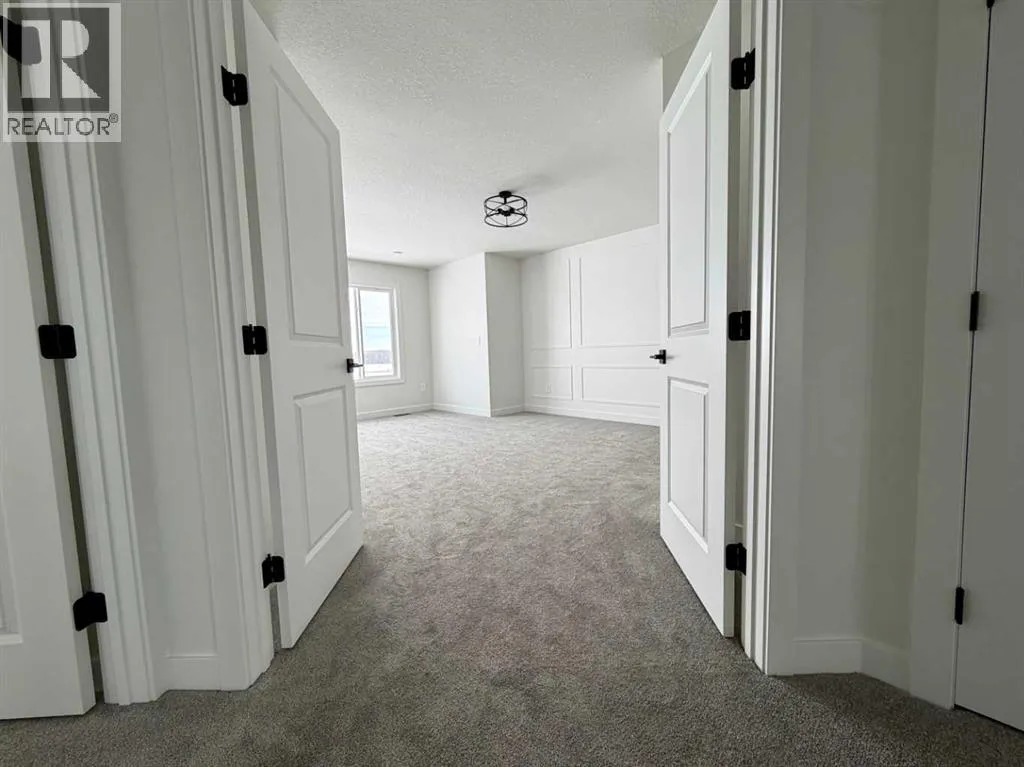 Discover this stunning brand-new home in Signature Falls, featuring an all-new floor plan thoughtfully designed for family living. The upper level offers 3 spacious bedrooms plus a versatile bonus room, ideal for families of all sizes. The bright, open main floor is filled with natural light from large East facing windows, creating a warm and welcoming atmosphere. The kitchen is perfect for entertaining, complete with appliances, a central island and eating bar, corner pantry, and a generous dining area. The living room showcases an electric fireplace with feature wall, adding modern character and comfort. A convenient half bath and main-floor laundry located just inside the double attached garage enhance everyday functionality. Upstairs, enjoy a flexible bonus roomâperfect for TV area or a homework and study space. Step through elegant French doors into the primary bedroom, featuring a walk-in closet and a beautiful ensuite with a large custom shower and double sinks. Two additional well-sized bedrooms and a full bathroom complete the upper level. Situated on a desirable walk-out lot with no back neighbors & directly across from the park/playground, this home offers an unbeatable location in one of the areaâs most sought-after neighborhoods. Close to great schools, walking trails and nearby amenities! Ready for early Spring possession, call today! (id:27476)