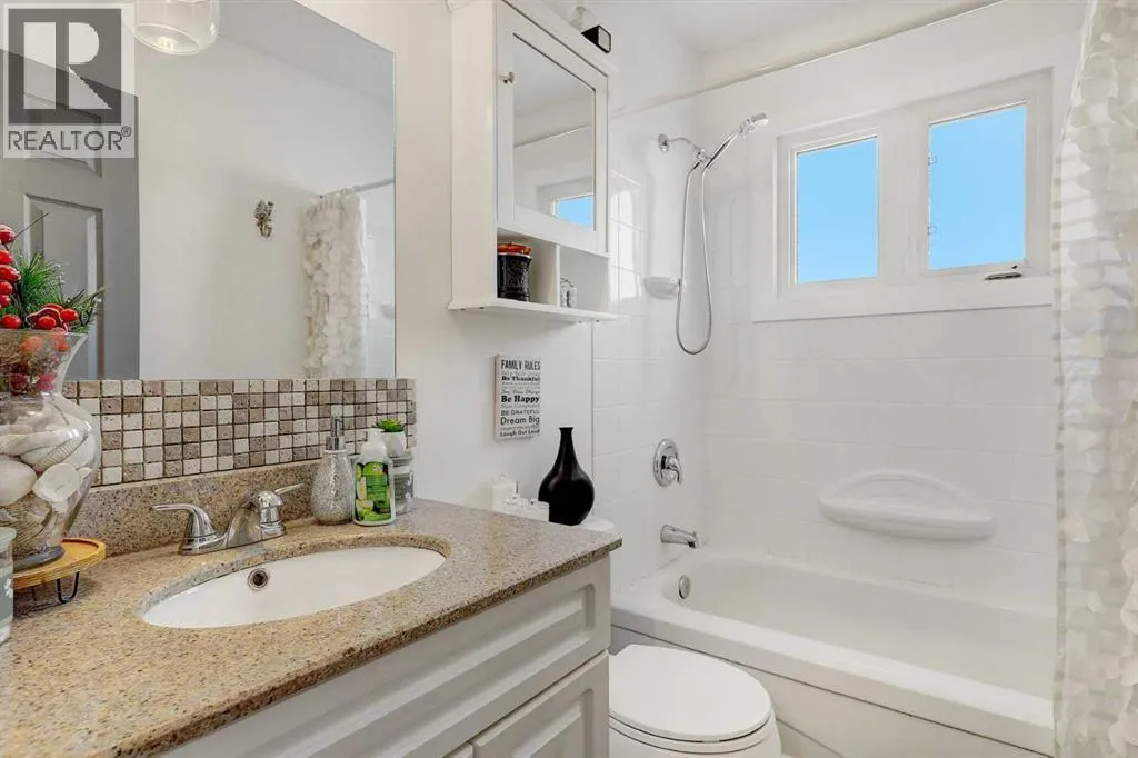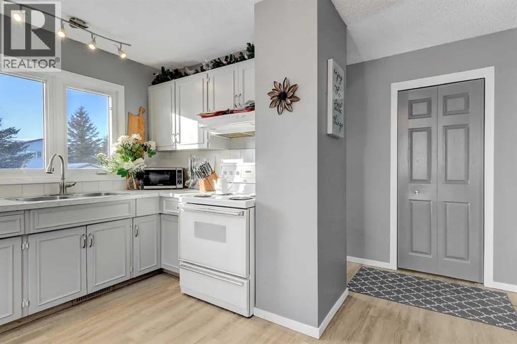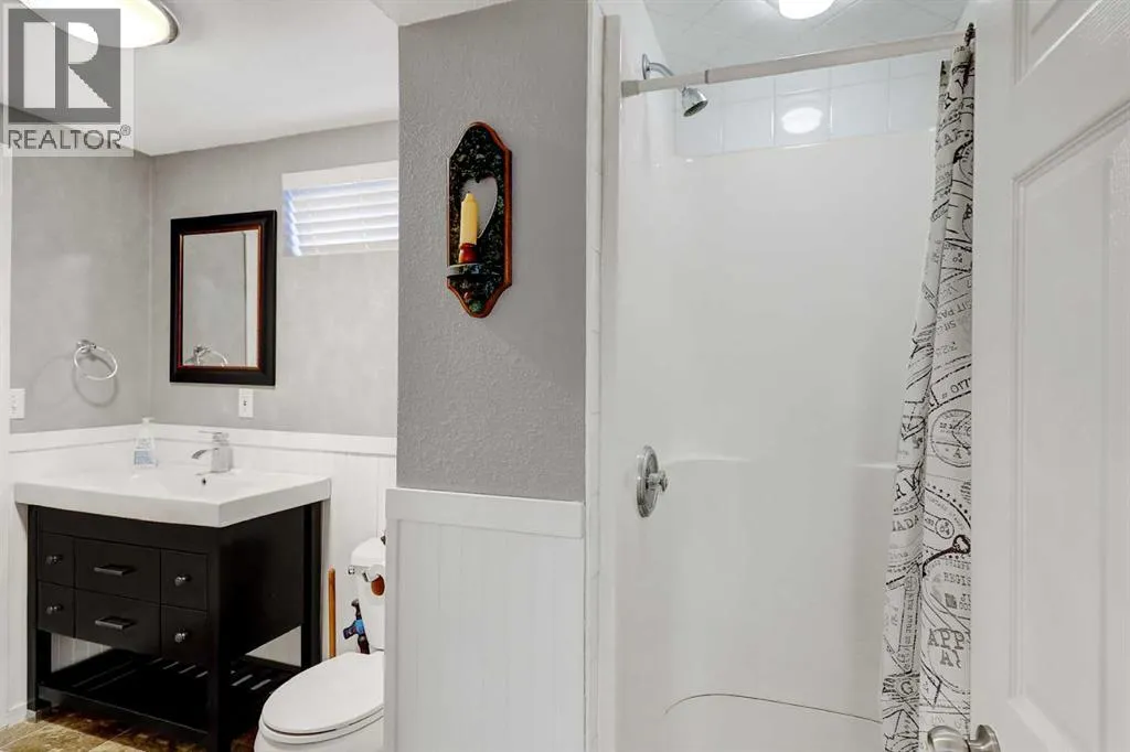 Welcoming and beautifully refreshed, this home stands out with eye-catching curb appeal and a floor plan that blends comfort with practicality. From the moment you step inside, youâre greeted by a bright, sun-filled living room where a large front window fills the space with natural lightâperfect for relaxing evenings or gathering with family and friends. Just off the living area, the kitchen is thoughtfully positioned and offers abundant light grey cabinetry, generous storage, and a window above the sink overlooking the backyard, making everyday living both easy and enjoyable.The main floor features a spacious primary bedroom highlighted by a stylish shiplap accent wall, a second bright and comfortable bedroom, and a well-appointed four-piece bathroom complete with a tiled tub and shower surround.The fully finished basement adds impressive additional living space and flexibility. A large family or recreation room provides the ideal setting for movie nights, kidsâ play space, or a games area. Youâll also find a generous bedroom with chair rail detailing and dual closets, an updated three-piece bathroom, and a versatile den enhanced with classic wainscoting. A dedicated laundry area and ample storage complete the lower level.Outside, the fully fenced yard is perfect for families and pets alike. Enjoy summer days on the brick patioâideal for outdoor dining or loungingâalong with raised garden beds, a handy storage shed, and plenty of room for play. There is even room to park your RV and space to add a garage, offering future value and convenience.Additional highlights include most upper-level windows updated (excluding the living room picture window), shingles replaced in 2018, mail delivery to the front door, and an exceptional location just steps from the Crystal Park trail system. Whether youâre searching for a fantastic family home or a solid investment opportunity, this property checks all the boxes. Book your showing with your REALTOR® today. (id:27476)