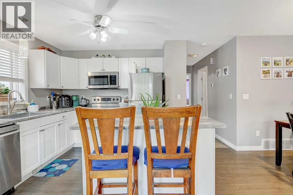 Located in the welcoming Lakeland neighborhood, this well-maintained duplex sits within easy walking distance of Maude Clifford School, making it an excellent option for families, first-time buyers, or investors. The home features a thoughtfully designed layout with a bright, open main living space that seamlessly connects to the kitchen and dining area.The kitchen is both functional and inviting, offering clean white cabinetry, a central island with bar seating, and a cozy dining nookâideal for everyday living and entertaining. Two spacious bedrooms and a full four-piece bathroom complete the main level.The fully developed lower level expands the living space with a large family room, a third bedroom, an additional four-piece bathroom, and a practical laundry and storage area. A separate entrance to the basement creates flexibility and offers potential for a secondary suite or income-generating opportunity.Numerous updates have been completed over the years, including a refreshed kitchen in 2017, upgraded flooring, lighting, appliances, bathroom improvements, low-flow toilets, a newer hot water tank, updated fencing, and fresh paint throughout.Outside, the property features a fully fenced and landscaped yard with convenient rear alley access and parking. Move-in ready and well cared for, this property presents a strong opportunity as an affordable home or a reliable investment. (id:27476)