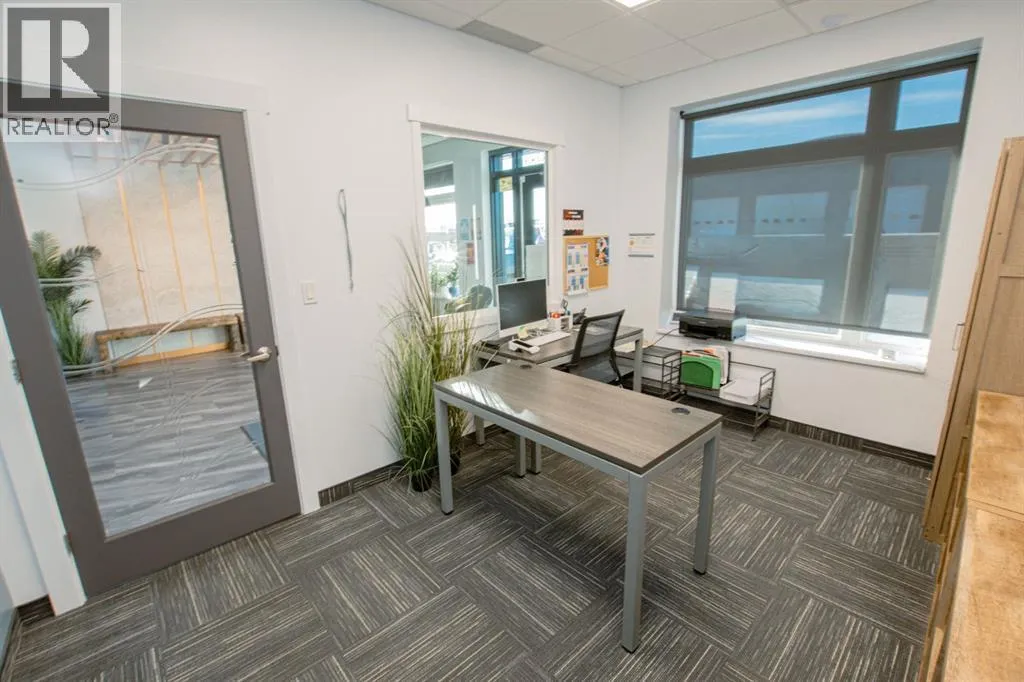 Modern commercial/office space with attached side bay featuring modern décor, contemporary color palettes, and generously sized layouts with large windows that flood the space with natural light. Constructed with ICF, this 3852 sq.ft unit offers exceptional energy efficiency for heating and cooling, as well as a remarkably quiet interior environment. Enjoy parking right to the doorstep, along with a large public parking lot. This modern facility showcases beautiful finishes throughout, including tiled washrooms, spacious front entrance with feature reception walls and high-quality construction designed for comfort, efficiency, and convenience. Main floor features 3 offices, 2 washrooms, large back storage room & direct access to the oversized 25.4Wx48' finished bay with 14' door. Upper-level features large boardroom or bull pen area with kitchen space + another massive open boardroom/flex space that could be divided into 2 more large offices or storage with multiple cubicles depending on your office needs. Base rent: 4494.00 +GST. Common area costs (incl water): $850.65 & Property Taxes: 1310.06 +GST = $6987.45/month. Sub-lease until Nov 30/2028. This is an immaculate mixed-use space offering quick possession, call today to view! (id:27476)