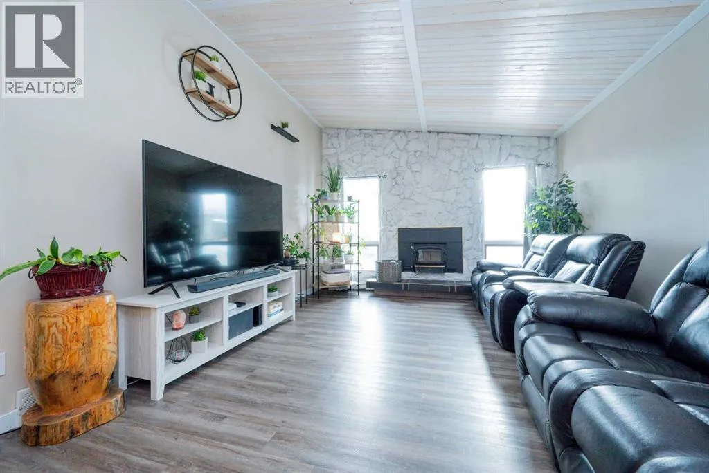 Not many like this home come up in desired neighbourhood of Country Club Estates! Situated on a quiet key hole like street with green space/park across the street and easement behind. Entering your home you will appreciate the tiled entry way with coat closet that welcomes you. Main level consists of kitchen + dining room, and large living room complimented by large windows and real wood burning fireplace. Kitchen hosts ample cabinet + counter space and must have pantry. Dining allows for a table of any shape or size. Heading up to the second level you will find the master bedroom with his and her closets, full bathroom and second bedroom. Third level boasts third bedroom, full bathroom, and second living room or massive fourth bedroom. Fourth and last level hosts another living room space, workout area, workshop space or whatever your heart desires. Utility room has no lack of storage and hosts that laundry there as well. Backyard is spacious as you can see and fully fenced awaiting all the activities and ideas you throw at it. Driveway has no lack of space allowing for RV Parking if you wish. This home also has Central Air Conditioning. Major upgrades include the roof in 2024, flooring, paint and light fixtures. Book your viewing today as affordable homes like this in a prime location do not come up often. (id:27476)