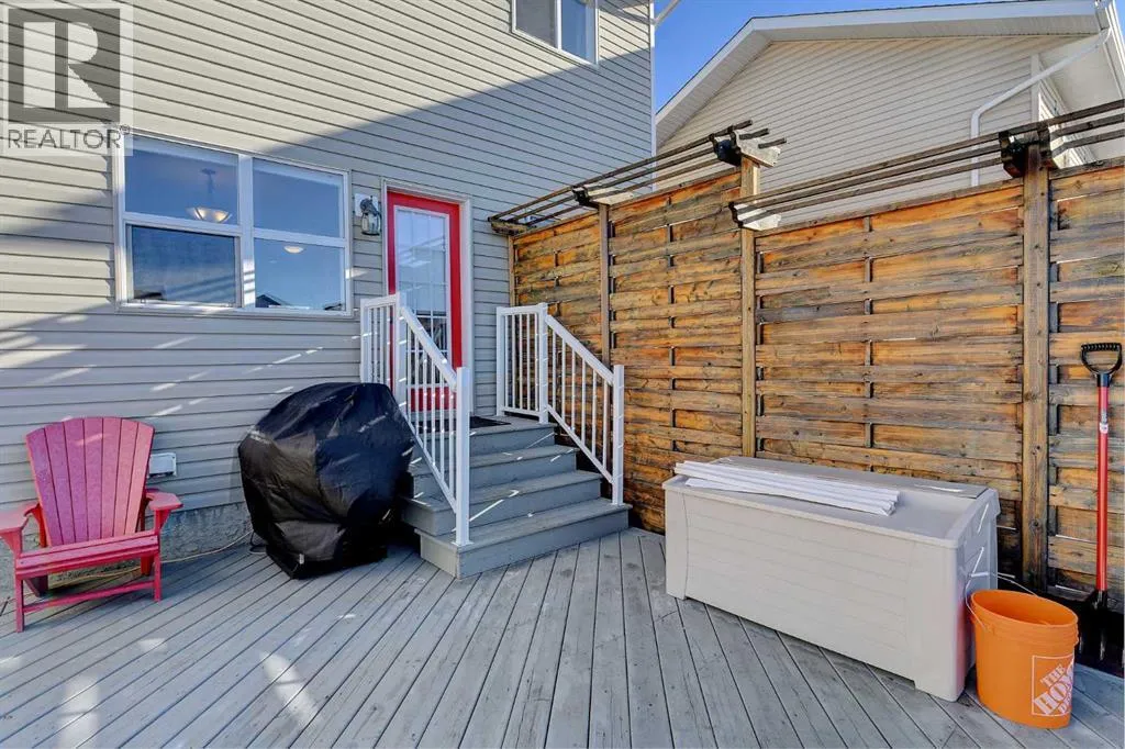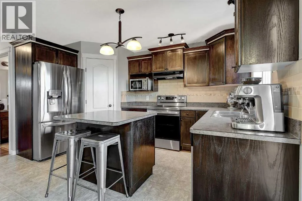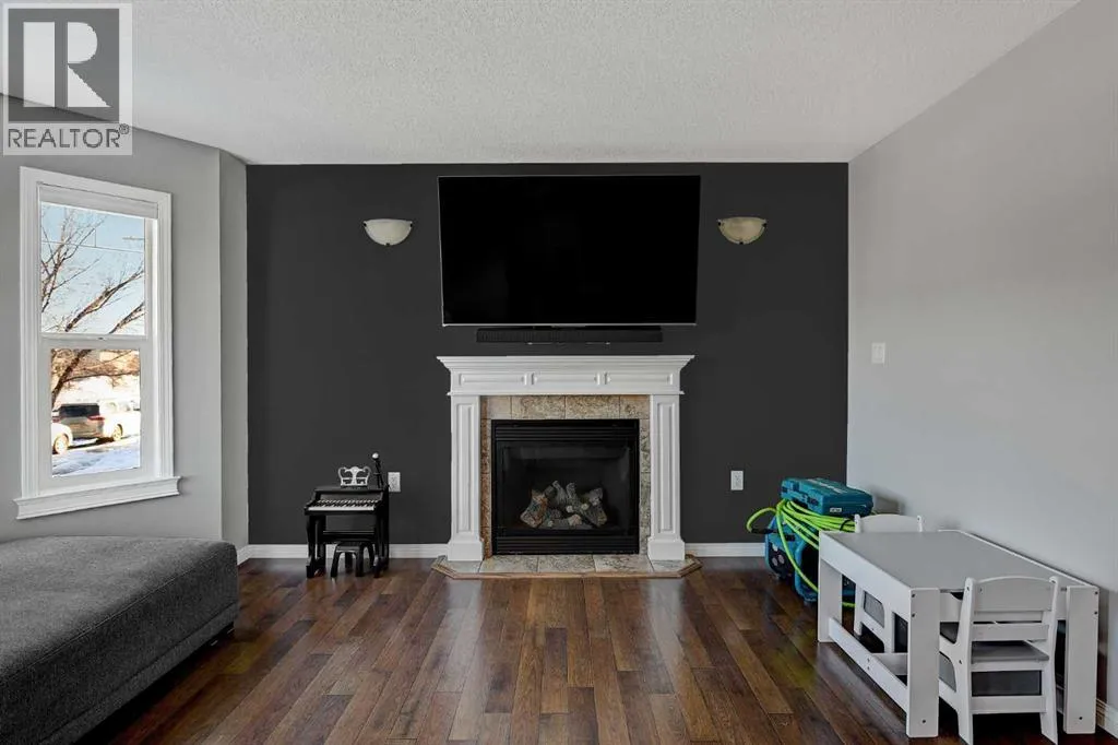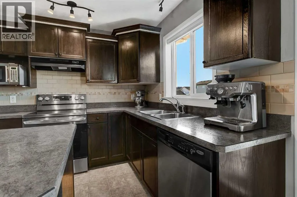 Fully developed two-storey living under $400,000âimmaculate, thoughtfully maintained, and completely move-in ready. From the moment you step inside, this home just feels right.The kitchen is a standout, featuring rich espresso cabinetry, a central island, and stainless steel appliancesâperfectly designed for both everyday living and entertaining. Large, sun-filled windows frame views of the fully landscaped, fully fenced backyard and flood the main floor with natural light.And the backyard? A gorgeous wood patio with a sleek, modern privacy fence, natural gas hookup for your BBQ, arched black metal gates, and a double concrete parking pad make this space as functional as it is invitingâideal for summer evenings and weekend gatherings.Back inside, the cozy living room is finished with durable laminate flooring and anchored by a natural gas fireplace. Upstairs, youâll find three well-sized bedrooms and a full bathroom, including a primary retreat complete with walk-in closet and private ensuite. New High effiency HWT (2021) and New high effeincy Furnace (2024) - New Kitchen Appliances (2025)The fully developed basement adds even more living space with a family room, an additional bedroom, and a full bathroom rough-in (ready for finishing)âperfect for guests, teens, or a home office setup. Clean, bright, and welcoming throughoutâthis is the kind of home you know is the right one the moment you walk through the door. (id:27476)
