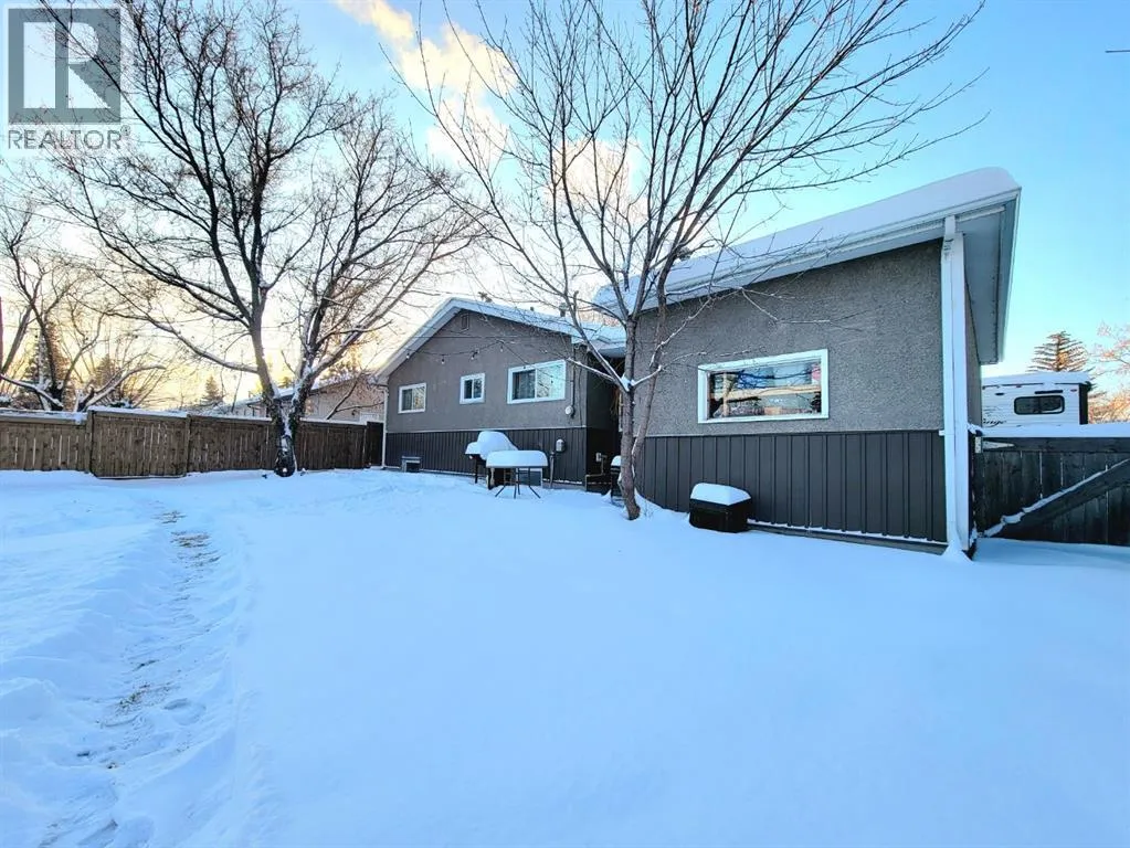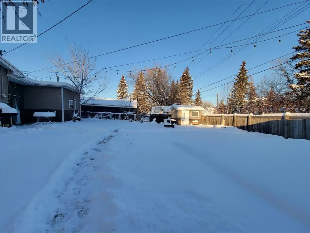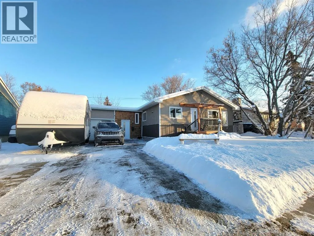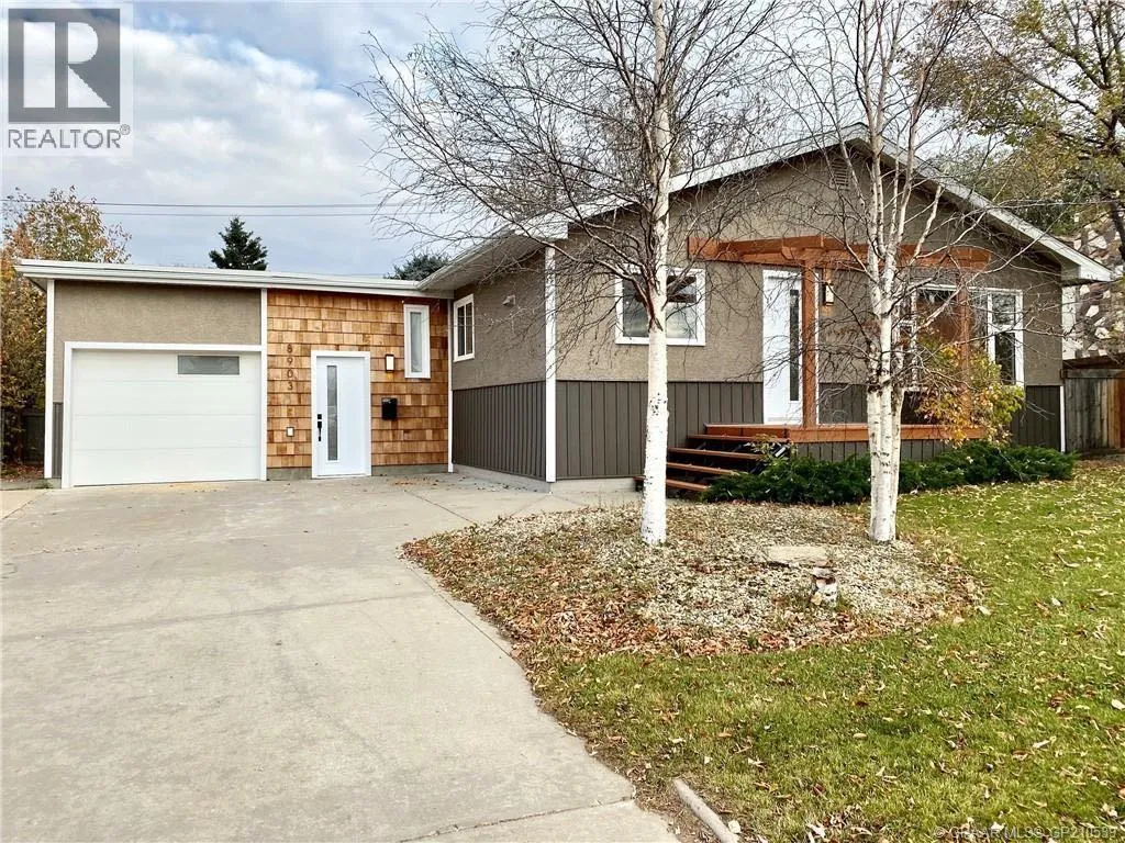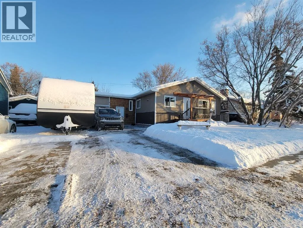 NEW TO THE MARKET! Check out this beautifully renovated, mid century, scandinavian designed bungalow, nestled on a large lot in Highland Park! This is right on 100 street, but youâll find the service road barrier creates good distance between the house & 100th street, plus the new windows keep the sound down & the view of the school & mature trees are well worth it! This homes 2019 renovations included a new roof, siding, windows, doors, garage door, kitchen, all brand new appliances, LED lights throughout, newer furnace, some plumbing & electrical & overall cosmetics. Hot water tank replaced recently. Brand new dishwasher as well! Fully developed with a bright and open basement with your 4th bedroom, and 2nd bathroom, plus a massive laundry room! The garage is 25â long, fully finished & heated. Between the garage & the house thereâs a heated breezeway providing functional space for coming & going, and accessing your favourite summer space.... your BACKYARD! Parking here you'll find desirable, with your concrete driveway allowing for 3 good sized vehicles, or even your camper! Around the corner from you, is Grande Prairies newest Playground. A Jumpstart Inclusive Playground. This revamped, 21,000-square-foot space is designed to be fully accessible for children of all abilities, replacing the previous 19-year-old structure! Highland park keeps getting more and more desirable. (id:27476)