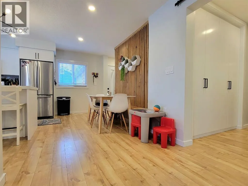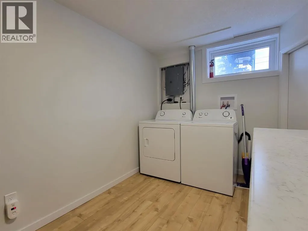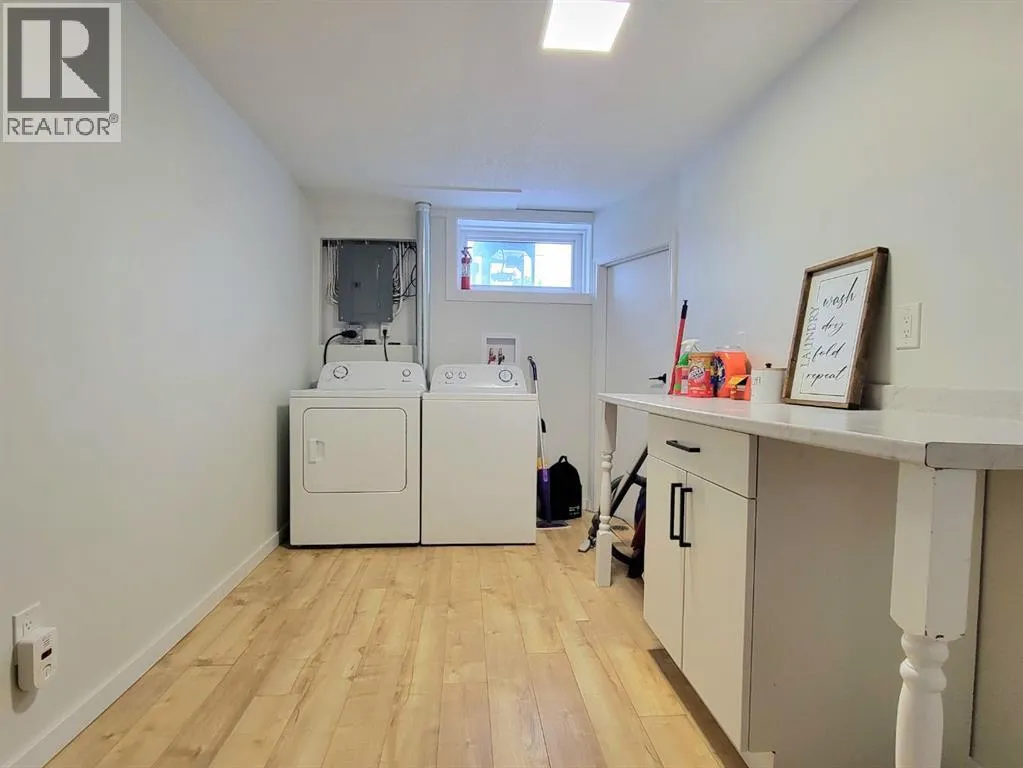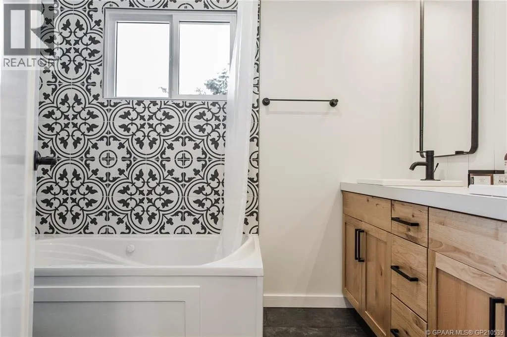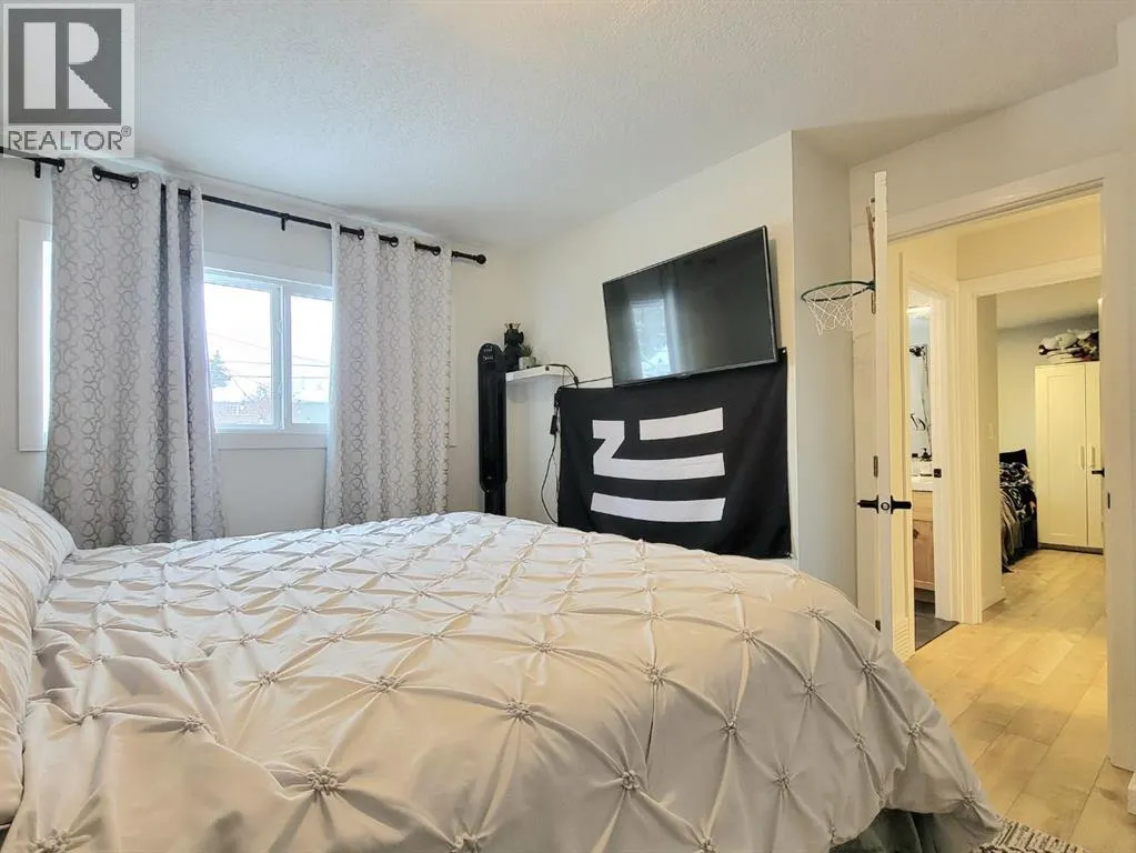 NEW TO THE MARKET! Check out this beautifully renovated, mid century, scandinavian designed bungalow, nestled on a large lot in Highland Park! This is right on 100 street, but youâll find the service road barrier creates good distance between the house & 100th street, plus the new windows keep the sound down & the view of the school & mature trees are well worth it! This homes 2019 renovations included a new roof, siding, windows, doors, garage door, kitchen, all brand new appliances, LED lights throughout, newer furnace, some plumbing & electrical & overall cosmetics. Hot water tank replaced recently. Brand new dishwasher as well! Fully developed with a bright and open basement with your 4th bedroom, and 2nd bathroom, plus a massive laundry room! The garage is 25â long, fully finished & heated. Between the garage & the house thereâs a heated breezeway providing functional space for coming & going, and accessing your favourite summer space.... your BACKYARD! Parking here you'll find desirable, with your concrete driveway allowing for 3 good sized vehicles, or even your camper! Around the corner from you, is Grande Prairies newest Playground. A Jumpstart Inclusive Playground. This revamped, 21,000-square-foot space is designed to be fully accessible for children of all abilities, replacing the previous 19-year-old structure! Highland park keeps getting more and more desirable. (id:27476)