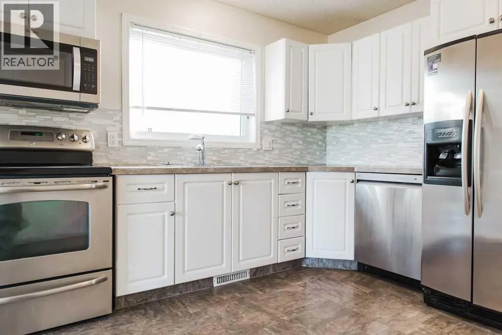 This updated 5 bed, 2 bath fully developed home with a 16âx20â heated workshop/studio is backing onto an easement and available for immediate possession! Located at 9221-111 Ave in Grande Prairie, this property offers incredible flexibility with space for a she-shed, office, man cave, hobby room, or gym, plus a functional layout featuring 3 bedrooms and a full bath upstairs, and 2 additional bedrooms with a second full bath downstairs. The basement also includes a spacious rec room, finished laundry room, and a storage room complete with cabinetry set up for a deep freeze. Extensive renovations completed in 2014 include a fully redone exterior with 1â foam insulation, new siding, soffit, and windows, along with a completely rebuilt basement with updated plumbing and electrical; additional updates include a 2014 furnace, 2018 hot water tank, 2010 shingles, and wiring inspected in 2025. The heated workshop is truly impressive with full power, natural gas heat, shelving, plywood-finished walls, and windows for natural light. Out front youâll find an extra-large 22' x 33' concrete parking pad that can accommodate two full-sized 1-ton dually long box crew cabs or up to four smaller vehicles. With all the big-ticket updates already done, this move-in-ready property is offered at $324,900. Showing start monday! Click on the 3D or multi media link to view the 3D tour. (id:27476)