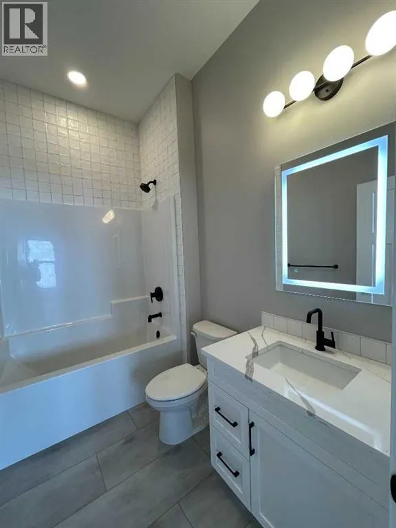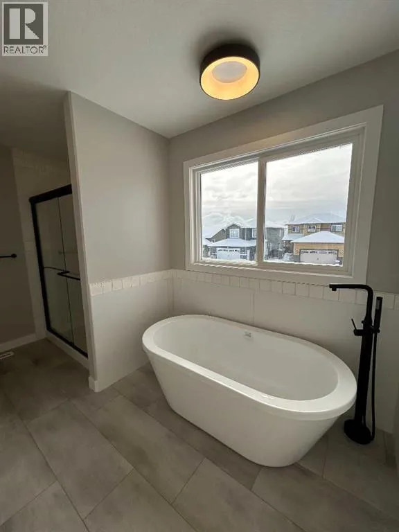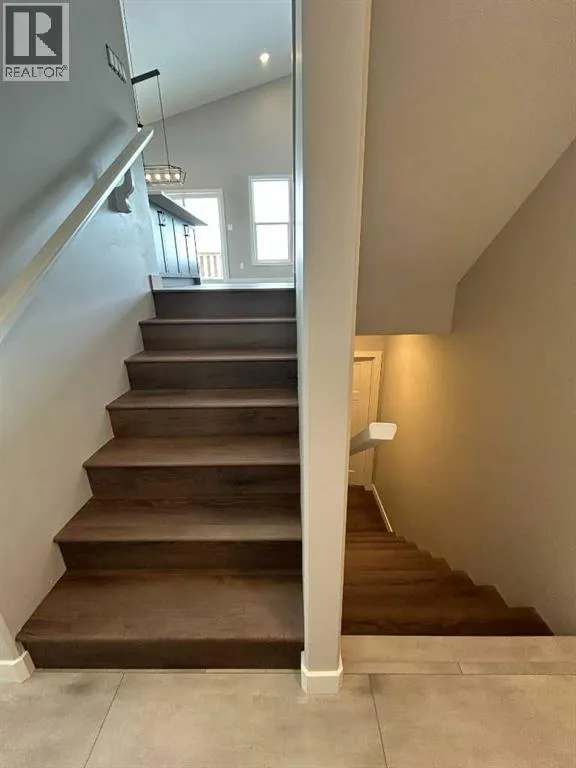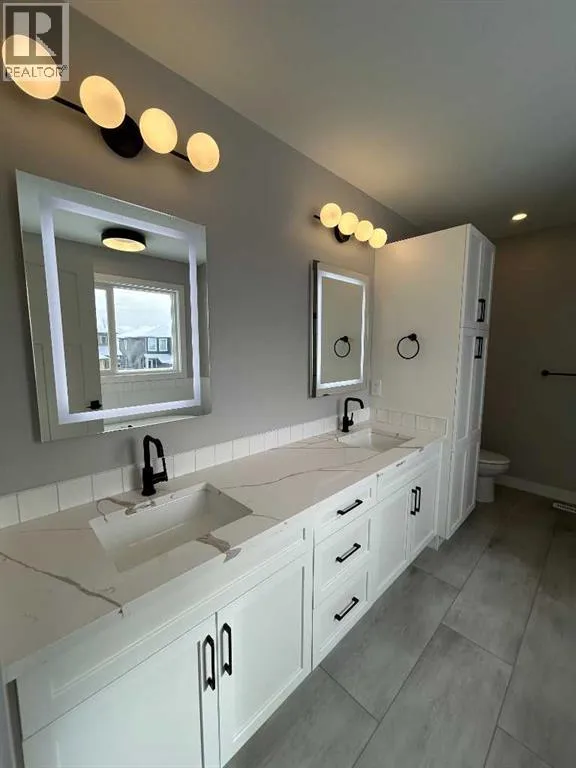 Clover Construction Job # 142. 'Hickory' modified bilevel plan with triple garage. Open plan. 3 bedrooms. 2 full bathrooms. Ensuite with double sinks and freestanding tub. Island kitchen. Quartz coutertops throughout. Vinyl tile and plank floors. Vaulted ceiling in living room/kitchen area. Deck. Large fenced pie shaped lot. (id:27476)