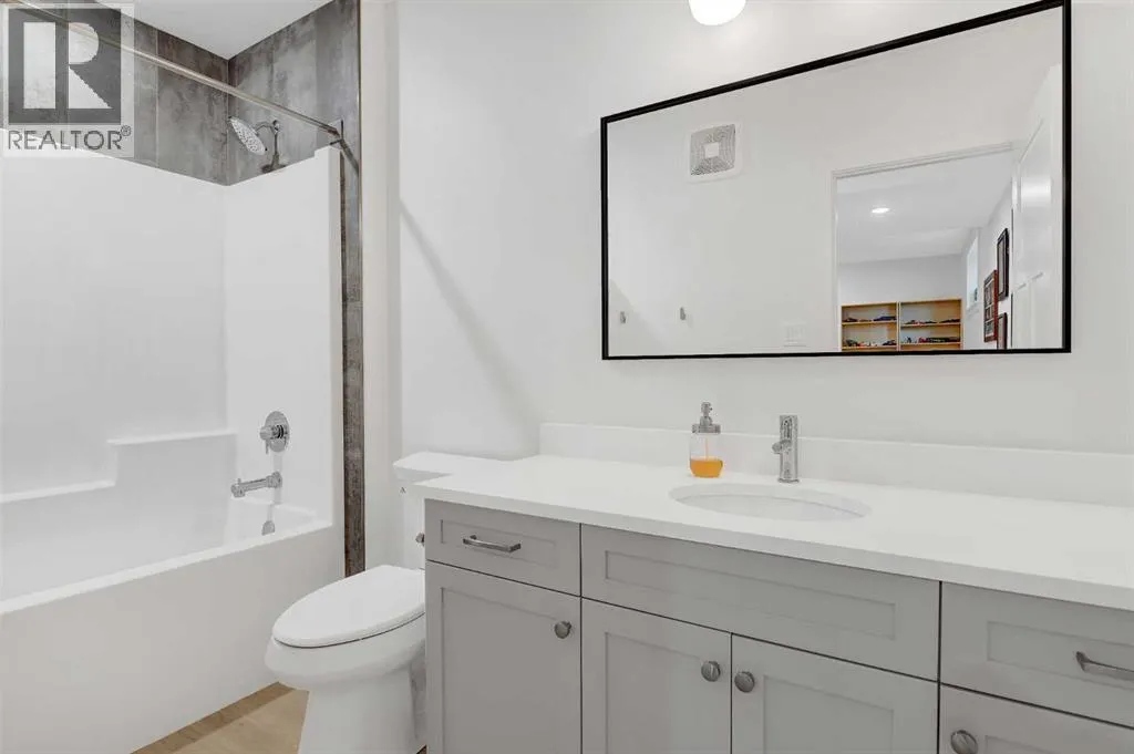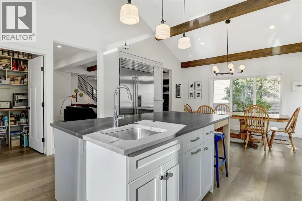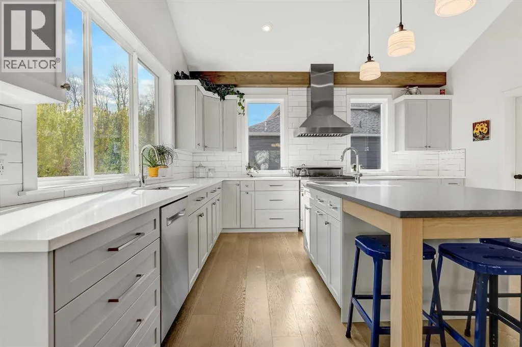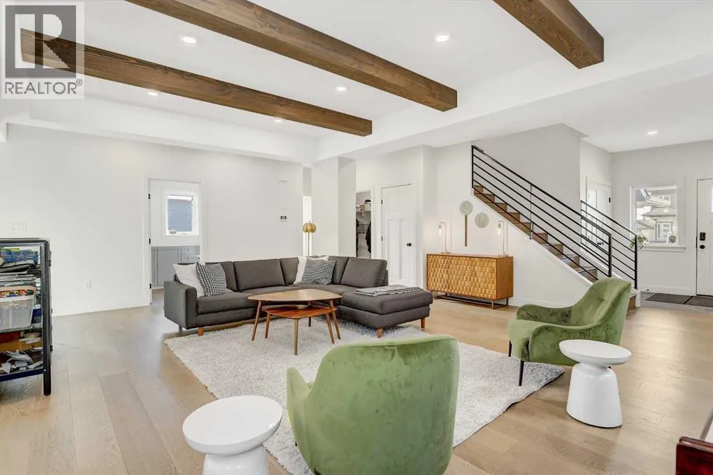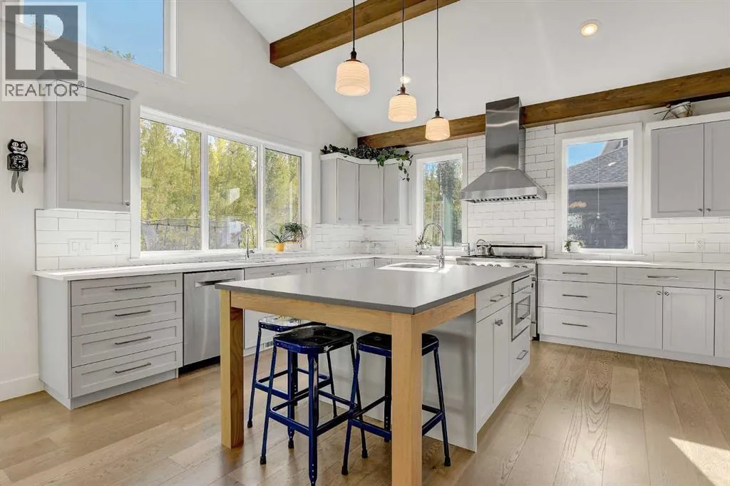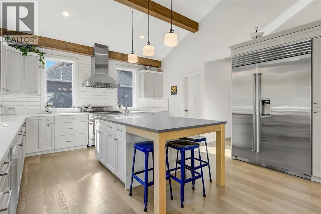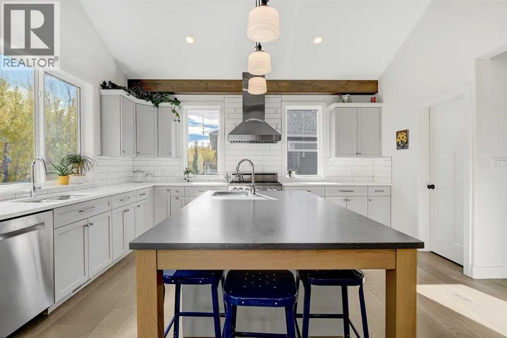 Welcome to 6525 Grande Banks Drive, an extraordinary better-than-new custom Highmark Homes âJaylaâ that redefines modern luxury living. Thoughtfully designed and masterfully built, this home blends architectural beauty with exceptional functionalityâall set against the serene backdrop of no rear neighbors and breathtaking sunset views.Step inside and experience a home where every detail tells a story of craftsmanship and care. The home features engineered hardwood, custom tile and luxury laminate throughout, creating a seamless flow of warmth and sophistication. The vaulted kitchen ceiling, adorned with striking timber beams, anchors the heart of the home. This chefâs kitchen features a $50,000 appliance package including a Sub-Zero refrigerator, Bluestar range, and commercial-grade hood vent, complemented by custom lighting, premium hardware, and timeless finishes.A custom-built office, elegant two-piece powder room, and large functional mudroom/landing enhance everyday living, connecting effortlessly to the 36â triple-car garage with 9â doors.Upstairs, youâll find four spacious bedrooms and three full bathrooms, each designed with comfort and style in mind. The custom, fully developed laundry room adds a touch of practicality and luxury to daily routinesâproof that every inch of this home was thoughtfully considered.The fully developed basement is an entertainerâs dreamâor an ideal setup for multi-generational livingâfeaturing two additional bedrooms, a full bathroom, and a wet bar designed for gathering, relaxing, or offering guests their own private space.Built for enduring performance and comfort, the home features an ICF foundation, spray foam insulation under the slab, triple-pane windows, and built-in A/C. Outdoors, enjoy a custom deck, RV pad with biaxial geogrid base, and peaceful surroundings that make every evening at home feel like a retreat.Every aspect of this residence reflects a commitment to craftsmanship, innovation, and refined Alberta livi ng. (id:27476)