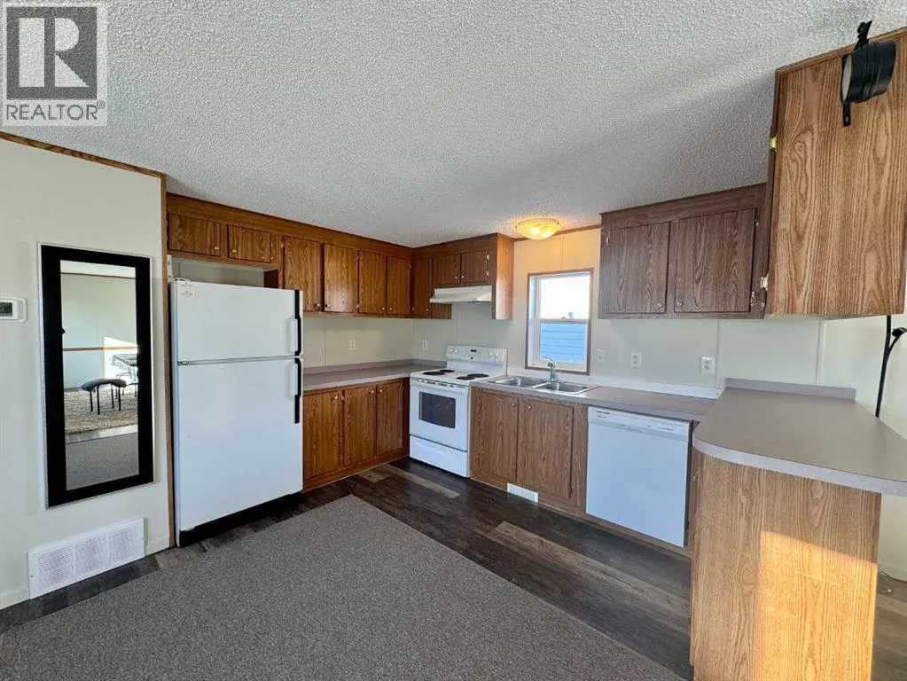 Privacy, functionality, and location all come together in this well-maintained 2 bedroom, 2 bathroom home with a smart open-concept layout.Designed with comfort in mind, both bedrooms and bathrooms are positioned at opposite ends of the home; ideal for added privacy and accessibility. The spacious primary suite features a 4-piece ensuite, creating the perfect retreat at the end of the day.Recent updates provide peace of mind, including newer shingles, furnace, hot water tank, and vinyl plank flooring, giving the home a fresh and modern feel.Step outside to a private backyard with room to relax, plus a large 16â x 10â shed for extra storage. Thereâs also space for RV parking, making it a great fit for those who need a little extra room.Located close to shopping, green space, walking trails, an off-leash dog park, and just a short distance to Crystal Lake, this home offers everyday convenience in a setting youâll love. Reach out to your agent before today for a private viewing. (id:27476)