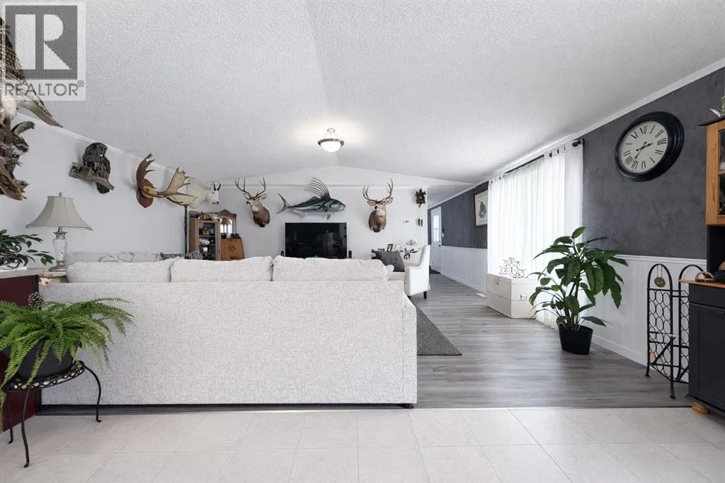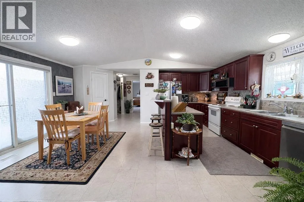 Itâs easy to love this home nestled in a beautiful park like setting with a spacious,bright, fresh, open concept. The kitchen and dining area connect seamlessly,creating a welcoming space for daily living and entertaining. This home has updatesand features throughout. New engineered Trim Lock insulated skirting withprofessionally installed heat trace, a brand-new custom built 10 X 12 shed, alongwith a garden shed to match for all your outdoor tools. The home has vaulted ceilings, newer hot water tank, updating throughout the house with newer Fridge, Dishwasher, Washer & Dryer, new carpets throughout with new vinyl flooring in 2023, a new over the stove microwave in 2025. This home features 3 bedrooms and 2 bathrooms. The primary bedroom with an ensuite that is located in the back of the house for full privacy and the second and third bedroom is in the front. Your minutes away from all amenities for shopping, situated on its own lot in a highly convenient location, this well-maintained home offers comfort, functionality, and accessibility all in one. It's a well-run community that shows pride in ownership. (id:27476)