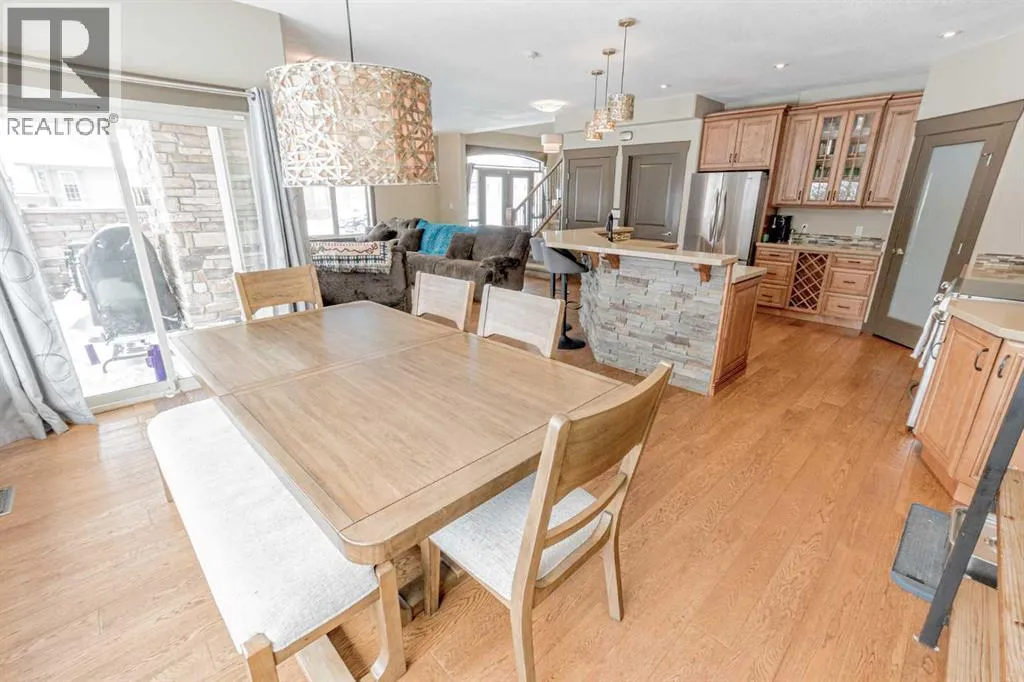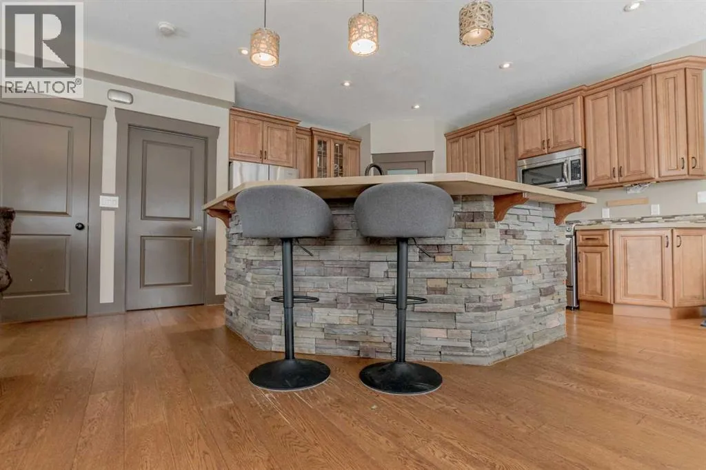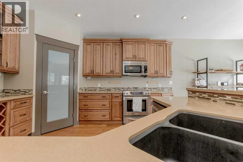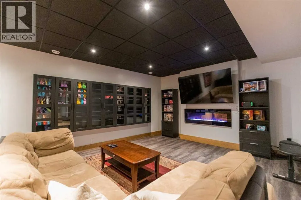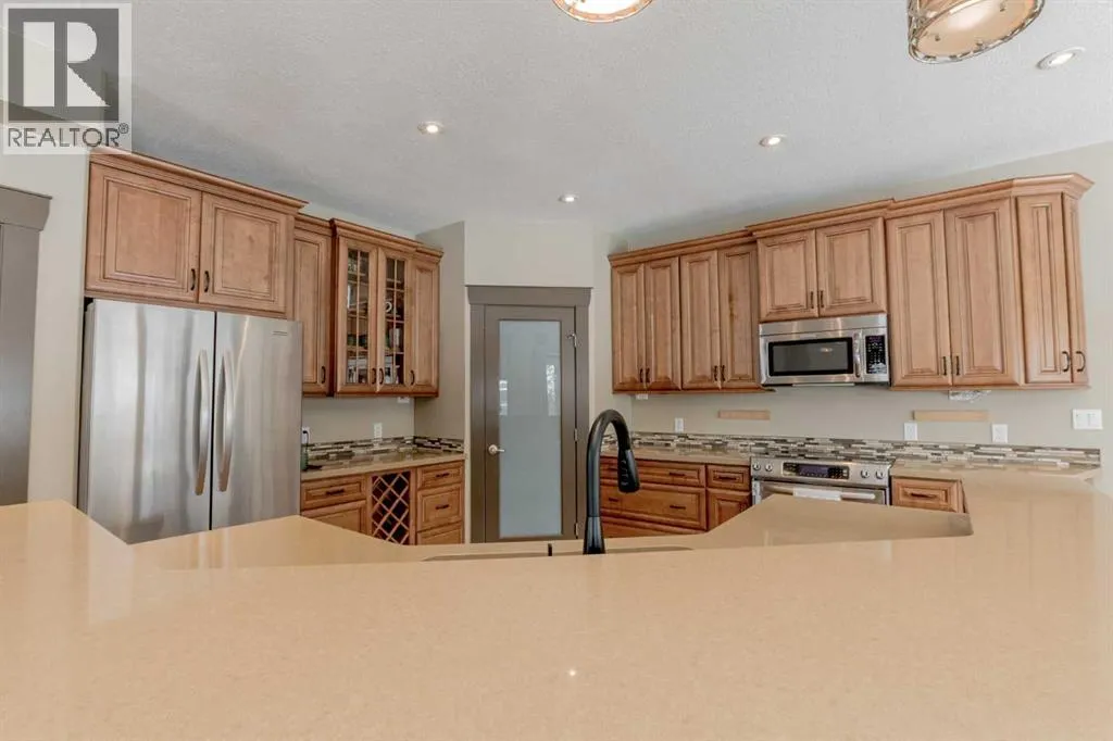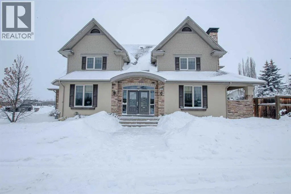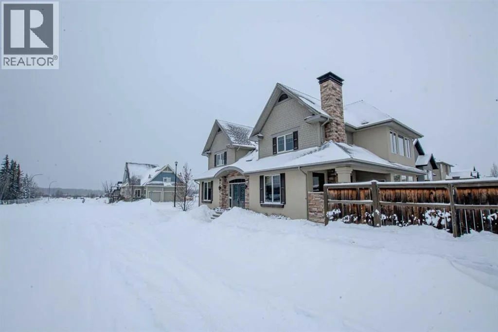 This magnificent custom-built chalet-style home in Grande Prairie offers over 2,500 sq ft of thoughtfully designed living space with 5 bedrooms, an office/den, and 4.5 bathrooms â perfectly suited for modern family living. The open-concept main floor features a stunning kitchen with warm wood cabinetry, soft-close drawers, quartz countertops, stainless steel appliances, gas stove hookup, coffee bar, built-in wine rack, and a spacious walk-in pantry. A bright front office overlooks the front yard, creating an ideal work-from-home space. Upstairs youâll find four bedrooms, including a functional Jack & Jill ensuite plus a private 4-piece bath for the third bedroom. The primary retreat showcases a luxurious 6-piece ensuite with tiled shower, soaker tub, dual sinks, built-in makeup vanity, and a generous walk-in closet with custom shelving. The fully developed basement is designed for entertaining and family enjoyment â complete with a guest bedroom and ensuite, entertainment area with built-ins and speaker wiring, kidsâ play zone, and a stylish wet bar with quartz counters and custom lighting. Upgrades include air conditioning, hot water on demand & a natural gas fireplace. Step outside to a landscaped and fenced yard featuring a covered concrete patio and low-maintenance greenery. Enjoy easy access to a scenic paved walking path surrounding the neighborhood pond â perfect for morning walks or evening runs. A spacious, upgraded home offering comfort, function, and room for everyone! (id:27476)