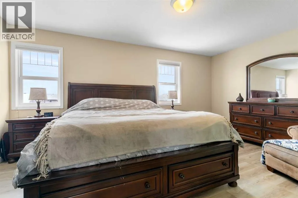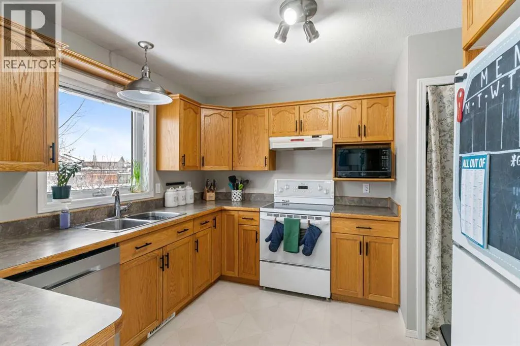 Come check out this Fully Developed 1507 Sqft 2 Storey located in quiet area of Royal Oaks Subdivision. Features of This Clean affordable spacious family home starts on main floor when you enter inside walk over & through a set of French doors into a large den/office that could also be used as another bedroom if needed with walk in closet and an entrance to 3 piece bathroom, walk down the hall to a large dining area nice size kitchen & over to small pantry, main floor Landry and an entrance into house from the garage. Head Upstairs to 3 bedrooms with large Master that has walk in closet and entrance into the main 4 piece bathroom. Downstairs is fully developed with good sized Family room, 2 more bedrooms, another 4 piece Bathroom, and utility room/storage. Outside is complete with Attached Double heated Garage, Fully Landscaped and fenced with Large backyard concrete patio, some trees for privacy and easement separating the back neighbors. **Note that this home has had some fresh painting on main floor , Brand New carpet just installed on stairs and hallway. On Demand HWT installed in July, 2024. Shingles were also replaced August 2025**. This wonderful home is all ready for new owners and possession is quite Negotiable. (id:27476)