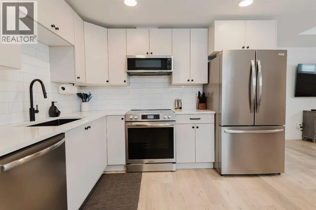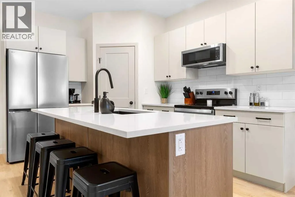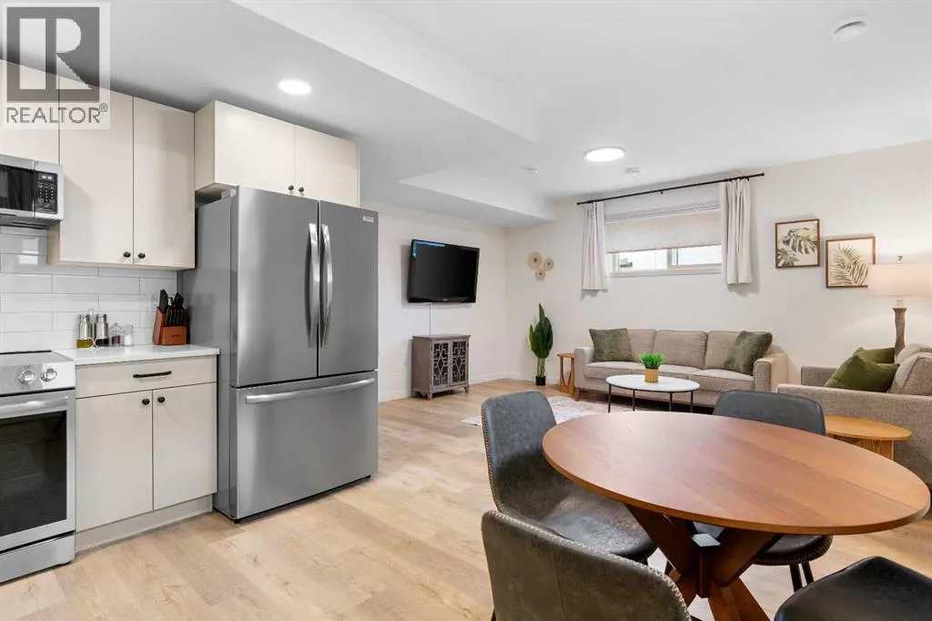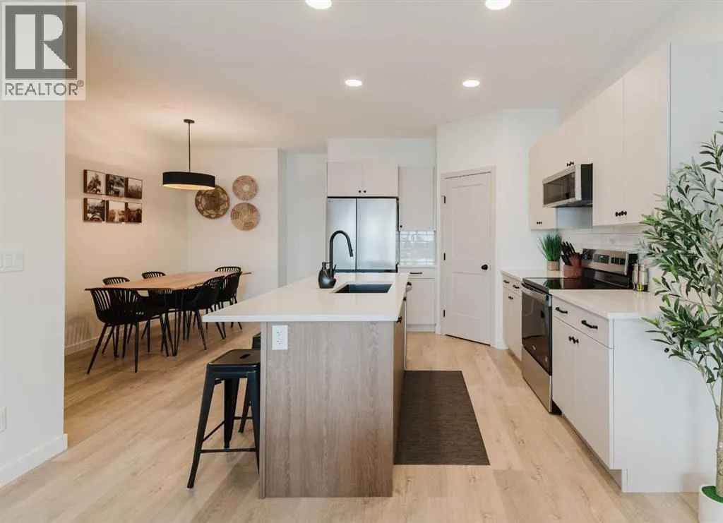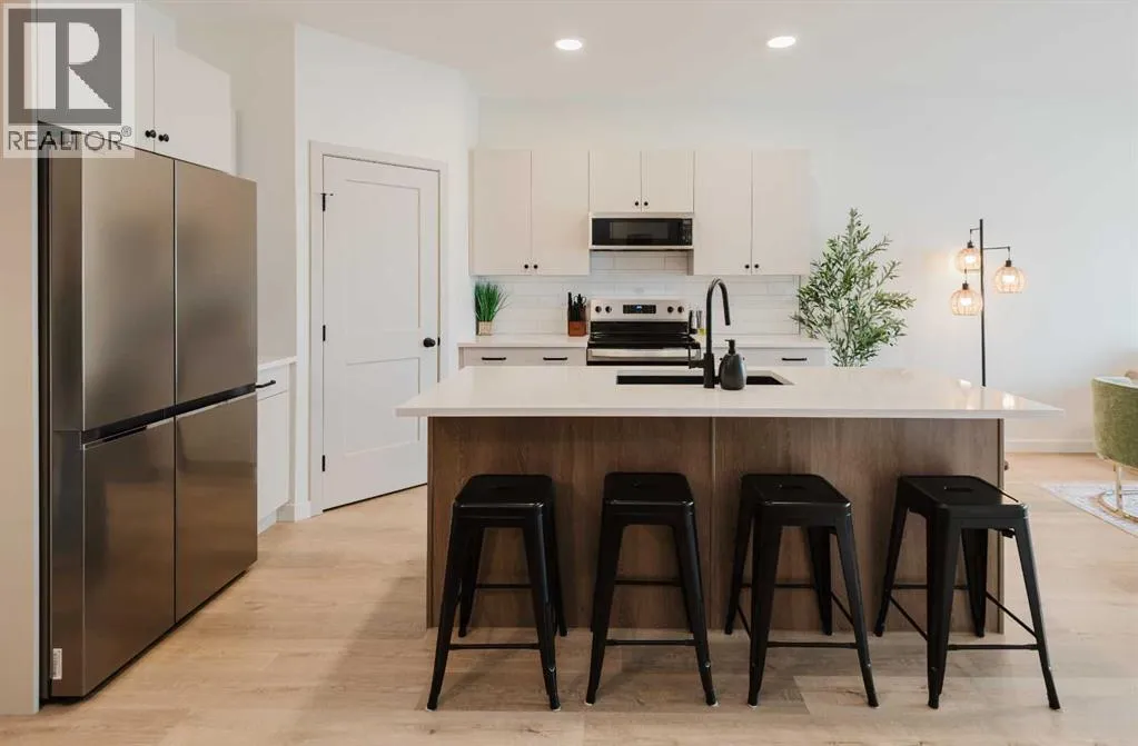 Welcome to this exceptional up/down duplex located in the sought-after community of Kensington Estates. This modern bi-level home features a fully legal basement suite and offers an outstanding opportunity for investors, multi-generational families, or savvy homeowners looking to offset their mortgage with rental income.The upper suite showcases a bright, open-concept design highlighted by a spacious kitchen with a large island, quartz counters and stainless steel appliancesâperfect for both everyday living and entertaining. The expansive primary bedroom offers peaceful views of the pond and walking trails and is complemented by a beautifully appointed ensuite and walk-in closet. Two additional bedrooms and a full bathroom complete the upper level. In-suite laundry is conveniently located on the lower level, along with plenty of additional storage space.The lower legal suite is equally impressive, featuring an open-concept layout, a large primary bedroom with ensuite and walk-in closet, a second bedroom, and a full bathroom. This suite also includes its own in-suite laundry for added convenience.A rare triple-car garage adds tremendous value, with a double garage allocated to the upper unit and a single garage for the lower suite. Both garages are equipped with water taps and pre-wiring for future heaters. The home is also thoughtfully designed with plumbing in place for future air conditioning in both units, a gas line for a BBQ, and Schlage smart locks compatible with Airbnb platforms. Alberta New Home Warranty is transferrable to new owners. Currently operated as an Airbnb property, this home offers excellent income potential. All furnishings are negotiable, providing a turnkey opportunity for buyers seeking a short-term rental investment. The property backs onto the scenic walking trail surrounding Kensington Pond, offering tranquil views and a serene outdoor setting. A nearby playground adds to the family-friendly appeal. While landscaping has not yet be en completed, it presents a blank canvas for buyers to create their own personalized outdoor space.Kensington Estates is an idyllic community known for its peaceful atmosphere, close proximity to amenities, and strong sense of communityâideal for families and individuals alike.This versatile property truly stands out with its quality construction, thoughtful upgrades, transferable Alberta New Home Warranty, income potential, and unbeatable location.   Listing agent discloses they are the titled owner and have financial interest in the sale of this property. Property tax amount based on current city assessment and TIPPs estimate for 2026. Final amount will be assessed in May. Utilities on single meter. (id:27476)