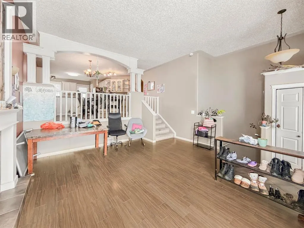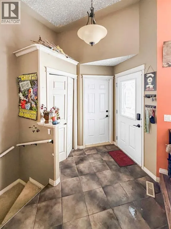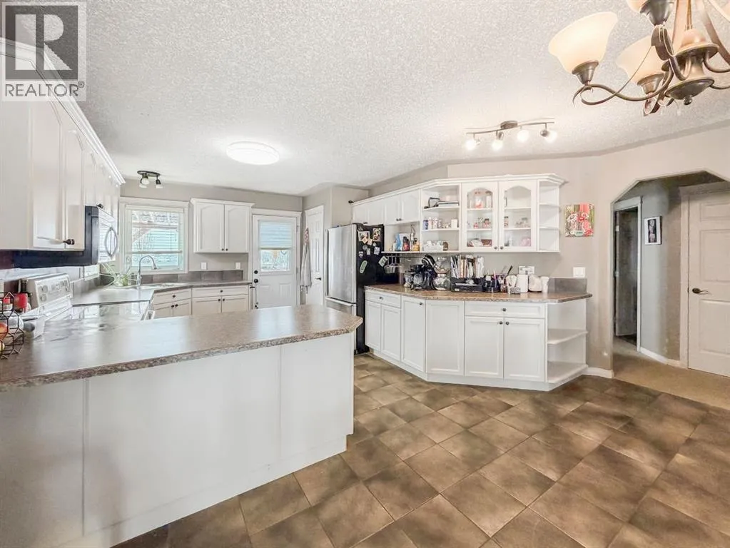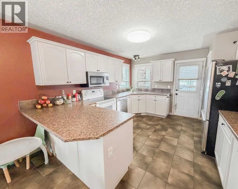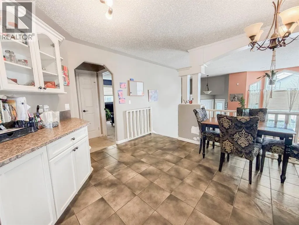 This fully developed bi-level is perfectly situated on a quiet Pinnacle street with the added privacy of no rear neighbours. The popular open-concept floor plan features a living room with soaring ceiling, expansive windows that fill the space with natural light, and a cozy gas fireplace. The functional kitchen offers ample cabinetry and counter space, with convenient access to a south-facing rear deck, while the spacious dining area overlooks a bright family room below. The upper level hosts three well-appointed bedrooms, including the primary with a walk-in closet and private ensuite. Downstairs, the finished basement provides a massive recreation room with oversized windows, a generous fourth bedroom, a built-in office, and a finished storage room. The backyard is fully fenced, landscaped and has nice covered deck to enjoy the southern exposure. Complete with a heated garage for comfort during the winter months, this home offers immense potential and is ready for a new family to call it their own. (id:27476)