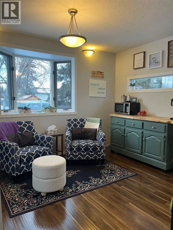 Beautiful 75th Avenue is offering this storey and a half 1632 sq ft home with lots of character and an amazing very large lot! There is the driveway in front of the garage and another circle driveway. Lots of room for an RV or cars for the children to all park off the street. The massive yard is like having a small acreage in town. You could have a large garden & greenhouse with lots of yard for children to have play center and more yard space to play. Inside this beautiful home the main living space is open concept, with sunken living room for relaxing or entertaining. There is the large dining area & kitchen with stainless appliances, just off the kitchen is a inviting sitting room with a door to the back deck for BBQ season, or easy access to the back yard. The main floor also offers a laundry room, access to garage and 2 piece bathroom. The top floor offers primary bedroom with 3 piece ensuite, also main bathroom, 2 other bedrooms. Another amazing feature is the open area that over looks the entry and living area below. The basement is finished also, lots of storage, family room area that could be a large bedroom, there is a window(not egress window) & bathroom with a shower too. There are 2 updated furnaces, one for main floor and basement, the other for top floor and AC for top floor. Also the shingles are newer. Call to have a look! (id:27476)