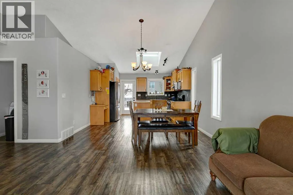 Refined living in Crystal Lake Estates. Tucked into a quiet cul-de-sac on a pie-shaped lot, this fully developed 4-bedroom, 3-bathroom walkout home offers space, light, and a layout that works for everyday life.The main floor is bright and open, with vaulted ceilings and large windows that carry natural light throughout. The kitchen is both functional and inviting, featuring maple cabinetry, updated appliances, ample storage, and a walk-in pantryâdesigned to keep up with a busy household or hosting nights in.The primary suite feels set apart, offering generous square footage, a well-appointed ensuite, and a walk-in closet with direct access. A second bedroom, full bath, and main floor laundry round out the upper level.Downstairs, the walkout basement opens into a spacious rec area centered around a cozy gas fireplace, with direct access to a covered patioâideal for entertaining or giving everyone their own space. Two additional bedrooms (each with walk-in closets) and a full bathroom complete the lower level.Shingles redone in 2023! The 24â x 24â garage is fully insulated and heated, ready for Alberta winters.Set in one of Grande Prairieâs most established neighborhoods, youâre steps from walking trails, parks, schools, and Crystal Lake itself.Clean, functional, and in a location that continues to hold valueâthis is a home that makes sense now and later.3D tour available. (id:27476)