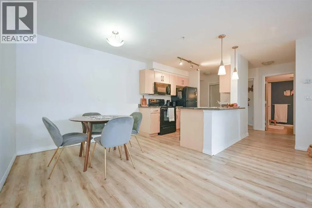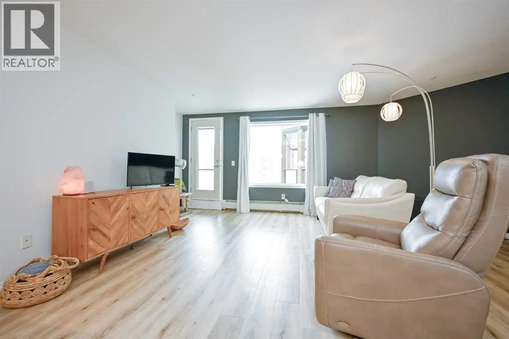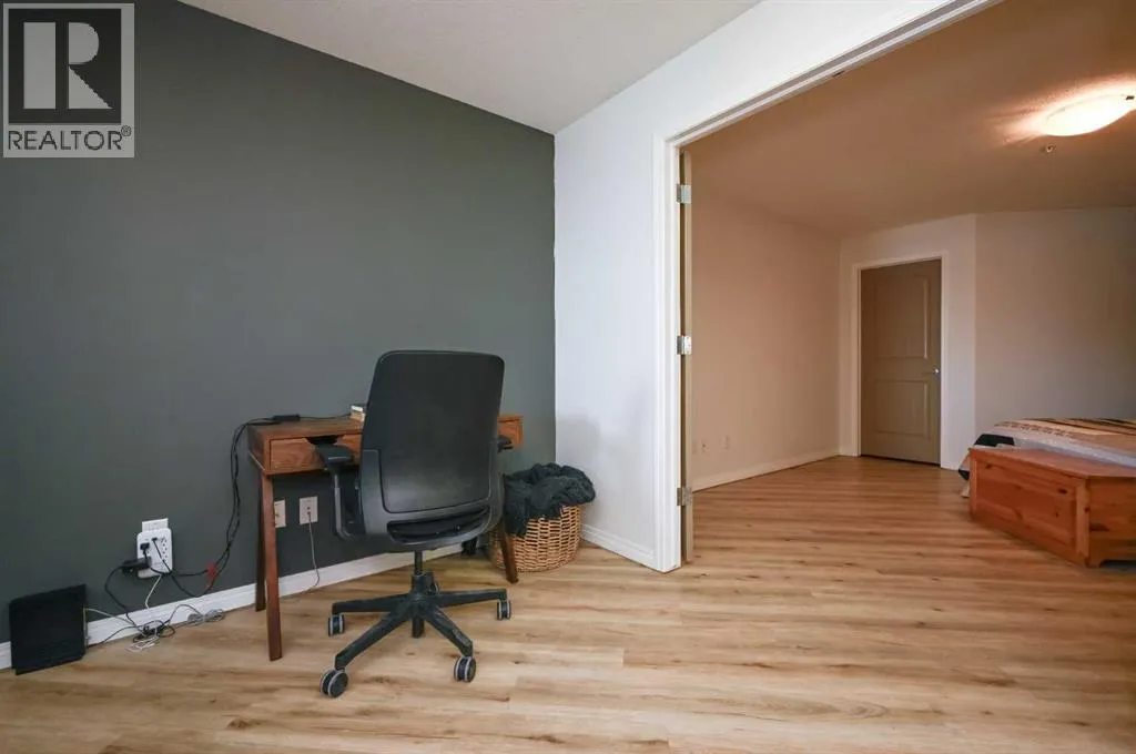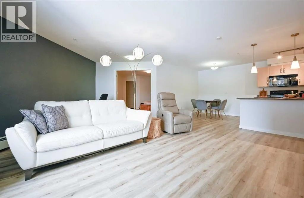 Welcome to this spacious second-floor 1-bedroom plus den condo in Aurora Estates. Featuring durable vinyl plank flooring throughout, this unit offers both style and low-maintenance living. The versatile den includes a walk-in closetâperfect for a home office or additional storage.The functional layout includes a 4-piece main bathroom and a convenient in-unit laundry room with extra storage space. The galley-style kitchen flows into a generous dining area, leading into a bright living room with access to a private balconyâideal for relaxing or entertaining.Located close to a wide range of amenities including FreshCo, Starbucks, Shoppers Drug Mart, and more, this home also offers the convenience of being within walking distance to Riverstone School. (id:27476)