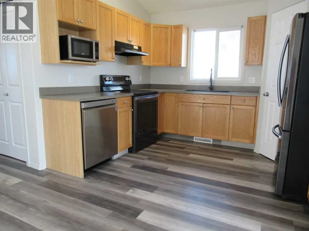 Wonderful, developed Bungalow located on a great size lot with no rear neighbors in the convenient Westpointe subdivision. This home is clean and move in ready with fresh paint and newer flooring on the entire main floor. 2 bedrooms and full bath up with primary having a handy walkin closet and has good size for all your furnishings. Large front living room and entrance as well as roomy dining area with patio doors to back yard and a kitchen with corner pantry and a large farm sink. The main living area features open design with vaulted ceilings. The basement is developed with 2 more bedrooms, full bath with shower, a family room/media room and the bonus of a set of cabinets with built in sink creating a excellent wet bar, utility laundry room as well as an extra storage room. The only thing to consider here would be to add your choice of flooring for yourself, as the previous owner had not installed as they did not have the need for it. Double concrete parking pad at front leaving some room for small R.V parking as well.The backyard faces to massive views to the west offering unlimited enjoyment of full sun as well as a playground and park right around the corner. (id:27476)