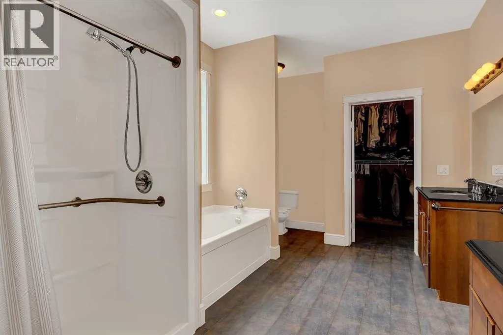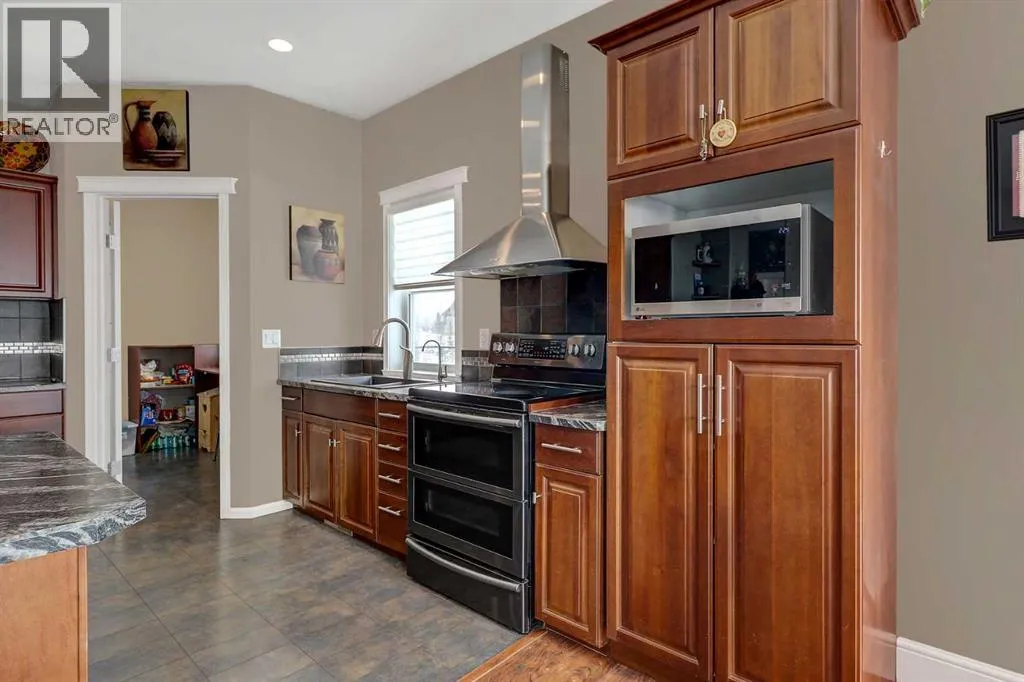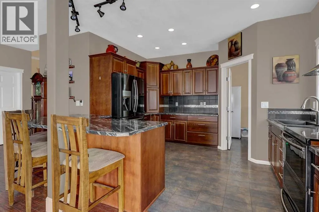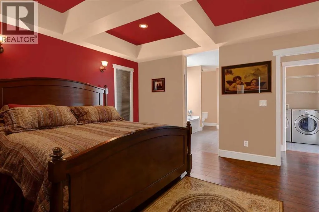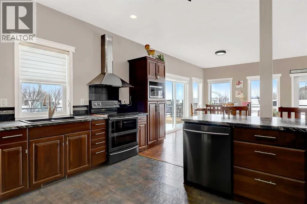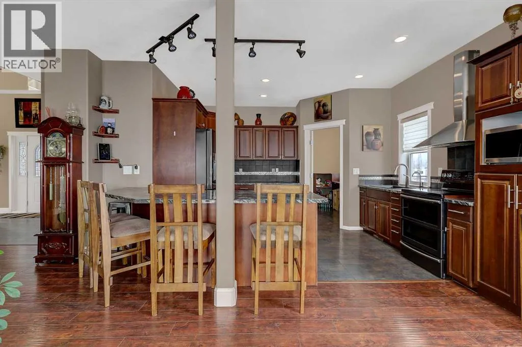 Just minutes west of Bear Creek Golf Course and only five minutes from Costco, this stunning 4 acre property offers the perfect blend of convenience, privacy, and lifestyle. For those needing a serious workspace, the 42x48 shop features 16-foot walls, a 14â O/H door, 2 pc bath, wash sink, full tin interior, in-floor heat, 220-volt power, and sumps. Walls of workbenches are included, making it a highly functional and ready-to-use space. This impressive 2-storey residence spans 2,769 sq. ft. with a grand entry that welcomes you. Nearby den is versatile and can easily function as a home office or a 4th bedroom. A convenient 2-piece bath is also located just off the entry. A thoughtfully designed open floor plan flows seamlessly throughout. The spacious kitchen is both functional and elegant, offering rich dark solid wood soft-close cabinetry with a fully tiled backsplash, high-end appliances, reverse osmosis at sink + fridge and a large breakfast bar with seating for four. A practical walk-through pantry connects directly from the garage to the kitchen. The dining area fits a large table and flows into the living room, where several windows provide plenty of natural light & views of some of the best sunsets. Step out to the wraparound deck with a gas line for BBQ and a hot tub, perfect for relaxing or hosting. The main floor also offers a stunning primary bedroom, where a coffered ceiling adds a refined touch of elegance and the generous layout easily accommodates a king-sized bed. The space is complemented by a large walk-in closet and a beautifully appointed 5-piece ensuite featuring a jetted tub, separate shower, and dual vanities. Laundry is conveniently located nearby for added ease. Upstairs, a versatile bonus room provides excellent additional living space, along with a 4-piece bathroom, and two generously sized bedrooms, one with a large walk-in closet. An ideal space for family or guests seeking their own private area. The basement remains unfinished, offerin g a blank canvas for future development and includes a cold room. The heated 28x26 attached garage is finished and equipped with a floor drain, along with the added bonus of a washer and dryer suited for outdoor and work gear. Outside, the property continues to impress, surrounded by hundreds of mature trees along the perimeter. The setting is peaceful and beautifully established, creating a true acreage retreat with exceptional curb appeal. Outbuildings include a shed, greenhouse, hen house with run, and a shelter with two sea cans. Serviced by a healthy water well, tank & mound septic, along with RCRSA zoning, allows a small-scale home business. Book your viewing now! (id:27476)