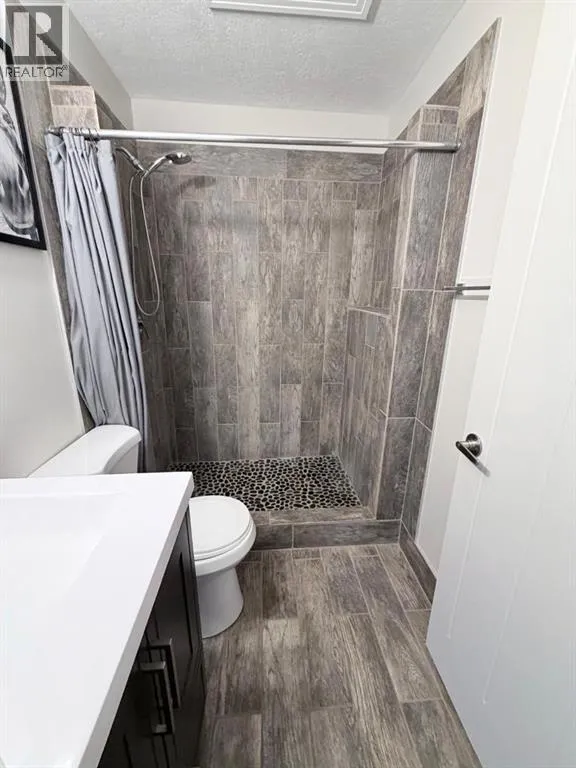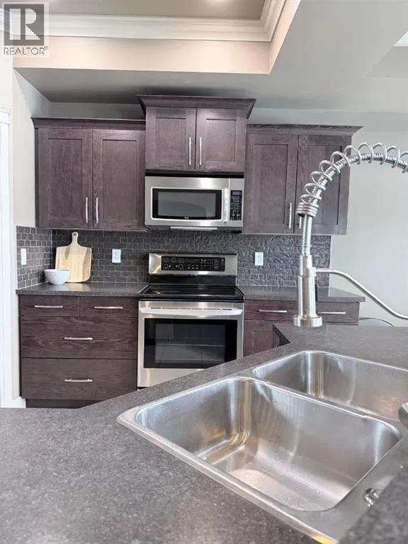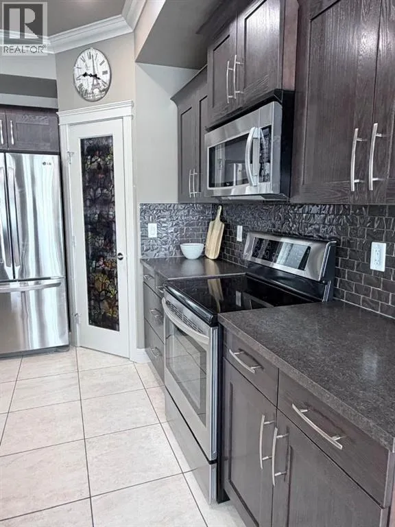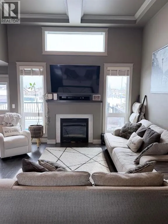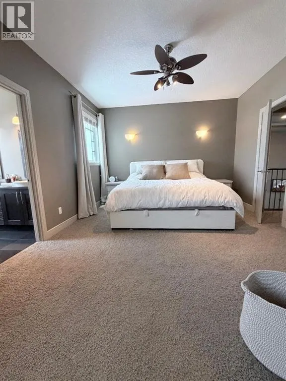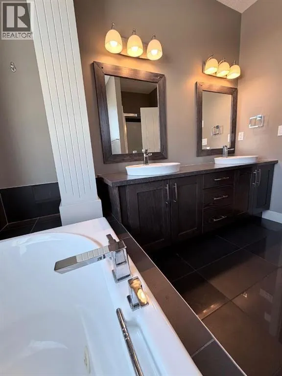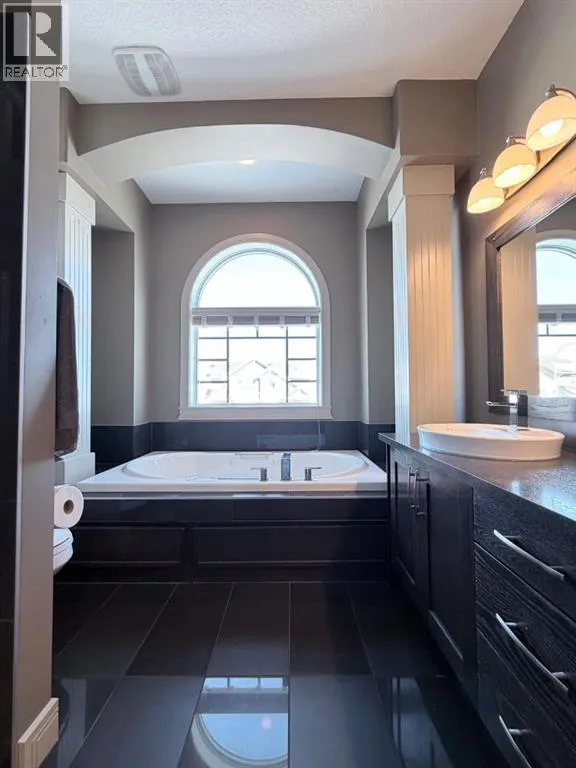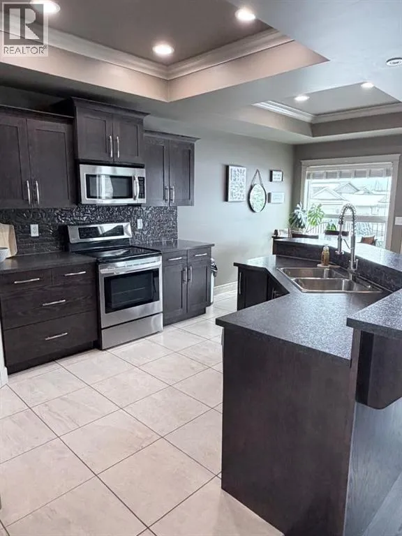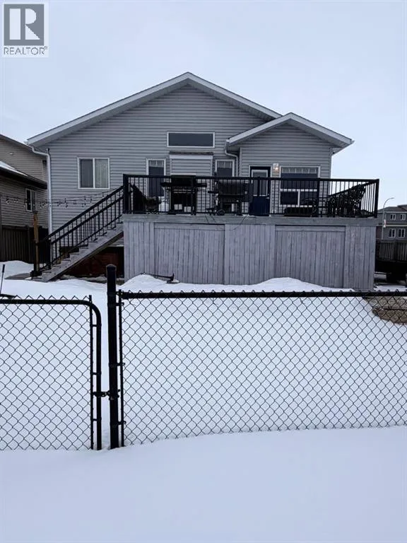 Welcome to this stunning bi-level home located on a CORNER LOT in the sought after community of Signature Falls! Step inside to an inviting OPEN-CONCEPT layout featuring vaulted ceilings, recessed lighting, and an abundance of NATURAL LIGHT flowing throughout . The kitchen is both stylish and functional, featuring stainless steel appliances, a corner pantry, tile flooring, dark oak cabinets, tile backsplash, and a centre dining nook , perfect for everyday living and entertaining. A rear door leads to the deck, perfect for summer BBQs and outdoor relaxation. The living room is warm and welcoming with a cozy gas fireplace, while a large den just off the kitchen features a bay window and glass wall, creating the ideal space for a home office or sitting area. The master bedroom is thoughtfully set on its own level, offering a LUXURIOUS ENSUITE with DOUBLE SINKS, JACUZZI TUB, separate shower, and WALK-IN CLOSET. The DEVELOPED BASEMENT adds more living space, complete with a large family room, 2 additional bedrooms, and a 3 piece bath with a beautiful tiled shower, perfect for guests or a growing family. With CENTRAL AIR CONDITIONING, youâll stay comfortable all summer long. The HEATED 22x24 ATTACHED GARAGE adds convenience and functionality year round. Outside, enjoy a fenced and landscaped backyard, with easy access to the park behind. NO REAR NEIGHBORS! Call today for a viewing! (id:27476)