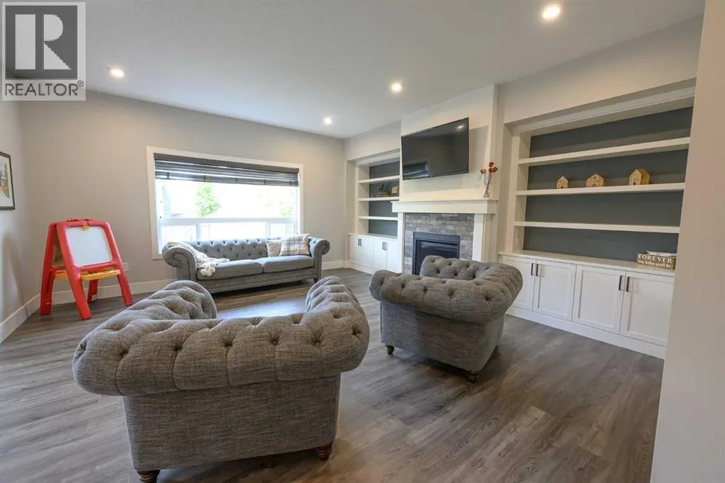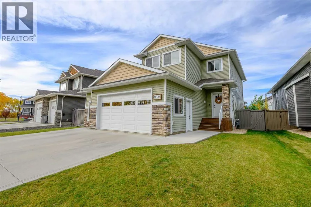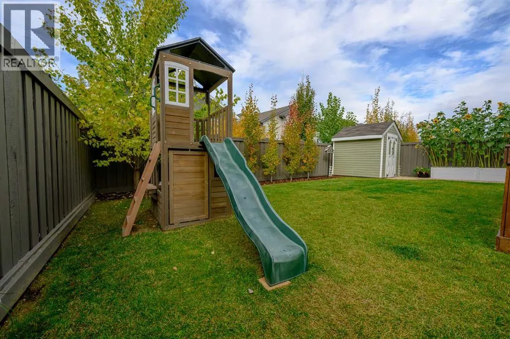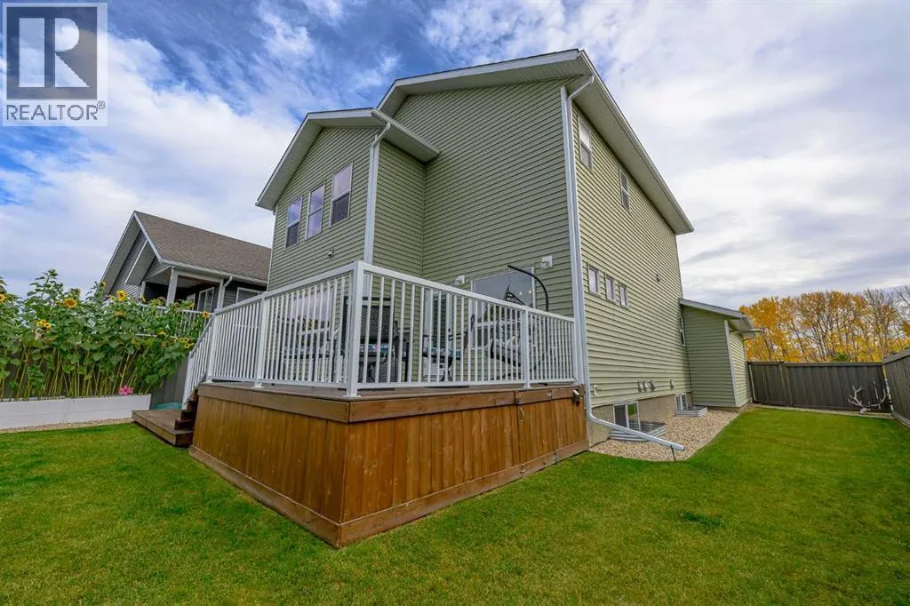 Welcome home to OâBrien Lake!Located in one of Grande Prairieâs most sought-after family neighbourhoods, this stunning fully developed home offers the perfect blend of comfort, style, and functionality. Just one block from the new Ãcole Louis Riel and with scenic walking trails right outside your front door, the location truly canât be beat.Step inside to a bright and inviting main floor featuring an open-concept layout designed for modern living. The living room showcases a cozy gas fireplace, custom mantel, built-in shelving, and large windows that flood the space with natural light. The kitchen is beautifully finished with quartz countertops, a spacious island, ample cabinetry, and a convenient walk-through pantry. A standout feature is the oversized boot room, complete with plenty of storage and a built-in office spaceâperfect for busy families.Upstairs, youâll find a generous bonus room, two well-sized bedrooms, a full bathroom, and a spacious laundry room. The primary suite is your private retreat, offering a walk-in closet and a spa-inspired ensuite with a soaker tub, tiled shower, and dual sinks.The fully developed basement brings the total living space to over 3,000 sq ft and includes a fourth bedroom, office, full bathroom, and a large family roomâideal for entertaining or relaxing.Additional features include air conditioning, a fully landscaped yard, a 10x10 shed, and a hot tub-ready deck complete with gas lines for your BBQ.This is the complete package in a prime family locationâdonât miss your opportunity to call it home! (id:27476)