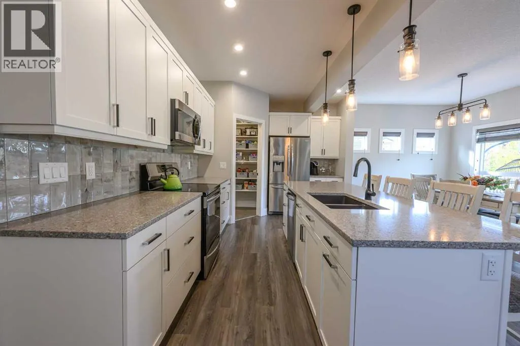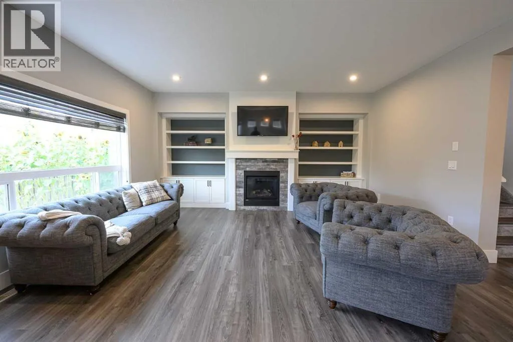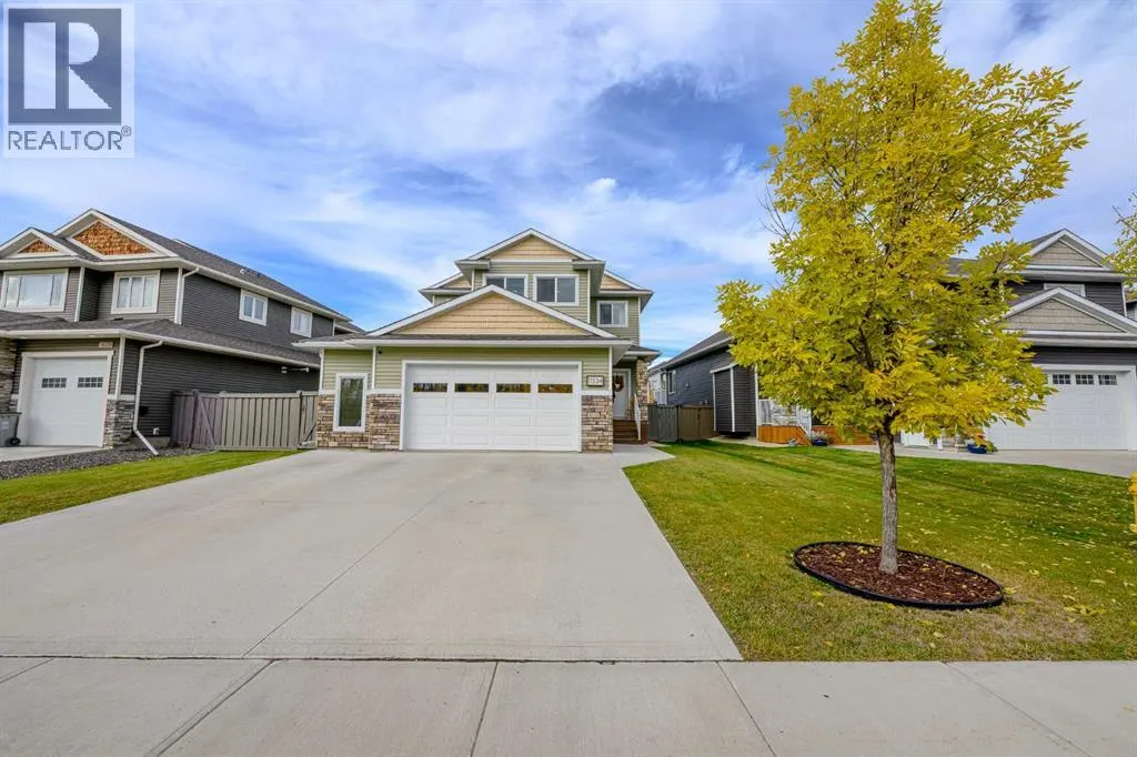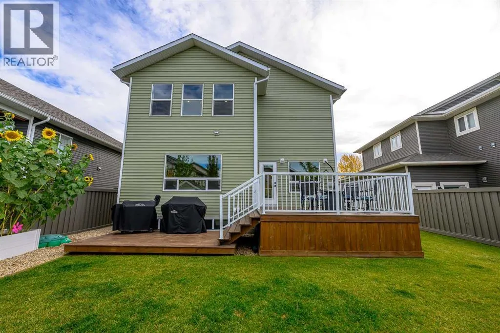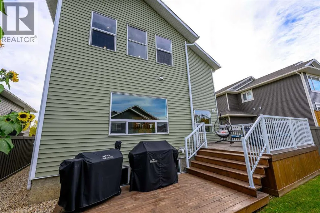Welcome home to OâBrien Lake!Located in one of Grande Prairieâs most sought-after family neighbourhoods, this stunning fully developed home offers the perfect blend of comfort, style, and functionality. Just one block from the new Ãcole Louis Riel and with scenic walking trails right outside your front door, the location truly canât be beat.Step inside to a bright and inviting main floor featuring an open-concept layout designed for modern living. The living room showcases a cozy gas fireplace, custom mantel, built-in shelving, and large windows that flood the space with natural light. The kitchen is beautifully finished with quartz countertops, a spacious island, ample cabinetry, and a convenient walk-through pantry. A standout feature is the oversized boot room, complete with plenty of storage and a built-in office spaceâperfect for busy families.Upstairs, youâll find a generous bonus room, two well-sized bedrooms, a full bathroom, and a spacious laundry room. The primary suite is your private retreat, offering a walk-in closet and a spa-inspired ensuite with a soaker tub, tiled shower, and dual sinks.The fully developed basement brings the total living space to over 3,000 sq ft and includes a fourth bedroom, office, full bathroom, and a large family roomâideal for entertaining or relaxing.Additional features include air conditioning, a fully landscaped yard, a 10x10 shed, and a hot tub-ready deck complete with gas lines for your BBQ.This is the complete package in a prime family locationâdonât miss your opportunity to call it home! (id:27476)
