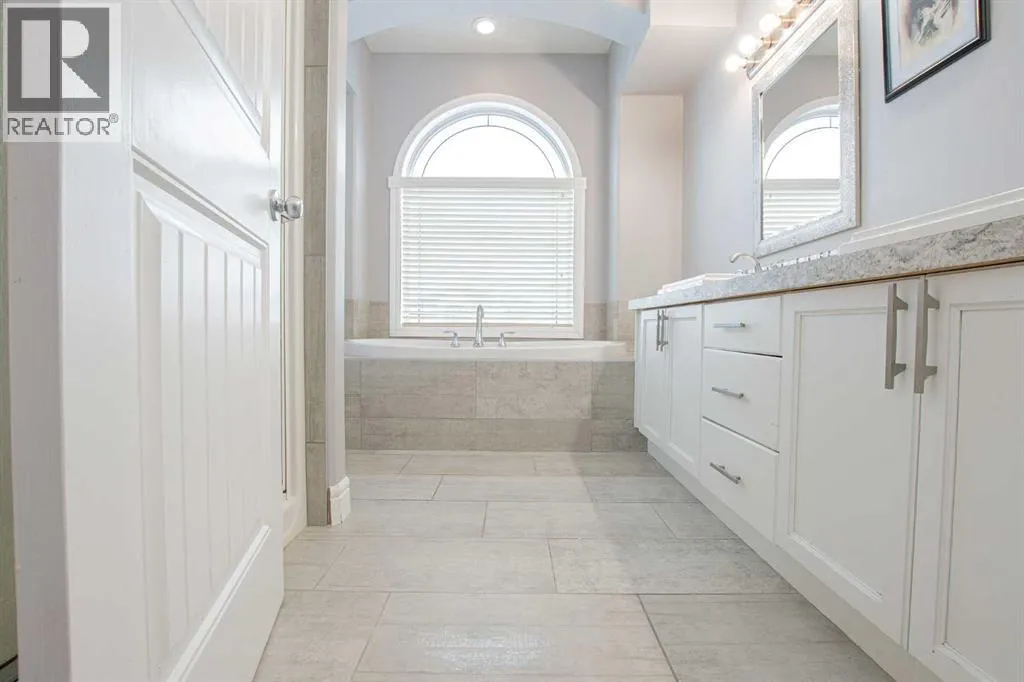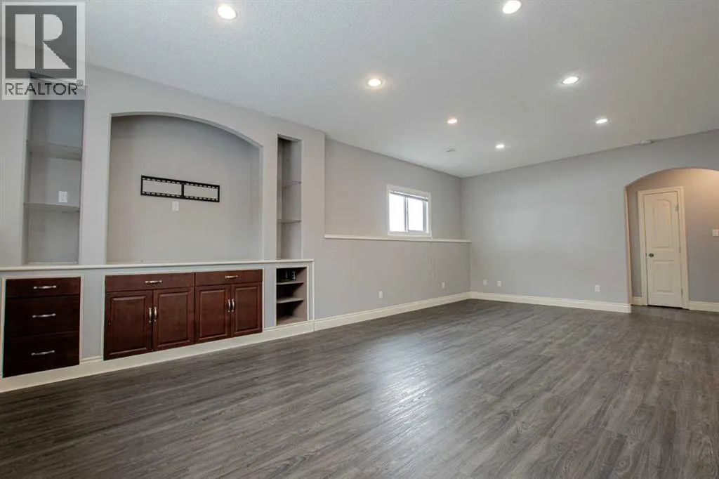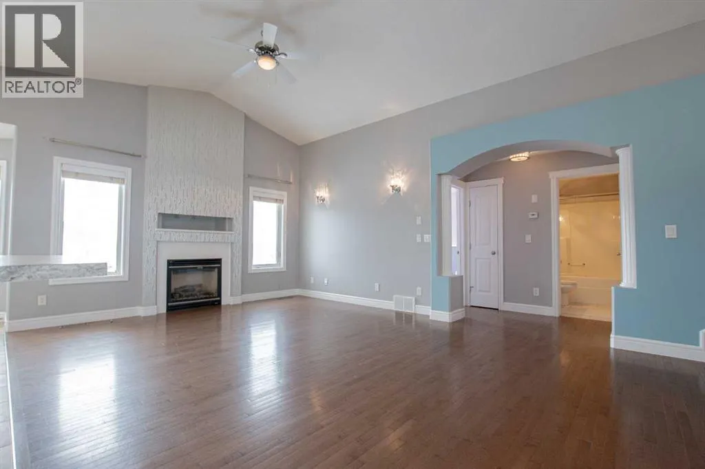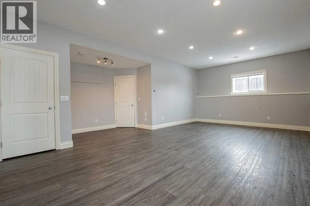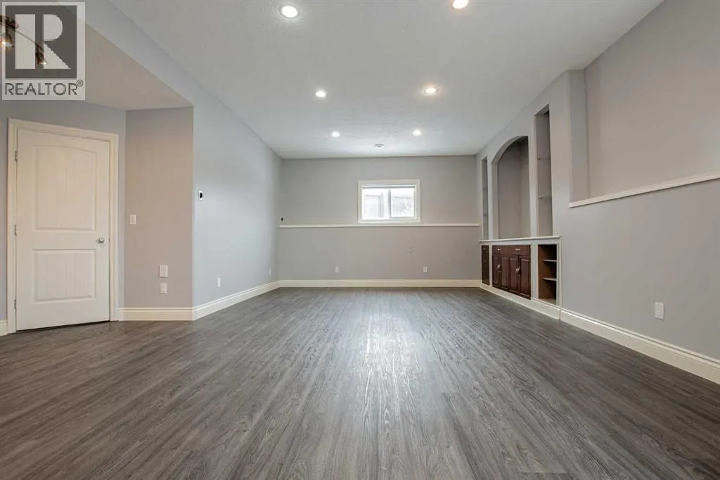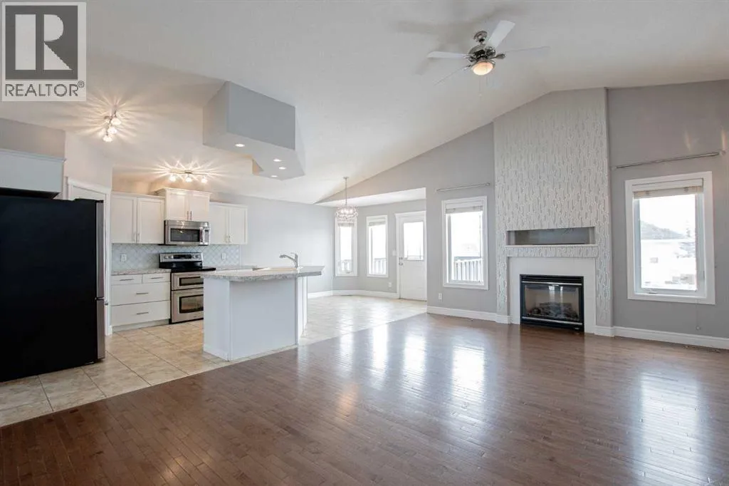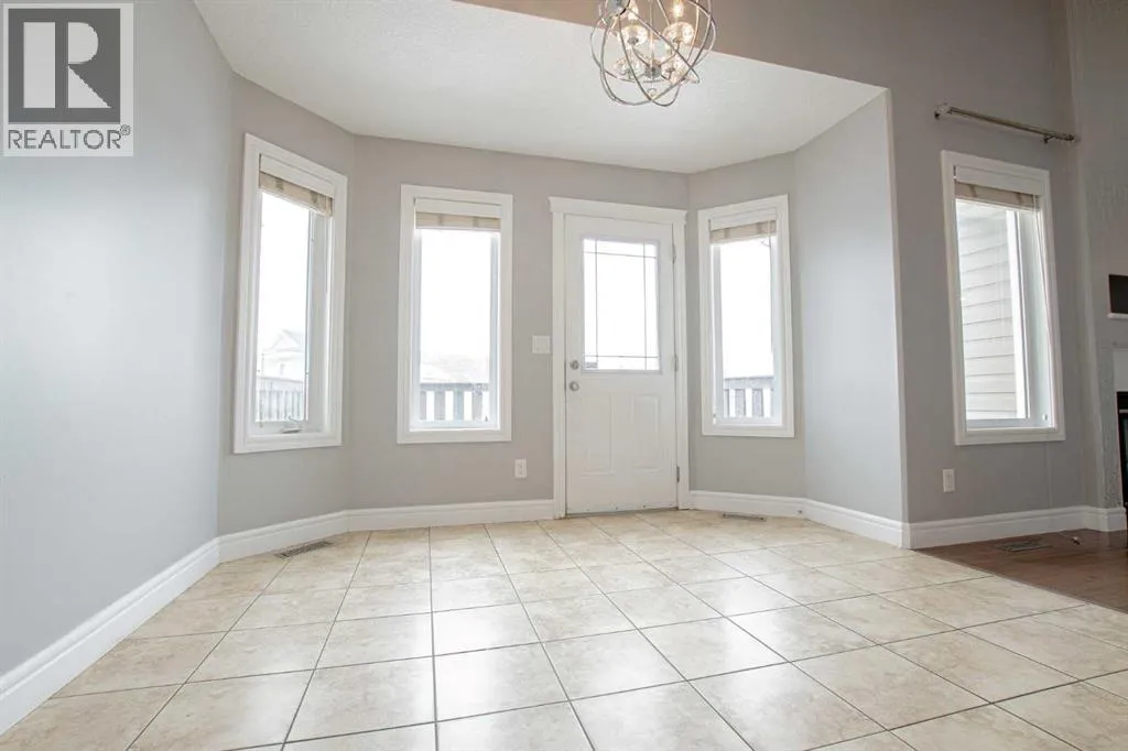Backing onto Pat Gorman Park with no rear neighbours, this fully developed 1,636 sq. ft. modified bi-level offers a functional layout and family-friendly setting.Featuring 5 bedrooms, 3 bathrooms, and a den, the main floor presents an open-concept design with a bright kitchen complete with espresso cabinetry, stainless steel appliances, corner pantry, tiled backsplash, and a central island with eating bar. The dining area provides direct access to a two-tiered deck with views of the park.The living room showcases vaulted ceilings and a gas fireplace. The primary bedroom is privately located on its own level and includes a walk-in closet and ensuite with double sinks, jetted tub, and separate shower.The fully developed basement offers a large family room, two bedrooms, and a full bathroom.Heated triple car garage adds to the functionality and appeal of this property. (id:27476)