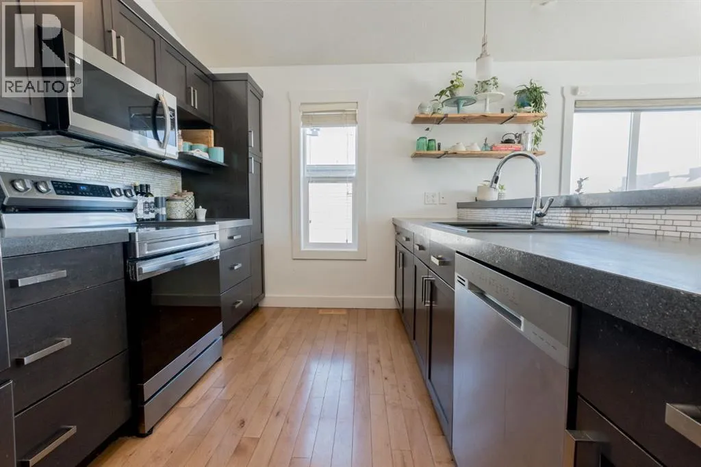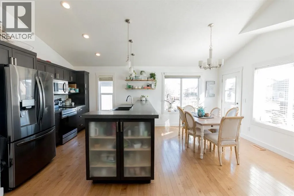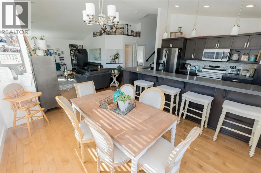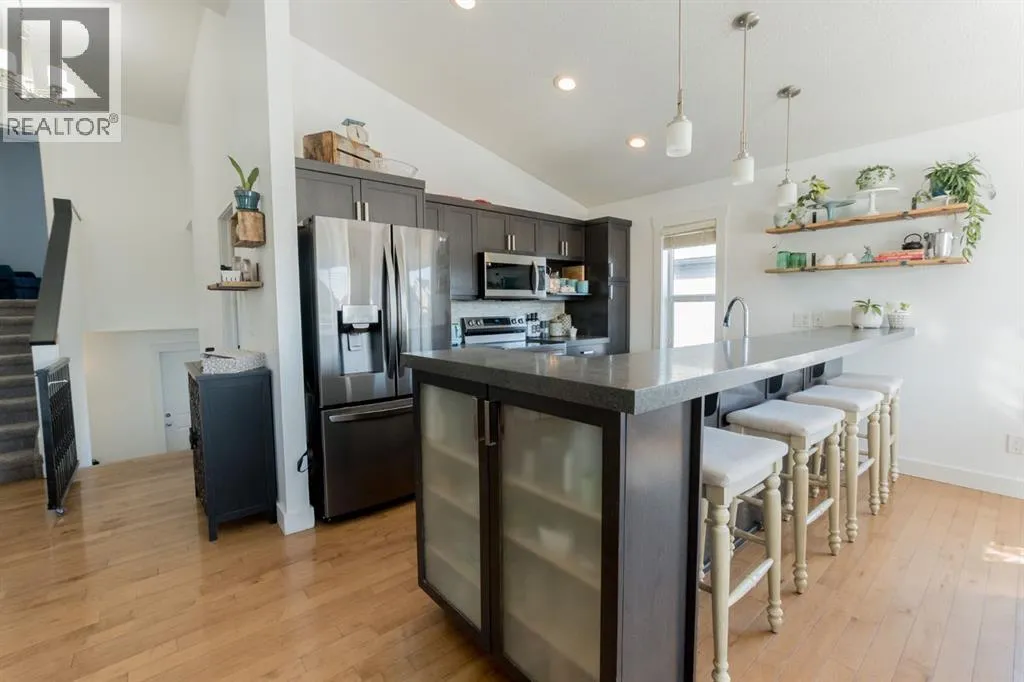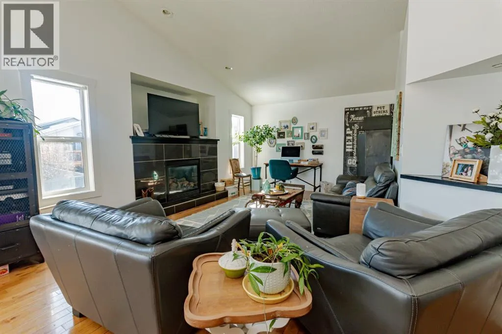 Welcome to this spacious and beautifully designed modified bi-level located in the desirable Pinnacle Ridge neighbourhood close to schools, parks, and all amenities! Offering 6 bedrooms and 3 full bathrooms, this home is perfect for growing families or those needing extra space. The open-concept main floor features a bright living room complete with a cozy gas fireplace, seamlessly flowing into the kitchen. Your kitchen features stainless steel appliances, plenty of cupboards for storage and counter space including an eating bar, plus a dining area with access to the back deck, ideal for entertaining. Two well-sized bedrooms and a full bathroom complete the main level, while the private primary suite above the garage offers a walk-in closet and a 4-piece ensuite. The fully developed basement adds even more living space with a large family room, three additional bedrooms, and another full bathroom. Outside, enjoy a landscaped and fully fenced backyard, along with the convenience of a double attached garage. A fantastic opportunity in a family-friendly neighbourhood, book your showing today! (id:27476)