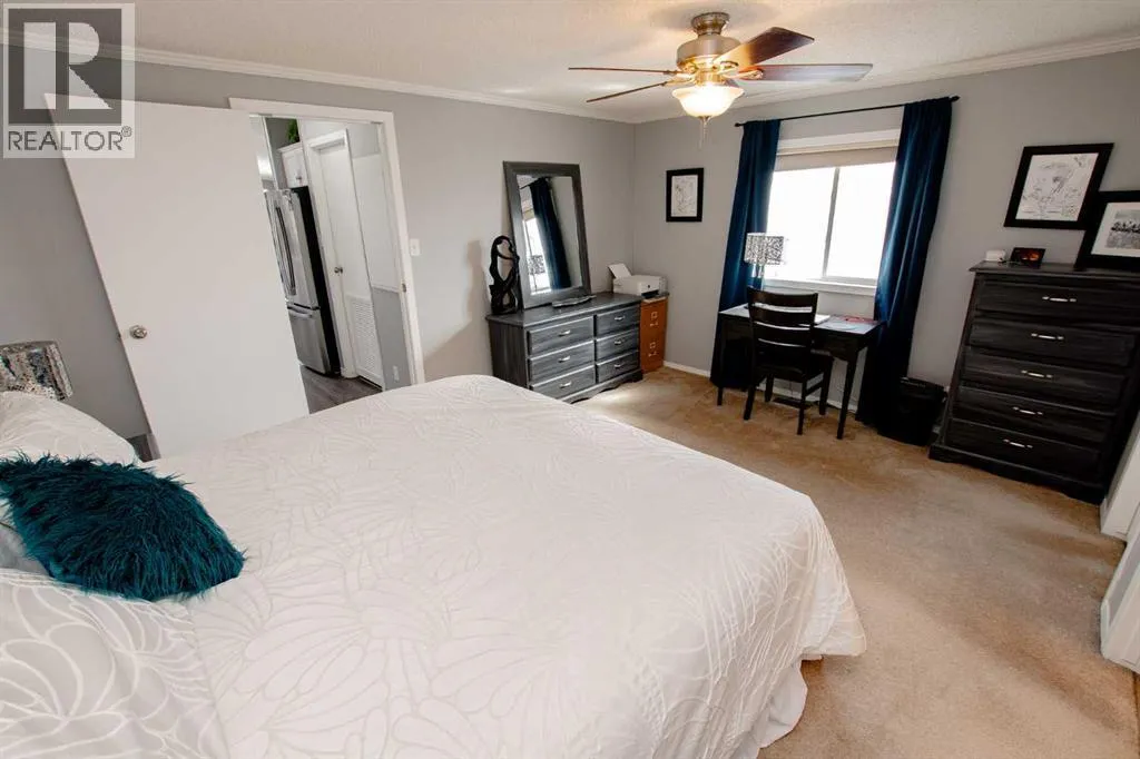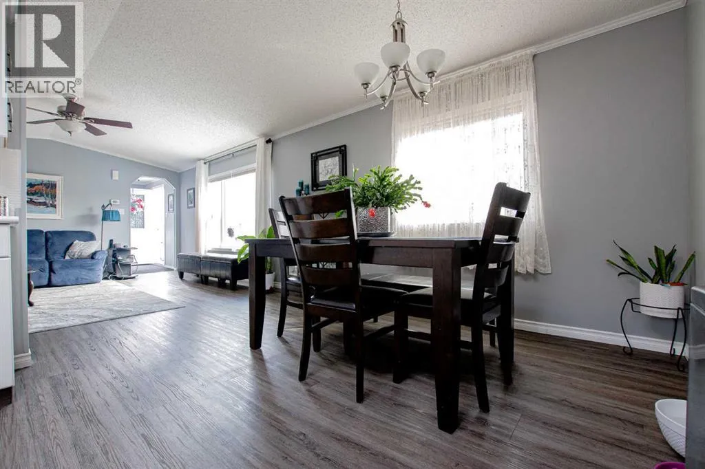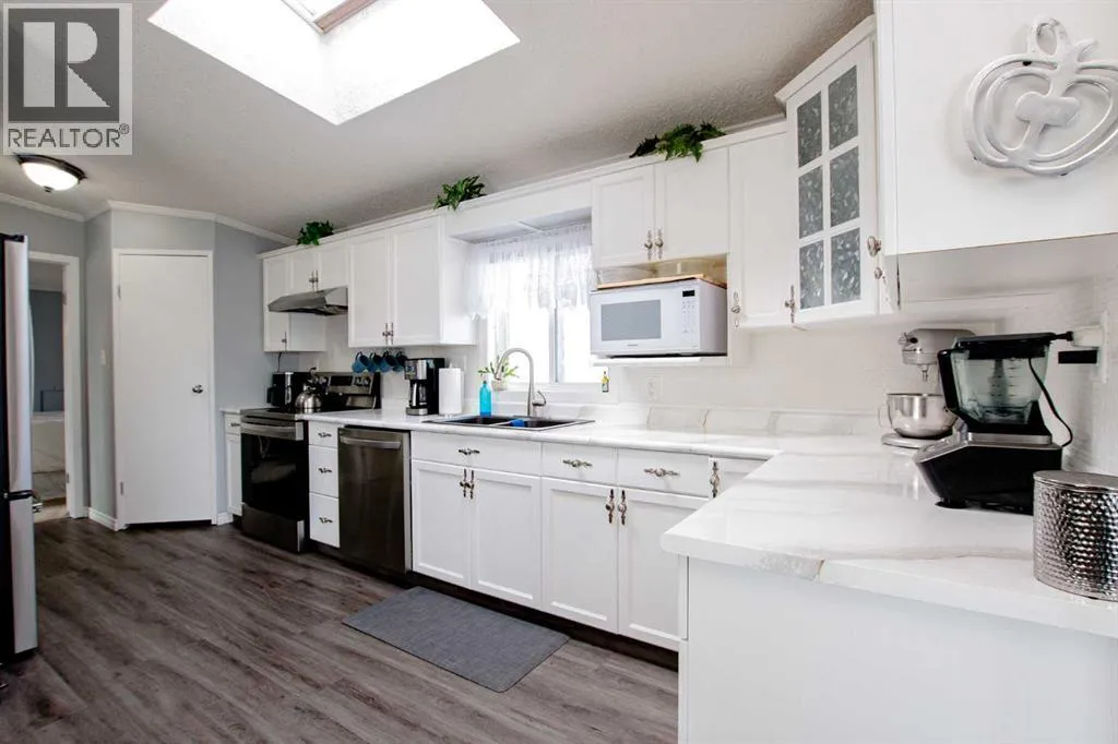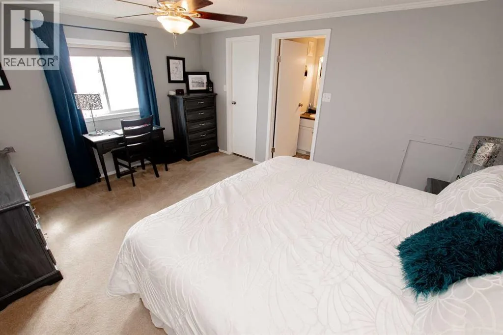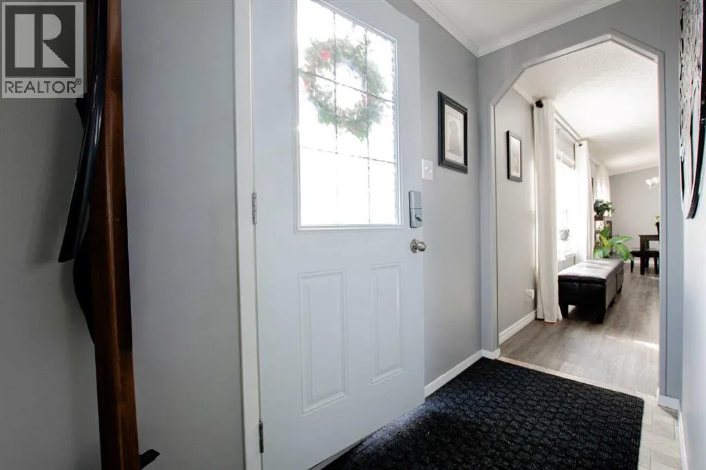 IMMACULATE HOME IN TRUMPETER VILLAGE!This beautifully maintained, move-in ready home checks all the boxes â including AIR CONDITIONING for those hot summer days.Step inside to a bright, open-concept layout featuring a stunning kitchen with ample cupboard space, a corner pantry, and stainless steel appliances. The dining area comfortably fits a full-sized table, making it perfect for everyday living or hosting.The spacious primary bedroom offers a walk-in closet and a 4-piece ensuite complete with a relaxing jetted tub. Two additional bedrooms are located on the opposite end of the home, along with a second full bathroom â ideal for families or guests.Recent updates include shingles (2021), newer appliances, and custom blinds throughout.Enjoy the outdoors with a great deck, perfect for entertaining, and take advantage of being just steps from a playground.A clean, well-cared-for home in a great location â this one is a must-see. (id:27476)