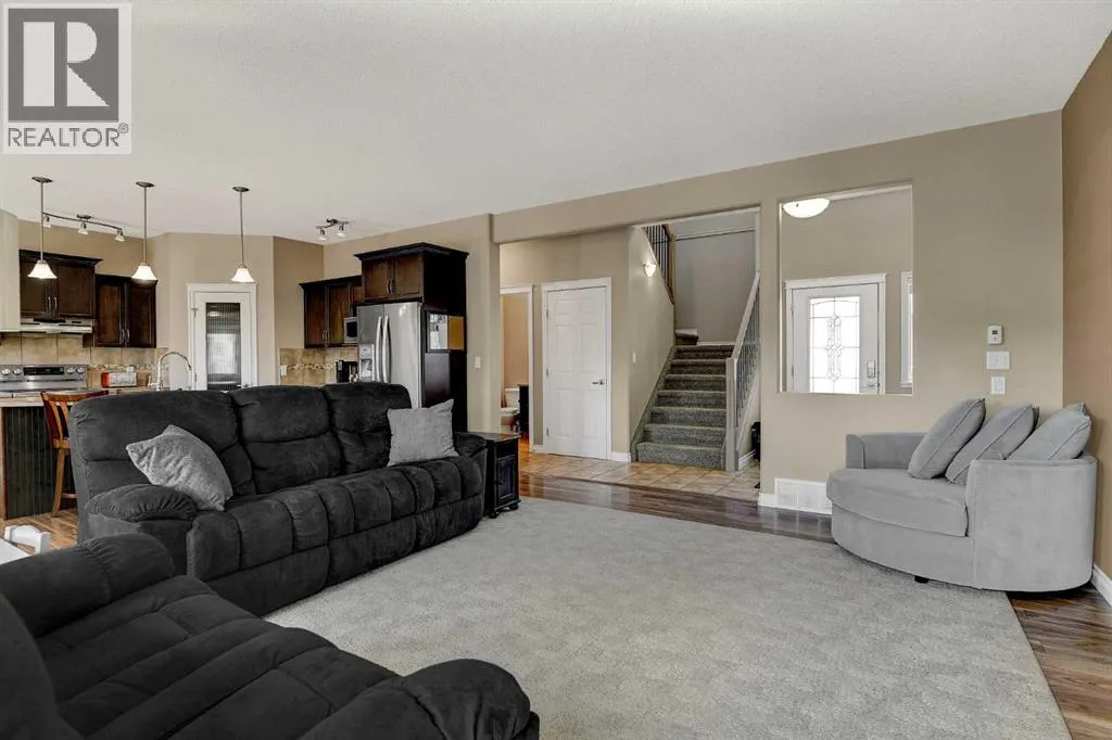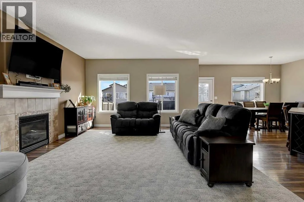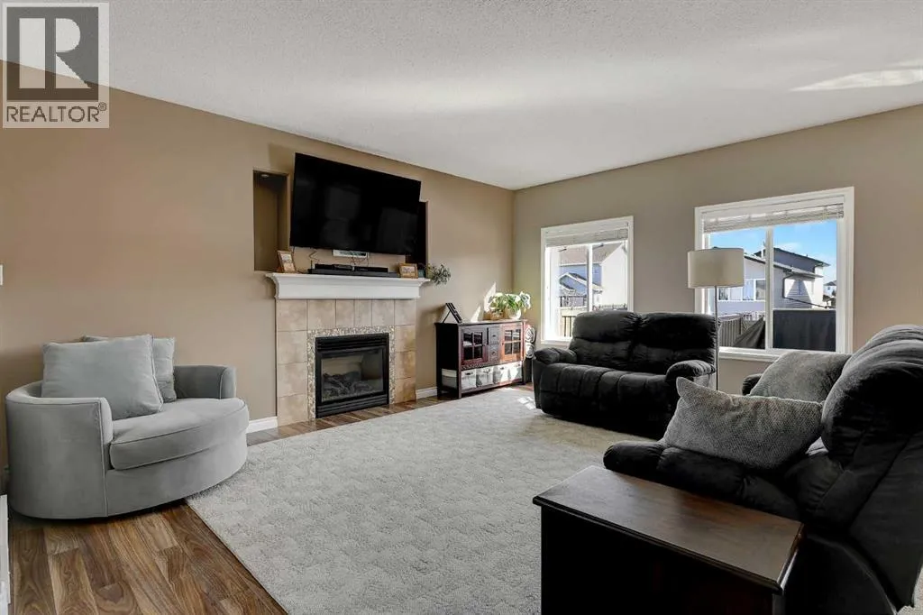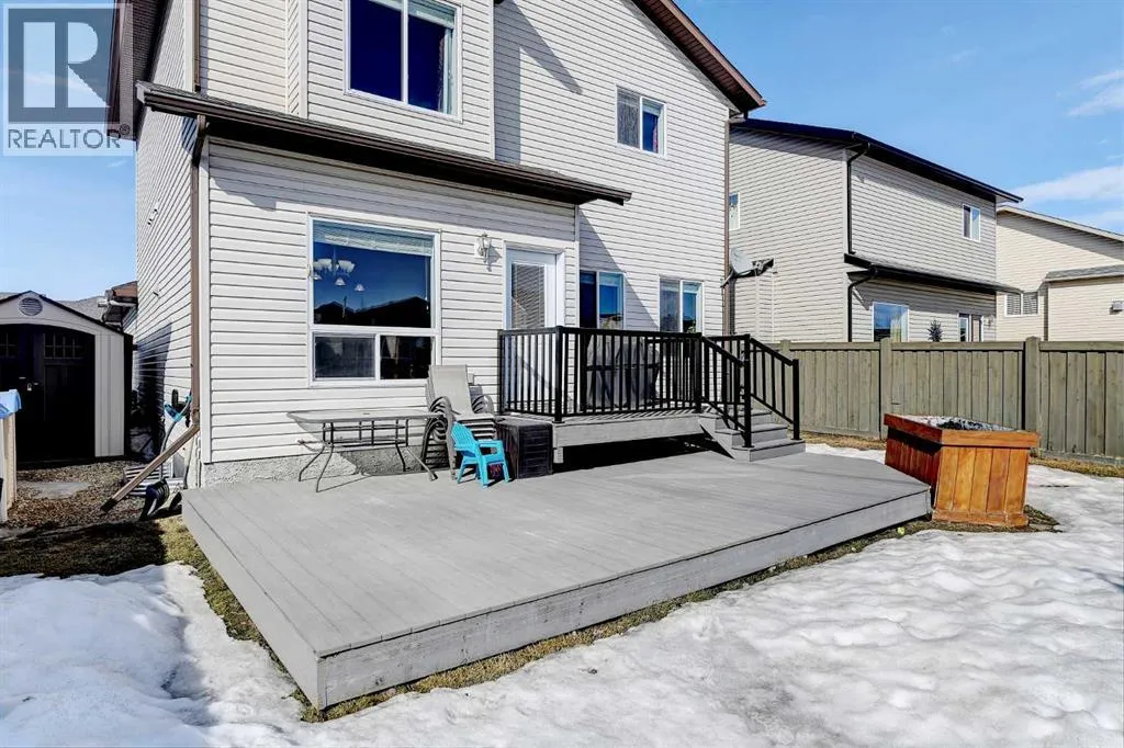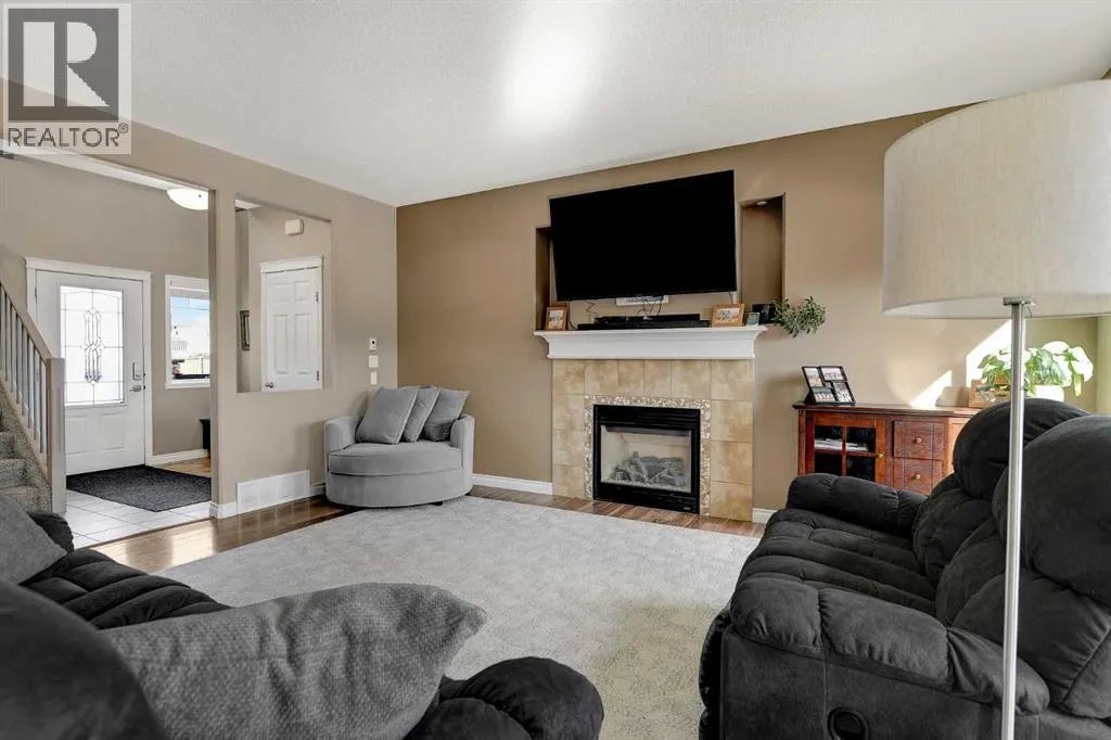 Welcome to Royal Oaks!This beautifully designed open concept two-storey home is sure to impress from the moment you walk in. The main floor features a spacious living room complete with a cozy gas fireplace, flowing seamlessly into the kitchen with a breakfast bar island and rich dark cabinetry. The south facing windows fill the kitchen and living room with ample lighting.Upstairs, youâll find a generous primary bedroom with a walk-in closet and a private ensuite featuring a jetted tub. Two additional bedrooms make this level perfect for families.The fully developed basement offers even more living space, including a sizeable family room, an additional bedroom, and office space.Step outside to enjoy the great-sized backyard, complete with a two-tier composite deck, gas BBQ hookup, storage shed, and a rear easement that provides added privacy.Additional highlights includes Telus Fiber Optic internet option, RV parking, a triple-wide driveway, a double heated garage for those cold winter months, and central air conditioning to keep you cool all summer long.This home combines everyday comfort with plenty of room to gather and enjoy. Book your showing today with your favourite REALTOR®! (id:27476)
