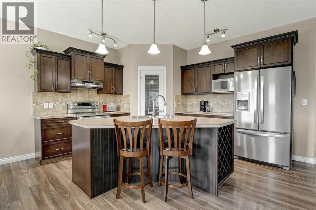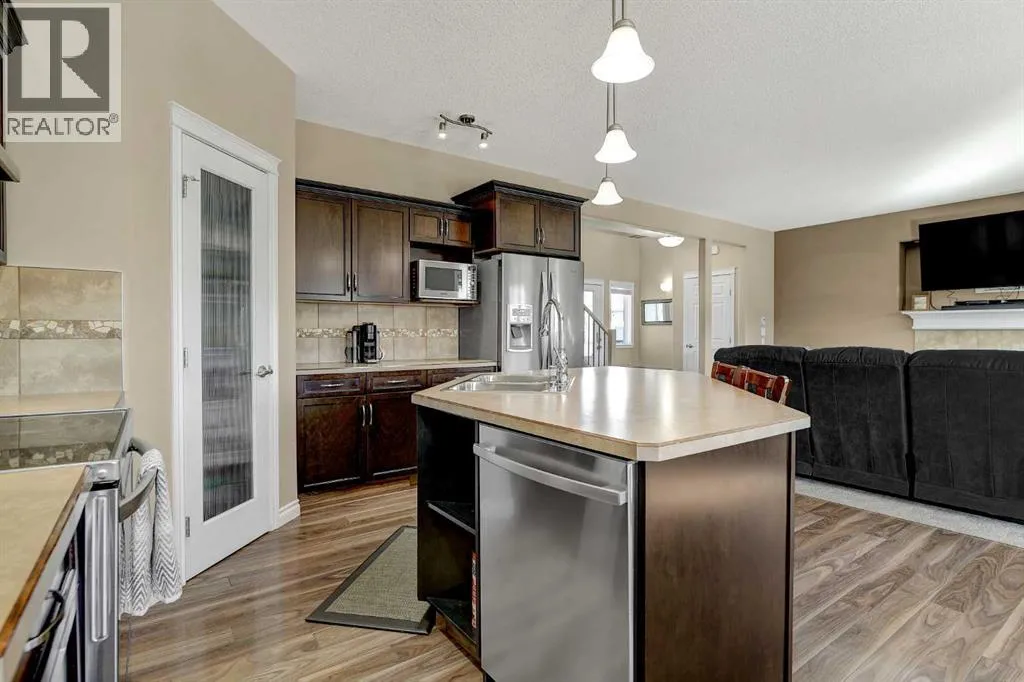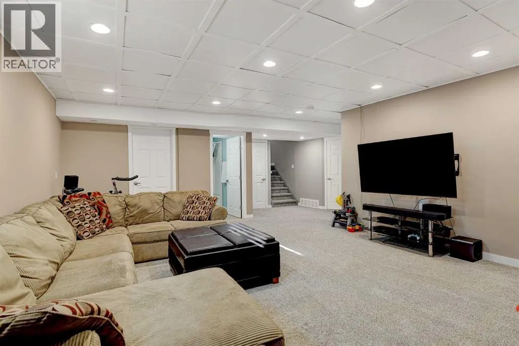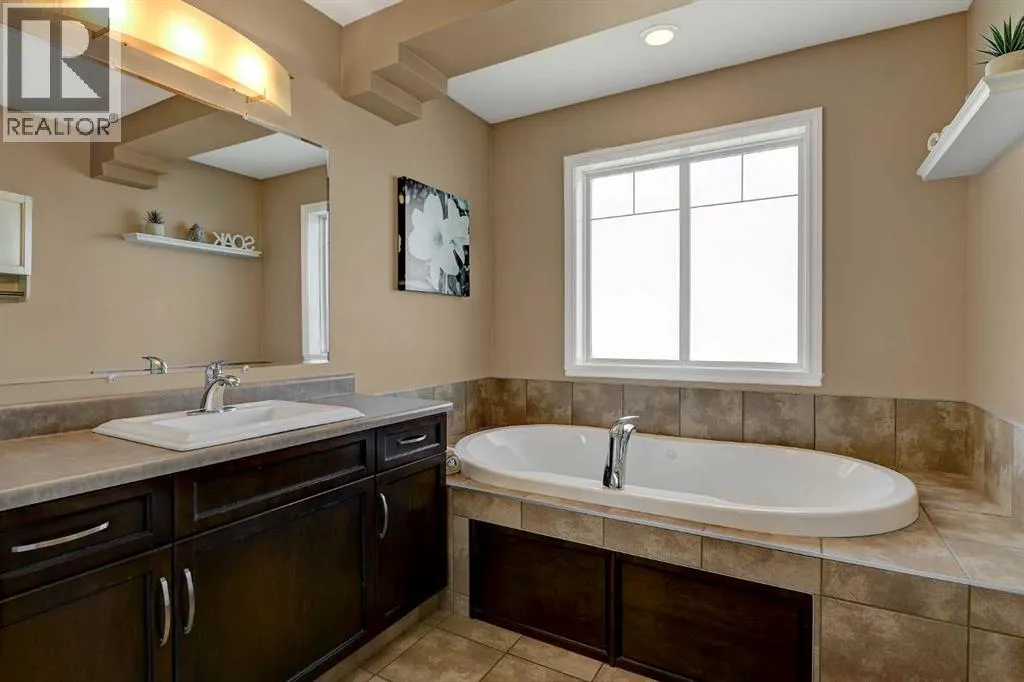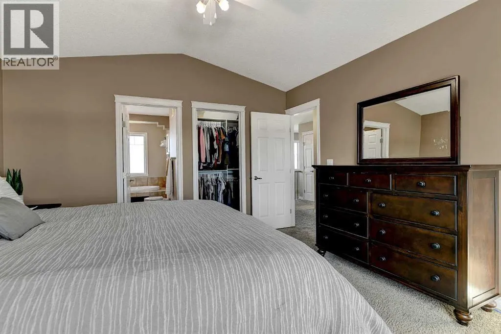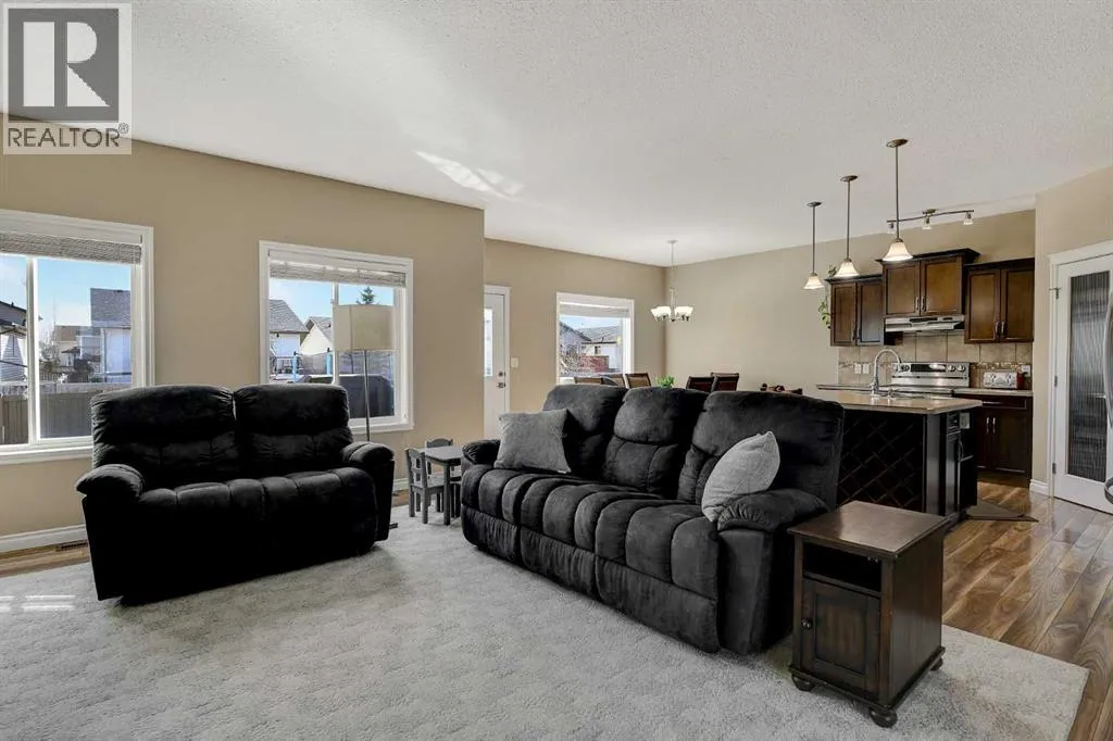 Welcome to Royal Oaks!This beautifully designed open concept two-storey home is sure to impress from the moment you walk in. The main floor features a spacious living room complete with a cozy gas fireplace, flowing seamlessly into the kitchen with a breakfast bar island and rich dark cabinetry. The south facing windows fill the kitchen and living room with ample lighting.Upstairs, youâll find a generous primary bedroom with a walk-in closet and a private ensuite featuring a jetted tub. Two additional bedrooms make this level perfect for families.The fully developed basement offers even more living space, including a sizeable family room, an additional bedroom, and office space.Step outside to enjoy the great-sized backyard, complete with a two-tier composite deck, gas BBQ hookup, storage shed, and a rear easement that provides added privacy.Additional highlights includes Telus Fiber Optic internet option, RV parking, a triple-wide driveway, a double heated garage for those cold winter months, and central air conditioning to keep you cool all summer long.This home combines everyday comfort with plenty of room to gather and enjoy. Book your showing today with your favourite REALTOR®! (id:27476)