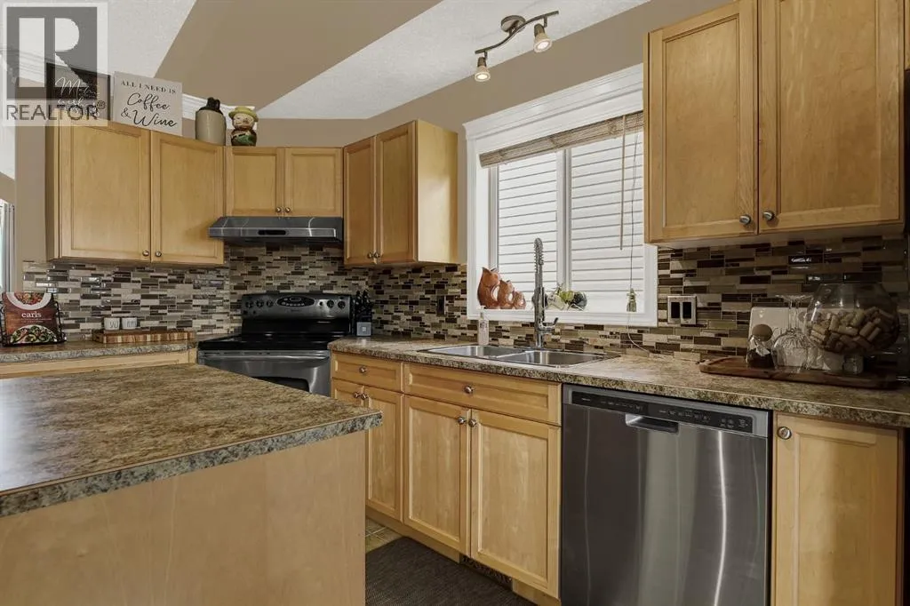 Developed and spacious bi-level located in desirable Royal Oaksâ Steps from a playground! This well-maintained home offers 4 bedrooms (5Th unfinished) and 3 full bathrooms (all have tubs), making it perfect for families. The main floor features vaulted ceilings over the kitchen and living area, creating a bright, open feel with an abundance of natural light. Enjoy functional kitchen complete with ample counter space, stainless steel appliances, and a stylish tile backsplash. The primary bedroom is generously sized and includes a walk-in closet and private ensuite. Downstairs, youâll find a bright, developed basement with large windows, an additional two bedrooms, a spacious rec room highlighted by an impressive feature wall, plus a full bathroom, and laundry area. Additional highlights include a heated garage, Air conditioning / new Furnace in 2024 plus new contour curbing in the front yard last summer. The fully fenced and landscaped yard offers great outdoor space, complete with a large south facing deck for relaxing or entertaining. Ideally located close to two schools, parks, and amenities. This is a fantastic family home in a great neighborhood! (id:27476)