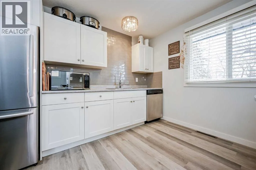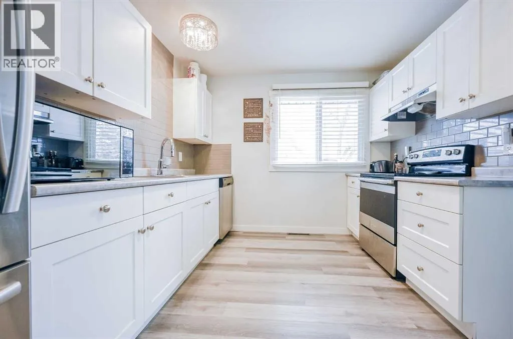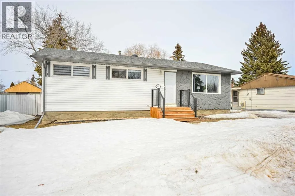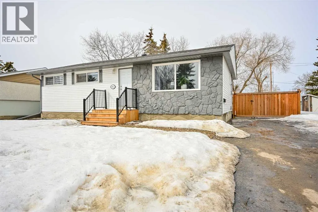 Cute, Cozy, And Updated is the definition of this stunning bungalow. Situated on a massive 8400sq-ft lot, with large asphalt driveway that extends into back yard. Entering your home you will appreciate the newer front deck, that leads you into your living room complimented nicely by feature wall with aesthetic electric fireplace. Kitchen is updated with modern backsplash, adequate counter + cabinet space and two fridges. Dining is a good size allowing table of many shapes and sizes. Remainder of main floor consists of three bedrooms, full bathroom and desired main floor laundry with brand new washer just installed. Heading to your fully developed basement you will appreciate the sheer size it boasts, with second living room which could easily add fourth bedroom, there is a finished storage room, full bathroom, and utility room. Back yard is massive and no lack of space for future detached garage or RV Parking as well 80% of fence is only a few years old. Book your viewing today of this affordable home that has had some extensive upgrades completed including main sewer line, roof, windows, front deck, fence, flooring, paint and light fixtures to name a few! (id:27476)