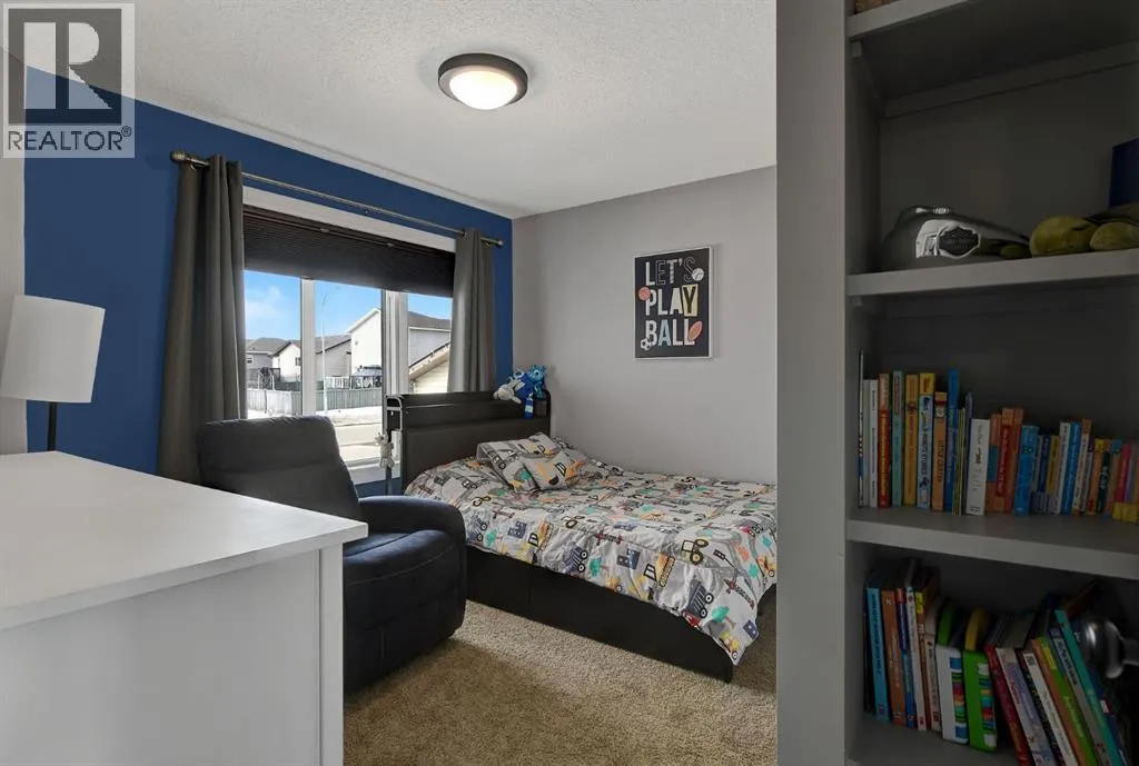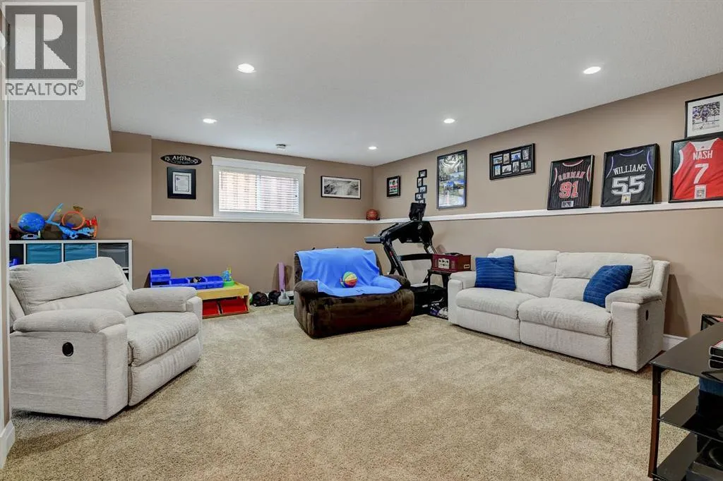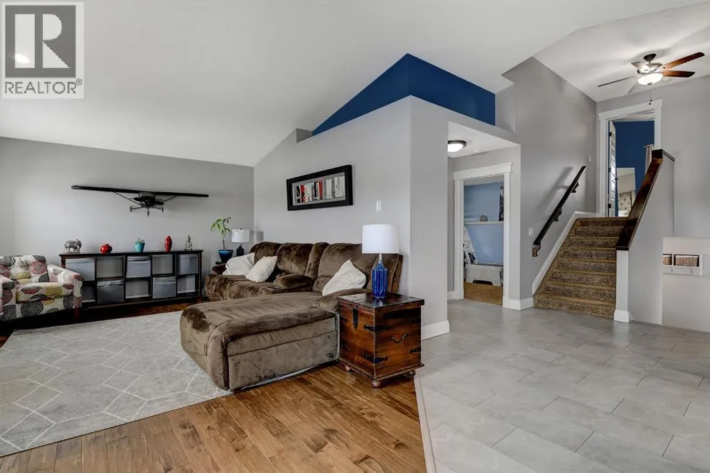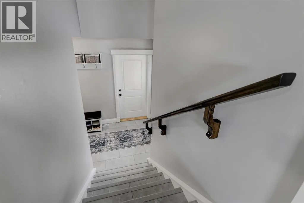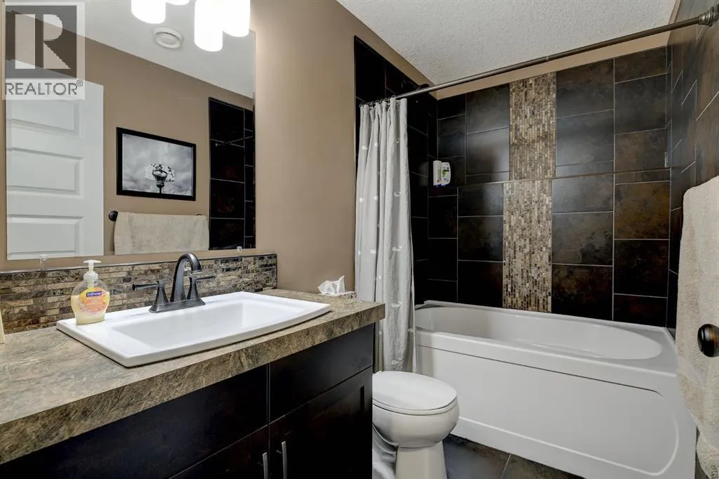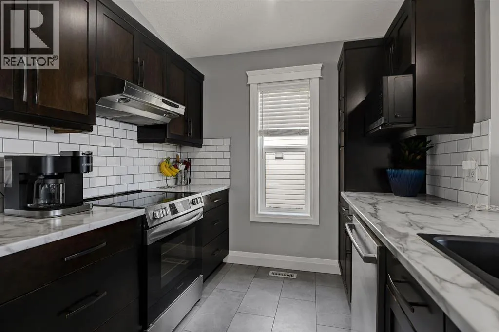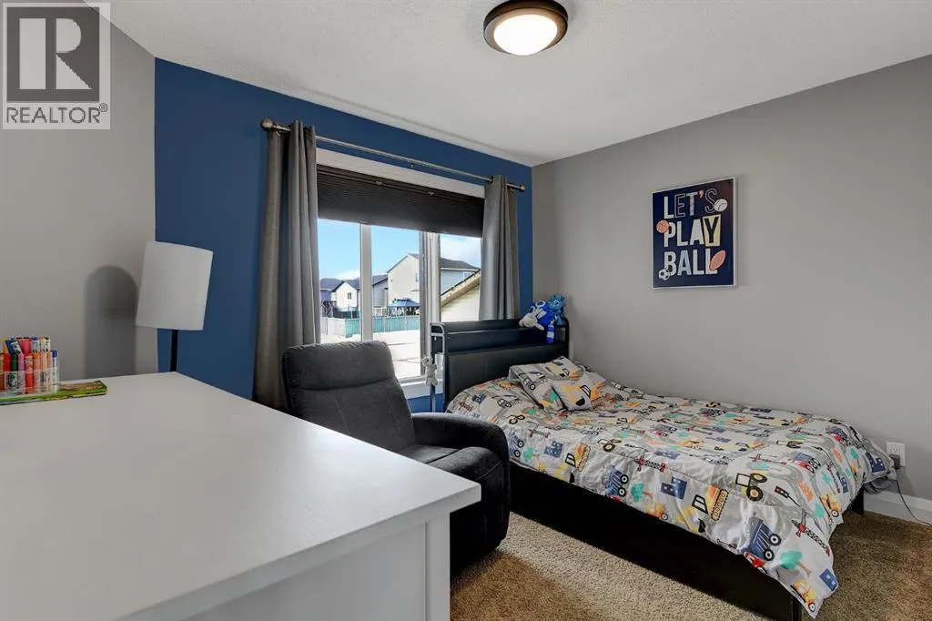 Absolutely immaculate, fully developed modified bi-level backing onto green space and just steps from a park in the family friendly community of Westpointe. This move in ready home has it all. A spacious tiled front entry welcomes you into the open concept main floor, featuring durable vinyl tile flooring throughout. The inviting galley style kitchen showcases rich espresso cabinetry, stainless steel appliances, and excellent functionality. The bright dining area opens onto a composite deck and a fully fenced, landscaped backyard with no rear neighbours perfect for relaxing or entertaining in complete privacy. The living room is warm and inviting, highlighted by a cozy gas fireplace, large windows that flood the space with natural light, and the added comfort of central air conditioning for the summer months. Two generously sized bedrooms and a full bathroom with a stunning tiled surround complete the main level. Above the garage, the oversized primary suite offers a true private retreat, featuring a luxurious ensuite with heated floors, a soaker tub, separate tiled shower, dual sinks, and direct access to a spacious walk-in closet. The fully developed basement boasts a massive rec room with a fun climbing wall, a fourth bedroom, and a third full bathroom providing a versatile layout ideal for families of all sizes. This home shows exceptionally well and is sure to impress. (id:27476)