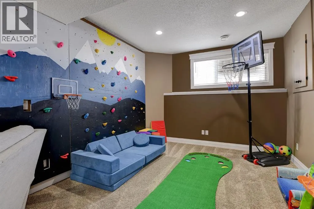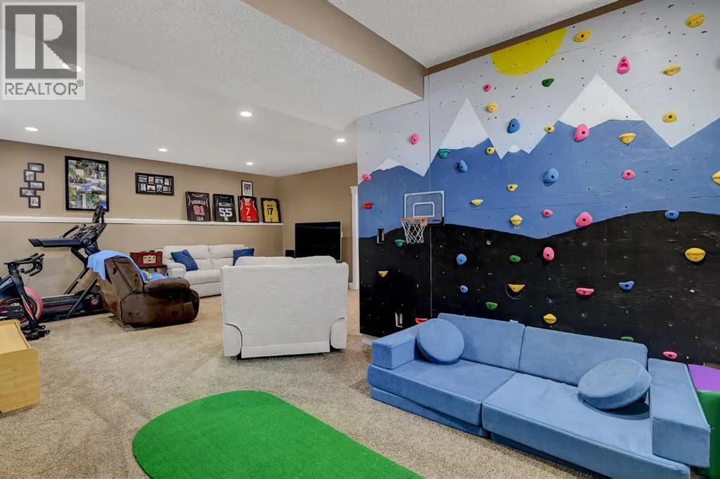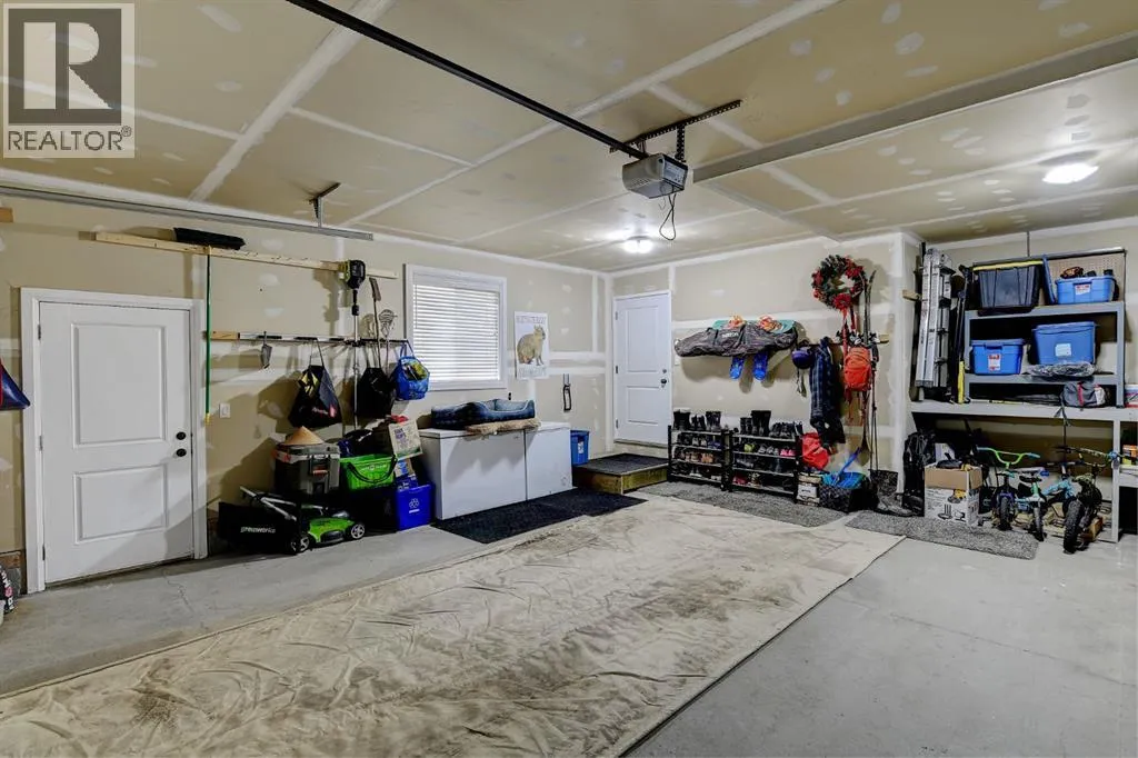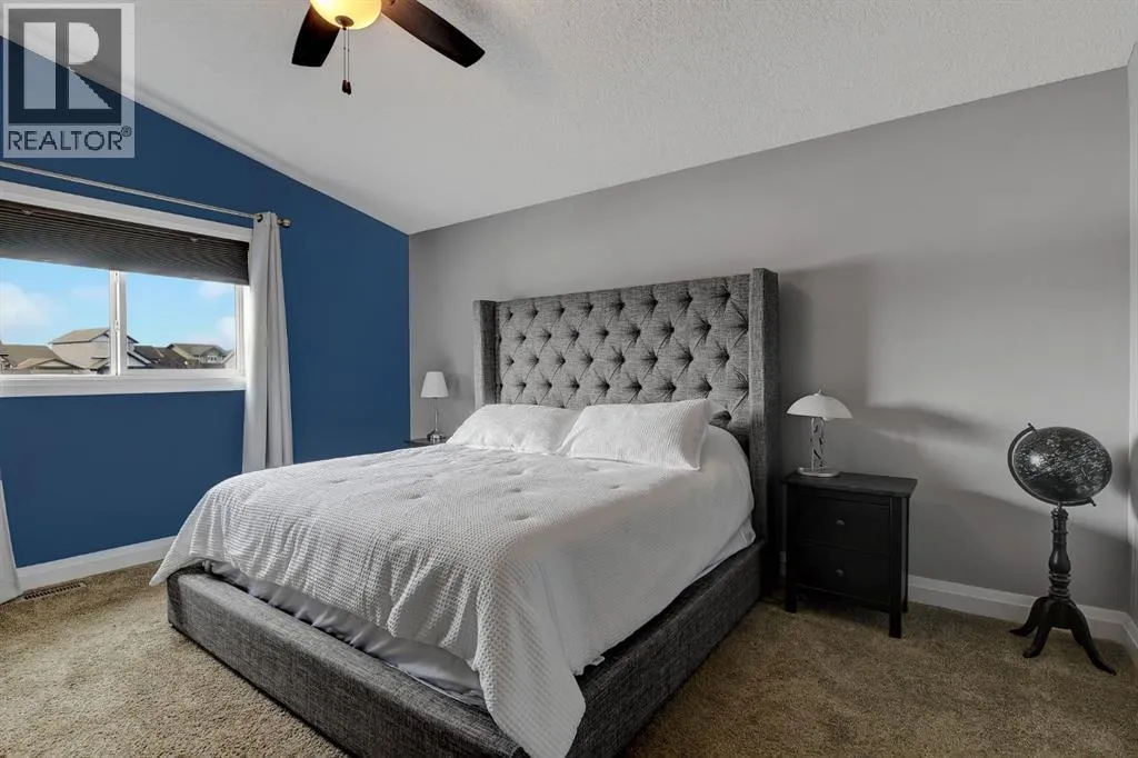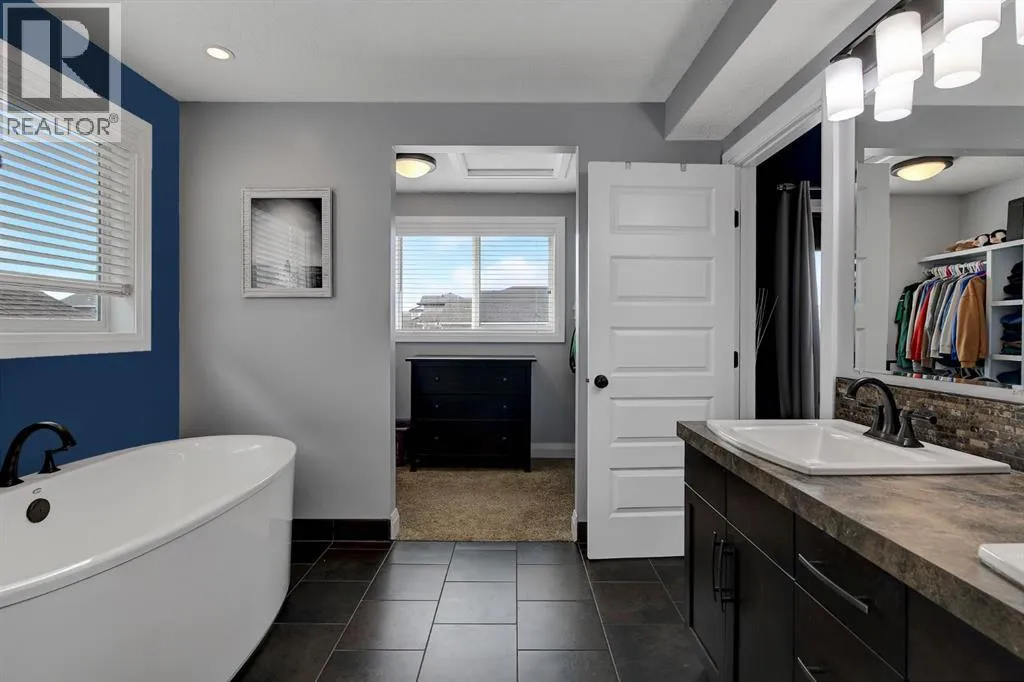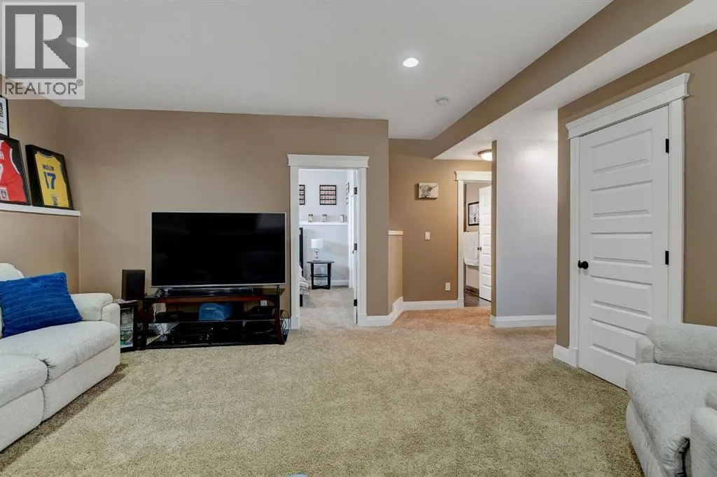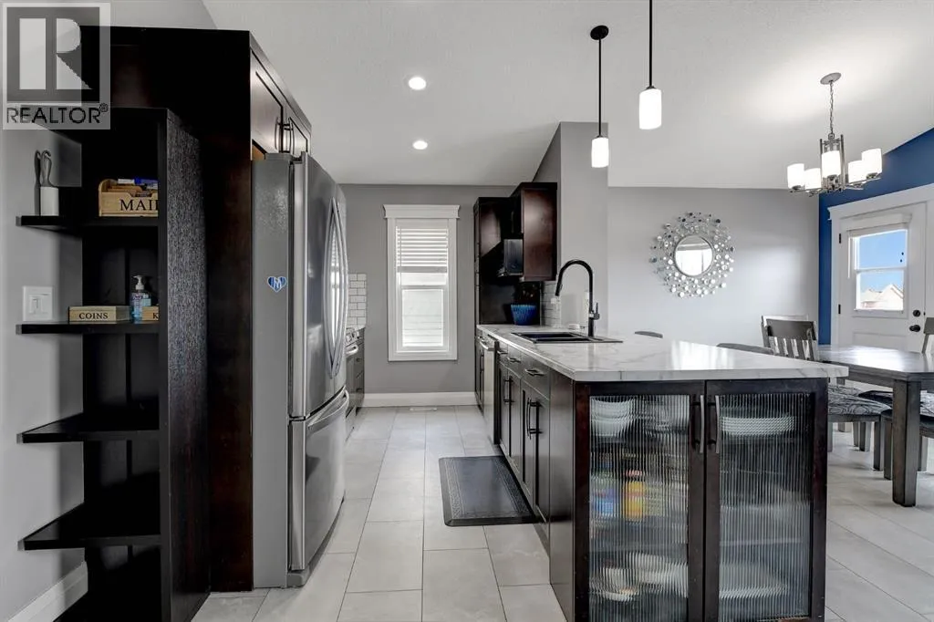 Absolutely immaculate, fully developed modified bi-level backing onto green space and just steps from a park in the family friendly community of Westpointe. This move in ready home has it all. A spacious tiled front entry welcomes you into the open concept main floor, featuring durable vinyl tile flooring throughout. The inviting galley style kitchen showcases rich espresso cabinetry, stainless steel appliances, and excellent functionality. The bright dining area opens onto a composite deck and a fully fenced, landscaped backyard with no rear neighbours perfect for relaxing or entertaining in complete privacy. The living room is warm and inviting, highlighted by a cozy gas fireplace, large windows that flood the space with natural light, and the added comfort of central air conditioning for the summer months. Two generously sized bedrooms and a full bathroom with a stunning tiled surround complete the main level. Above the garage, the oversized primary suite offers a true private retreat, featuring a luxurious ensuite with heated floors, a soaker tub, separate tiled shower, dual sinks, and direct access to a spacious walk-in closet. The fully developed basement boasts a massive rec room with a fun climbing wall, a fourth bedroom, and a third full bathroom providing a versatile layout ideal for families of all sizes. This home shows exceptionally well and is sure to impress. (id:27476)