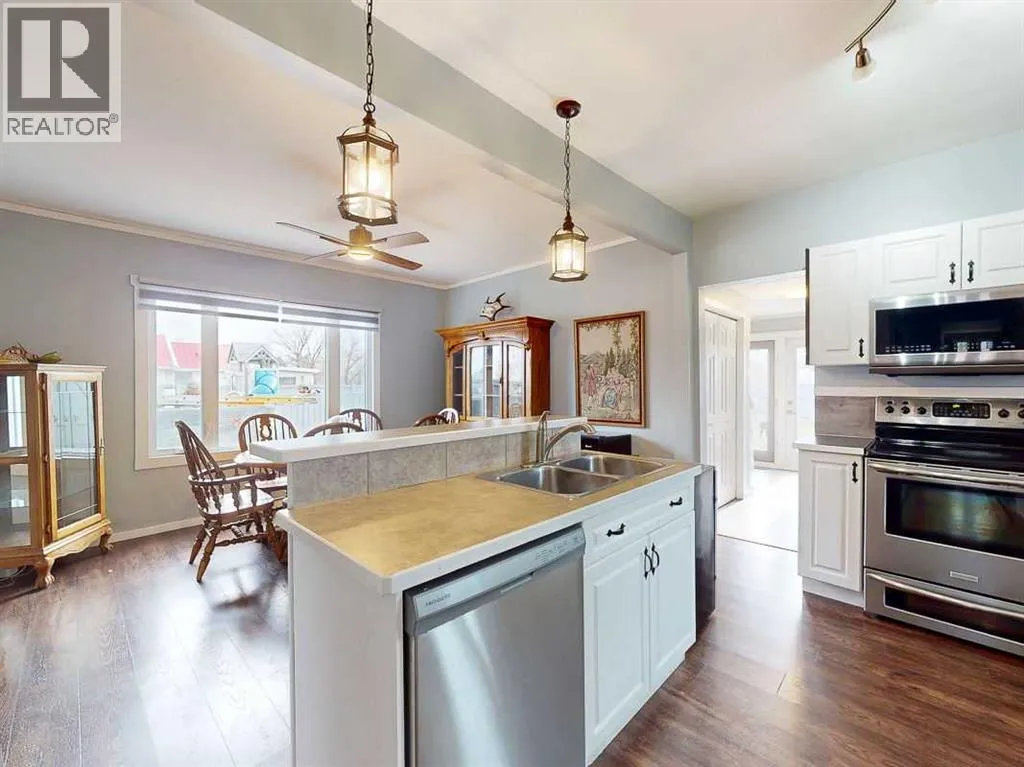 This is it! This gorgeous four bedroom, two bathroom heritage home on a HUGE double lot in the friendly community of Granum is ready for you to call home. Just move in and enjoy all the updates that have already been done for you - no renovations needed! This two story beauty has had virtually everything updated over the last five years, including: all new windows and doors, exterior and interior paint, TWO brand new bathrooms, complete kitchen remodel with quality cabinets, all new flooring, new appliances (2021), fencing, metal roof, garage roof deck and shingles, hot water tank (2018), Furnace approximately (2015). The main floor features a semi-open floor plan, with cased openings between living and dining areas. The fully update white kitchen and dining area is bright and sunny with windows on the east and west sides of the home, for morning and evening sun. The main floor also hosts a bedroom or office, as well as your new three piece bathroom and laundry area, and easy access to your private patio and yard out the back. Heading upstairs youâll find a large flex space, your primary bedroom, two bedrooms for the kiddos and a beautiful new four piece bathroom with a soaker tub. Letâs head outside to your amazing yard and garden! This manicured 100 x 120 yard has virtually everything you need to fill your summers with blooms, berries and honey bees, including: raspberries, saskatoons, blueberries, strawberries, cherries, grapes, rhubarb and whatever veggies you choose to grow in your raised beds. Thereâs also ample room for parking your RV, as well as TWO GARAGES ( 14 x 22 and 12.5 x 18). If thatâs not enough space for your motorized toys, thereâs still loads of room to build your dream garage here. This property has so much to offer anyone looking to get out of the bigger centres and soak up small town life. It has all the benefits of living in town, like town water, sewer and garbage pick up, but with the open space and privacy country living. Itâs the perfect scenario! If this sounds like the lifestyle and home for you, reach out to your favourite REALTOR® to book a showing today! (id:27476)