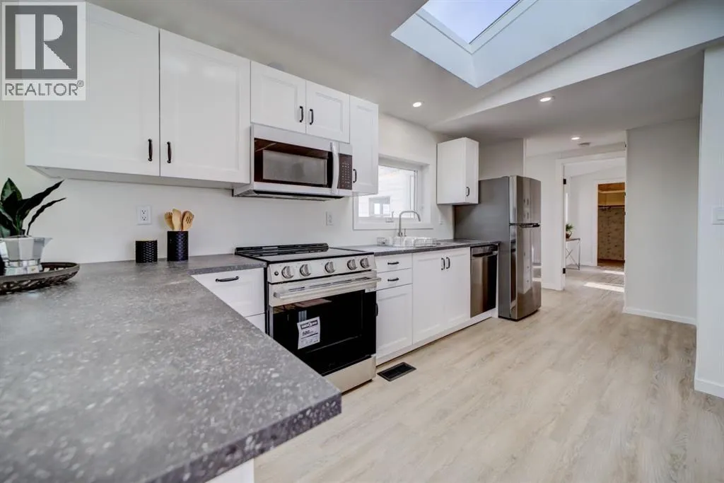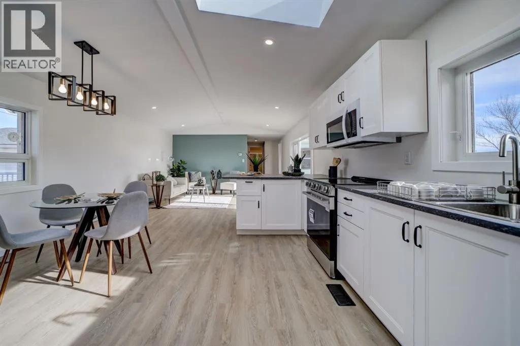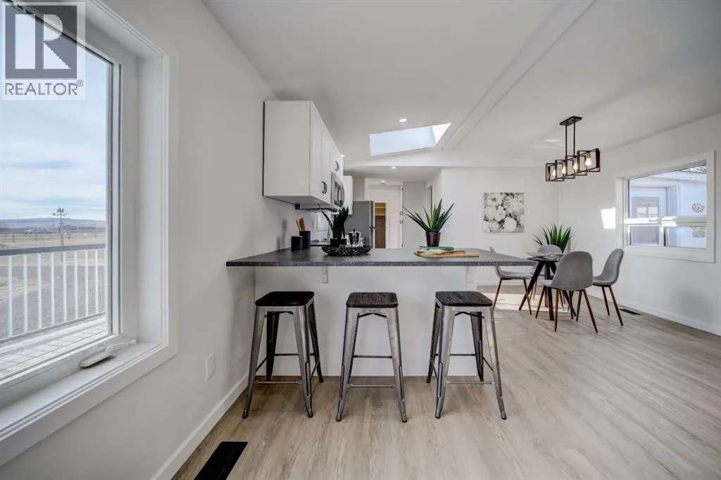 Fully renovated 3 bedroom, 2 bathroom home on a large double lot in the quiet community of Granum. This 1,372 sq ft home has been professionally updated from top to bottom, including an entirely new kitchen and all new appliances. The bright, open floor plan features a brand new kitchen with a generous peninsula for extra prep space and seating, modern cabinetry and finishes, and a comfortable eating area that flows into the living room. The layout also offers a dedicated laundry room and a private primary bedroom with 4-piece ensuite. Outside youâll find an oversized 22' x 28' detached garage, plus ample off-street parking. The 0.28 acre lot with back lane access provides plenty of space for a garden, RV parking, dog run, or play area. Located close to the school, park, pond, and an easy commute to Fort Macleod, Lethbridge and about an hour to Calgary, this move-in ready home is an affordable option that feels like new! (id:27476)