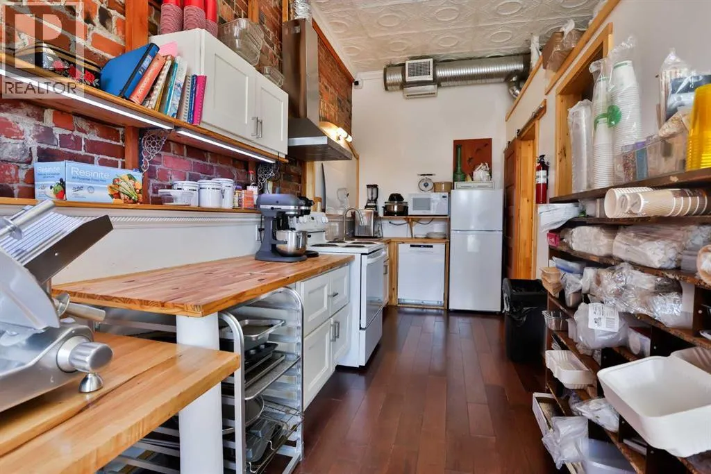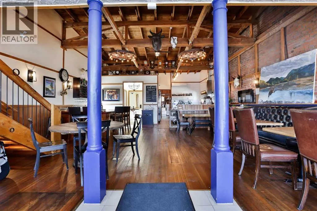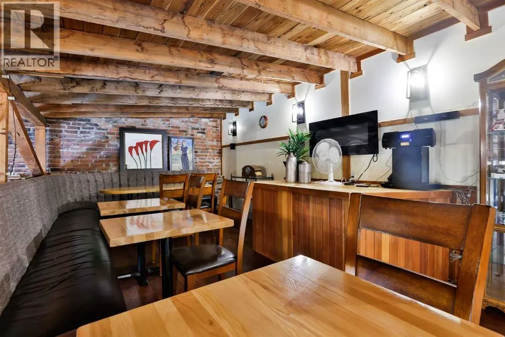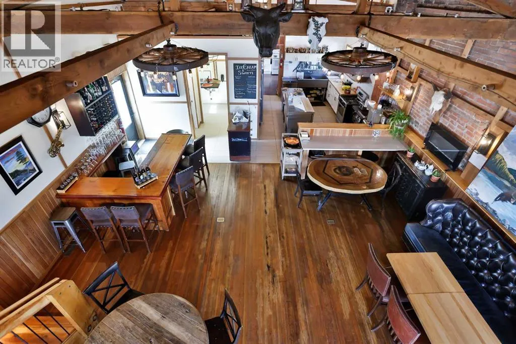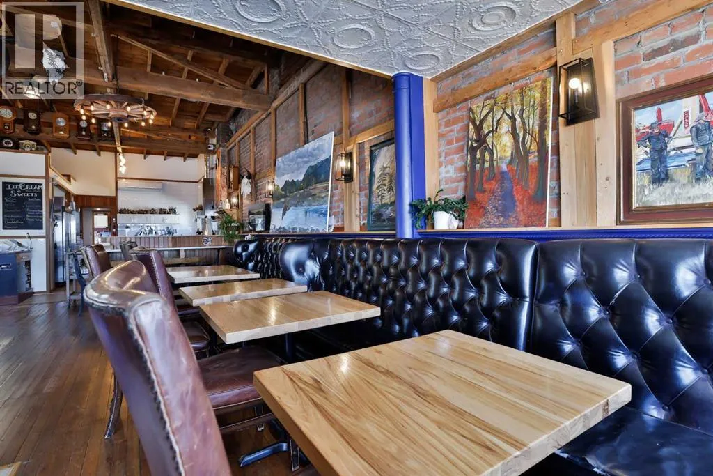 Step into a truly magical spaceâone thatâs ready for a chef, restaurateur, or entrepreneur looking to create something memorable.This beautifully restored and completely updated building blends historic charm with warmth and personality. Inside, guests are welcomed by exposed brick walls, timber beams, hardwood floors, tin ceilings, and comfortable leather bench seating. Thoughtfully designed dining nooks invite conversation, while an elevated level offers a distinctive space ideal for private gatherings, events, or chefâs table experiences.The opportunity here is truly turnkey. From kitchen equipment to dishes and service essentials, nearly everything needed to open and operate your own restaurant is already in place and included with the property. (Artwork and clocks are part of the ownerâs private collection, though most other items are negotiable.)Adding flexibility and value, the property includes two additional developed living spaces. A private suite within the building features its own entrance along with a full bath, kitchen, washer, and dryerâperfect for an owner-operator or on-site manager. In addition, an attached 600+ square foot fully renovated and furnished two-bedroom suite offers excellent revenue potential. Currently rented and generating income, it includes appliances, furnishings, and in-suite laundry.The building itself has undergone extensive upgrades. The original structure has been fully redone with new windows and doors, a roof insulated to R-40 standards with updated covering, and a newer furnace and hot water tank. The spacious lower level provides ample storage and utility space.Located in the hamlet of Granum along the Highway 2 corridor between Calgary and Lethbridge, this property is ideally positioned to serve both rural communities and travellers moving through Albertaâs cattle and farm country. For the right owner, it offers the rare chance to create a destination dining experienceâone that draws guests from both nearby co mmunities and the larger urban centres just up and down the highway.A unique property. A turnkey opportunity. And a place where vision, hospitality, and great food could turn this charming space into a true destination. (id:27476)