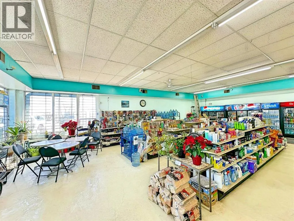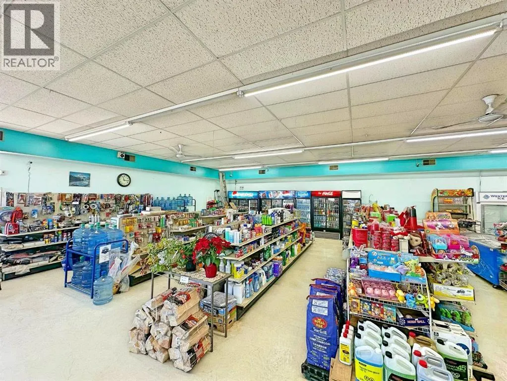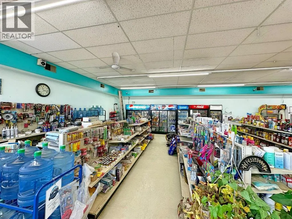 Exceptional Turnkey Investment Opportunity. This offering includes the land, a mixed-use building, a well-established grocery business, all equipment, and an above-ground fuel tank. As the only grocery store in town, the business serves as the central retail hub, providing a steady revenue stream from groceries, liquor, tobacco, lottery, and fuel (regular and diesel). The previous postal services have been upgraded to a Purolator depot for higher margins and simpler operations. The property is meticulously maintained and includes a newly built 1,200 sq. ft. residential home (2 bedrooms, 2 bathrooms) located directly next to the storeâperfect for an owner-operator or as a rental property. The grocery store occupies 3,200 sq. ft. on a spacious 0.544-acre lot, offering significant room for expansion. The 2025 property assessment is $532,330, which includes the land, the commercial building, and the residential home. Annual property taxes are $6,606.62. This assessment and tax amount are for the real estate only and do not include the value of the business assets. Future growth potential includes upgrading the fuel infrastructure or adding a shop-in-shop food depot to meet rising local demand. With new residential developments currently under construction nearby, this is a rare chance to acquire a thriving business with real estate in a growing Alberta community. (id:27476)