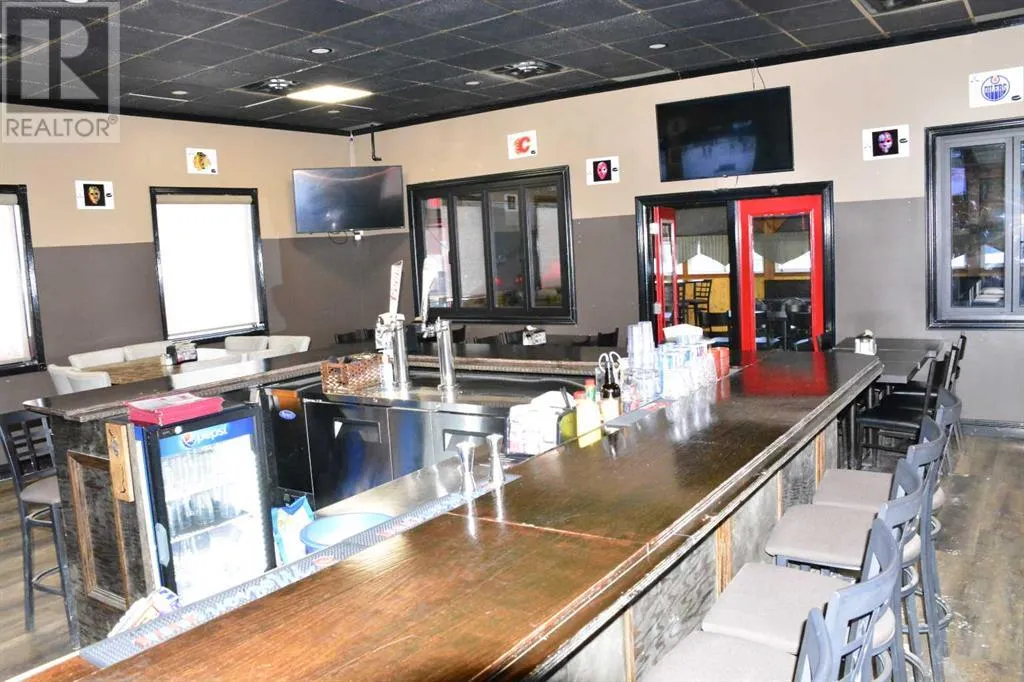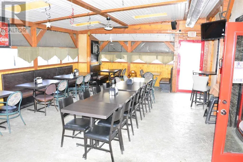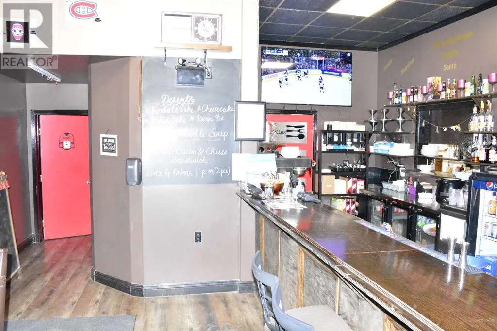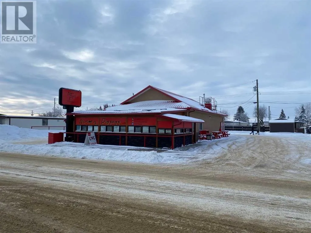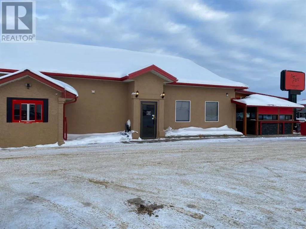 Land, building and business all for sale in one complete package - lock stock and barrel as they say - it is all here for you to take over and have a clientele from day one!!! Great seating capacity (100+) with the new enclosed patio in place , set up with all the permits for liquor license from AGLC plus potential to apply for VLT's if desired, a drive through with order area and pick up windows - a must have in the current market for the added benefit of take out orders, paved parking lots with abundance of space for vehicles. There has been numerous updates to flooring, windows, doors, bar, patio with in floor heating. With the location on highway 2 frontage you have a constant flow of traffic by your door - anyone going north or south plus the people in the town will see your sign and the excellent exposure!! As well the vendor is flexible to sell - if you buy the business they will look at renting the building to a entrepreneur that wants to be in the restaurant/lounge business but may not have the ability to finance. Call today!! (id:27476)