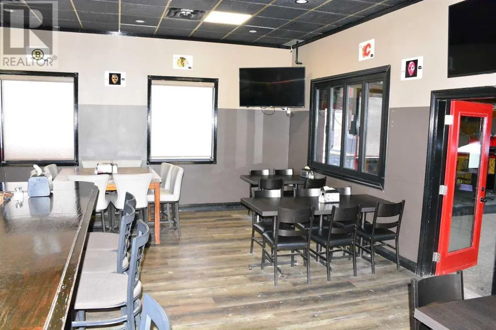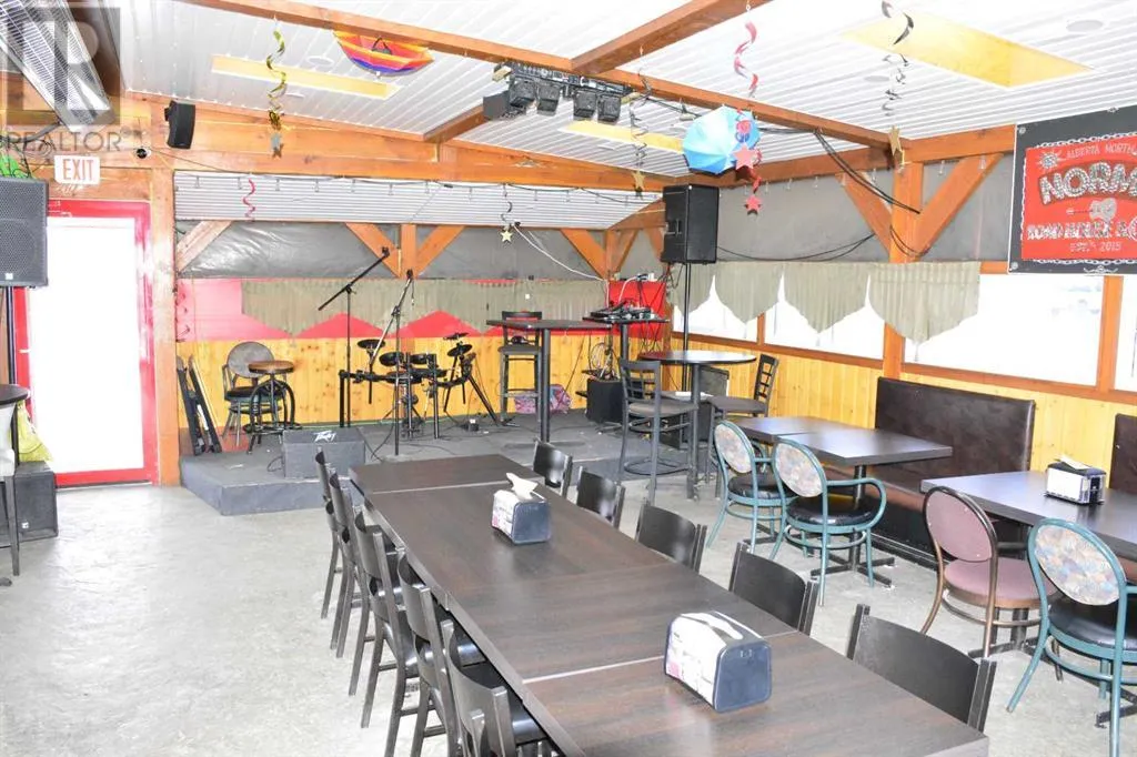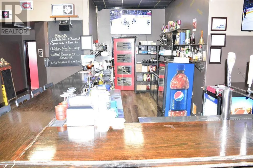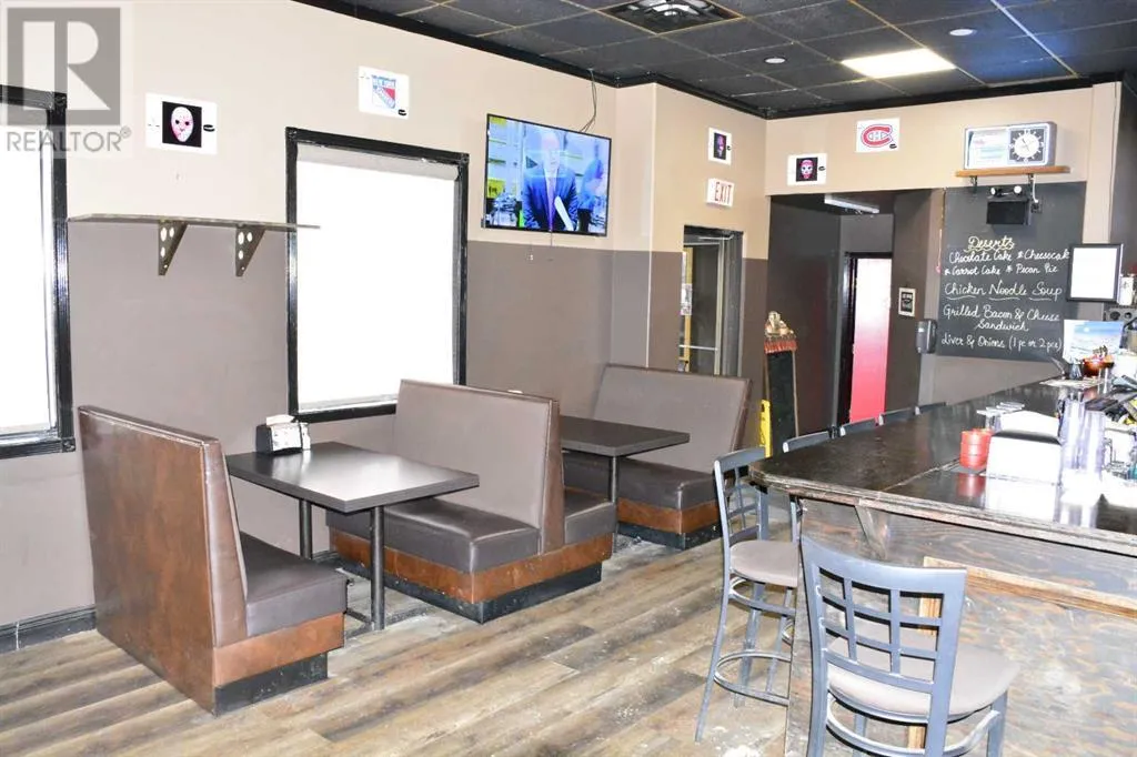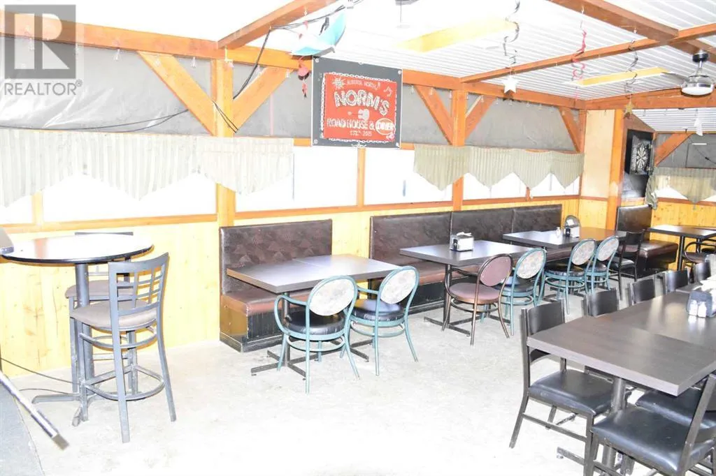 Land, building and business all for sale in one complete package - lock stock and barrel as they say - it is all here for you to take over and have a clientele from day one!!! Great seating capacity (100+) with the new enclosed patio in place , set up with all the permits for liquor license from AGLC plus potential to apply for VLT's if desired, a drive through with order area and pick up windows - a must have in the current market for the added benefit of take out orders, paved parking lots with abundance of space for vehicles. There has been numerous updates to flooring, windows, doors, bar, patio with in floor heating. With the location on highway 2 frontage you have a constant flow of traffic by your door - anyone going north or south plus the people in the town will see your sign and the excellent exposure!! As well the vendor is flexible to sell - if you buy the business they will look at renting the building to a entrepreneur that wants to be in the restaurant/lounge business but may not have the ability to finance. Call today!! (id:27476)