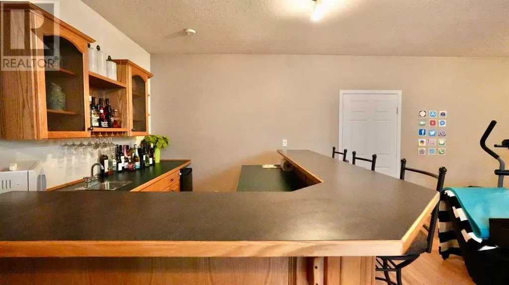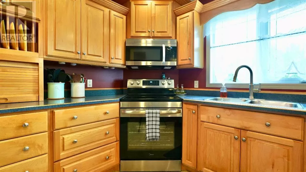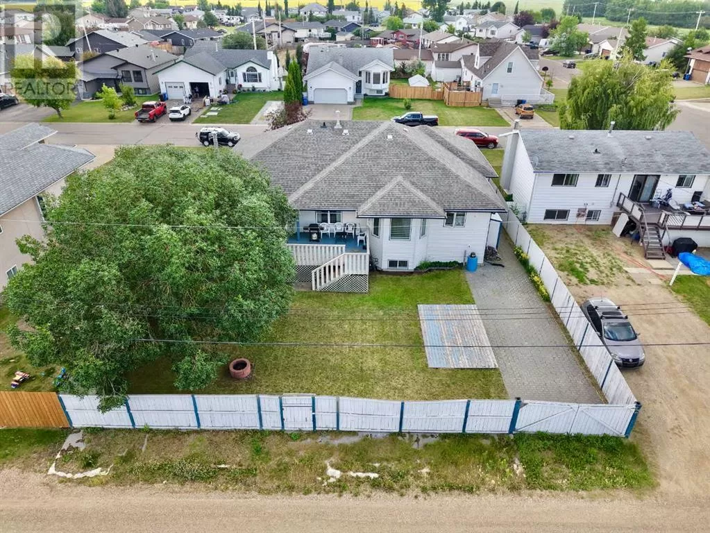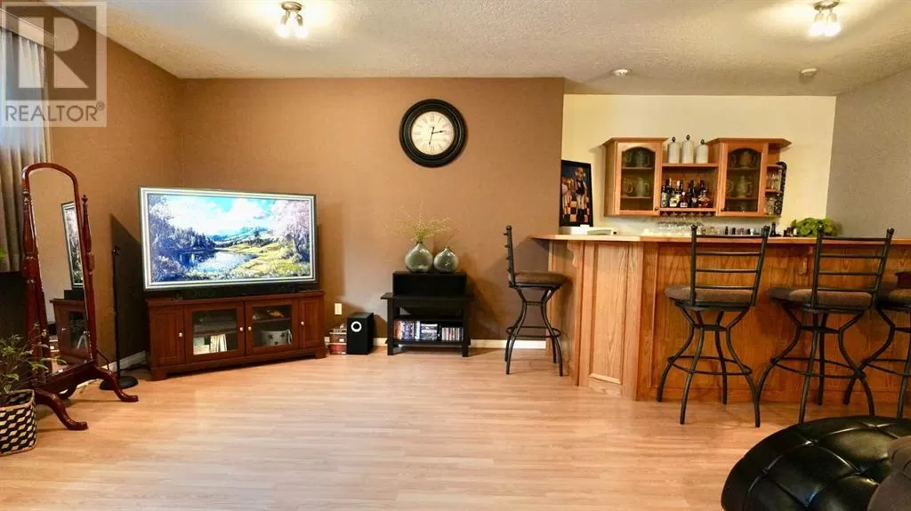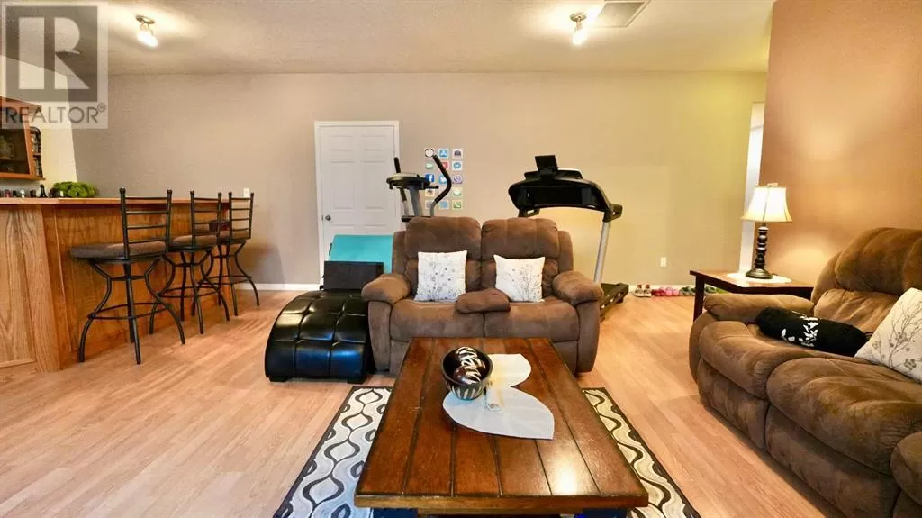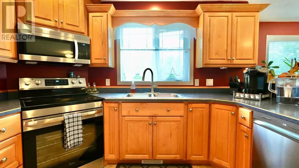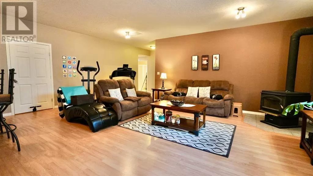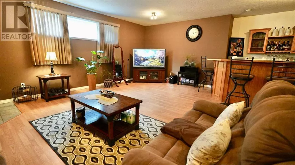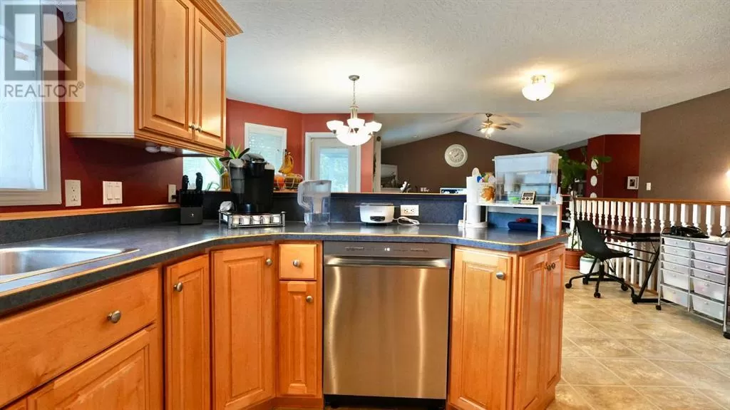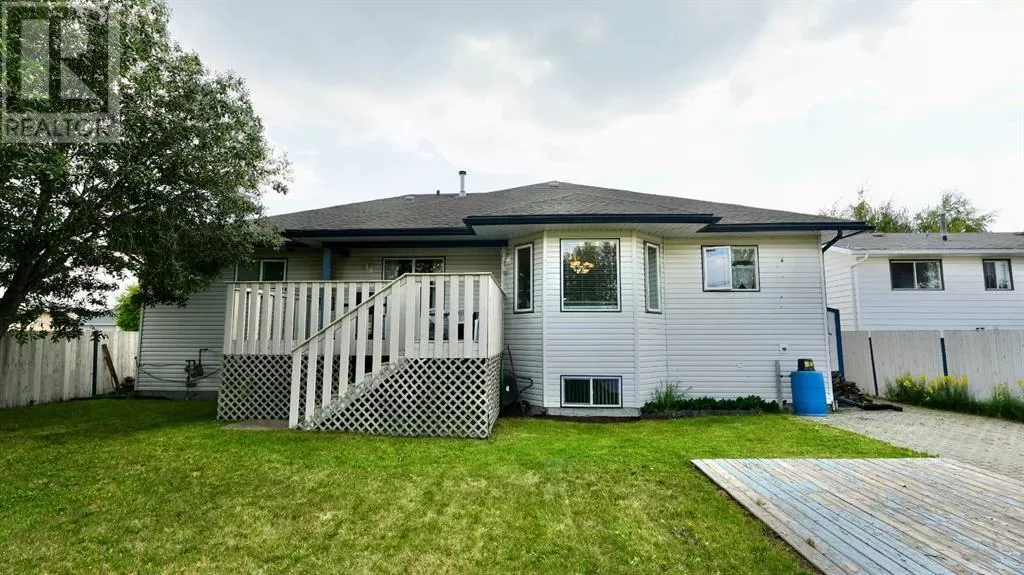 A One-of-a-Kind Home in an Exceptional Grimshaw Location! This immaculate and sprawling 1,693 square foot home offers style, space, and comfort in equal measureâand itâs truly a rare find! Tucked away on a quiet street and backing onto lush green space, the property sits on two beautifully landscaped, fully fenced lots. You'll love the curb appeal with its oversized driveway, large back deck, and tasteful gardens that create a peaceful and private outdoor retreat. Step inside and be welcomed by a grand front foyer that leads directly into the heated double garage and the heart of this bright, open-concept home. The custom kitchen with new appliances is a showstopper with its thoughtful layout, eating bar, and abundant cabinetryâideal for home cooks and entertainers alike. The dining area offers plenty of space to gather and opens onto the back deck through garden doors. The cozy adjoining family room features a gas fireplace, making it the perfect spot to relax. The main floor also boasts a spacious laundry room with built-in cabinetry, three generous bedrooms, and a luxurious primary suite complete with private ensuite. The lower level is an entertainerâs dream or a perfect teen hangout, featuring soaring 10-foot ceilings, two large bedrooms, a full bathroom, and a huge rec room with a custom wet bar and a warm, inviting wood stove. Plus, enjoy the comfort of in-floor heating and plenty of storage throughout. This home has it allâspace, style, and a setting thatâs hard to beat. Don't miss your chance to own this unforgettable propertyâcall today to book your private viewing! (id:27476)