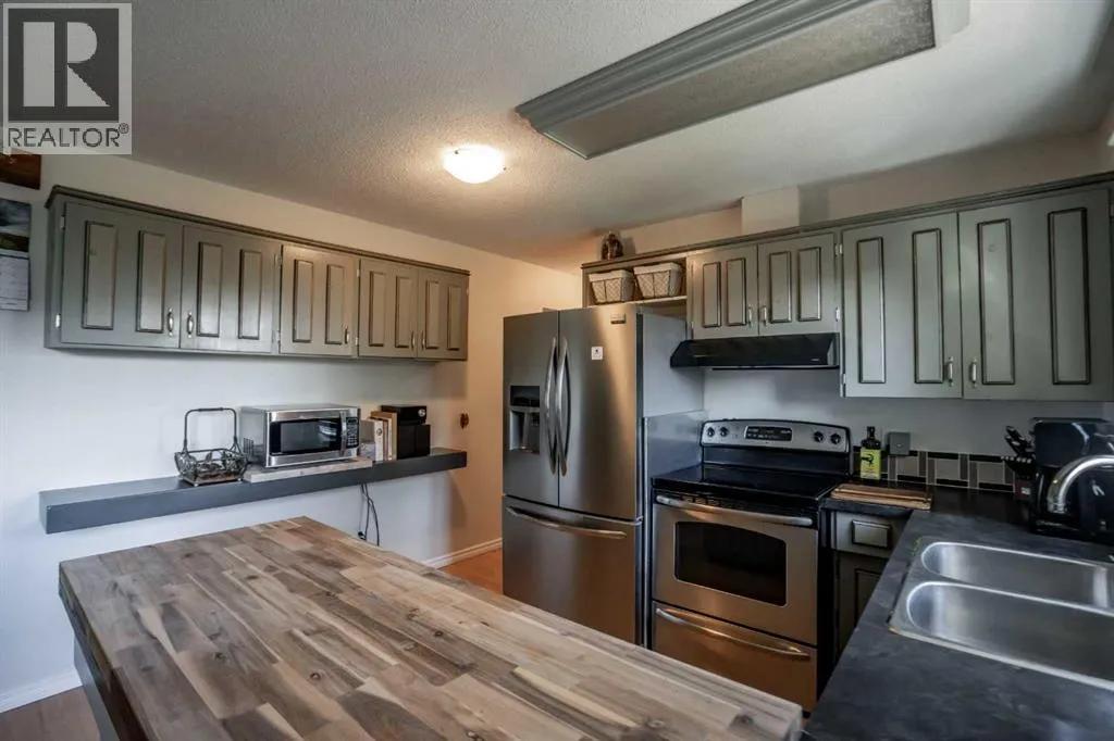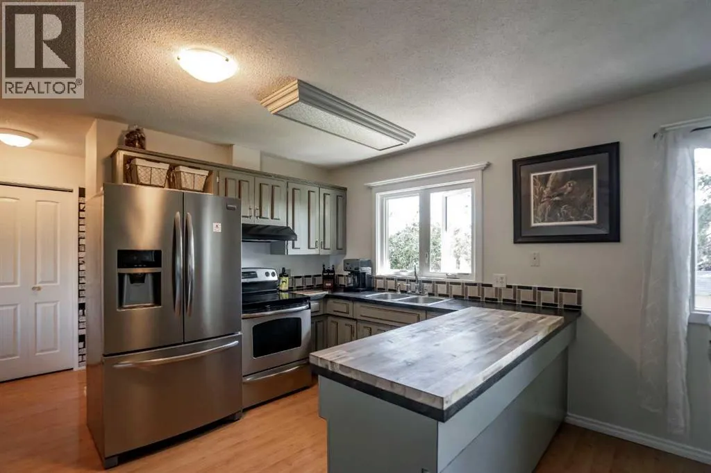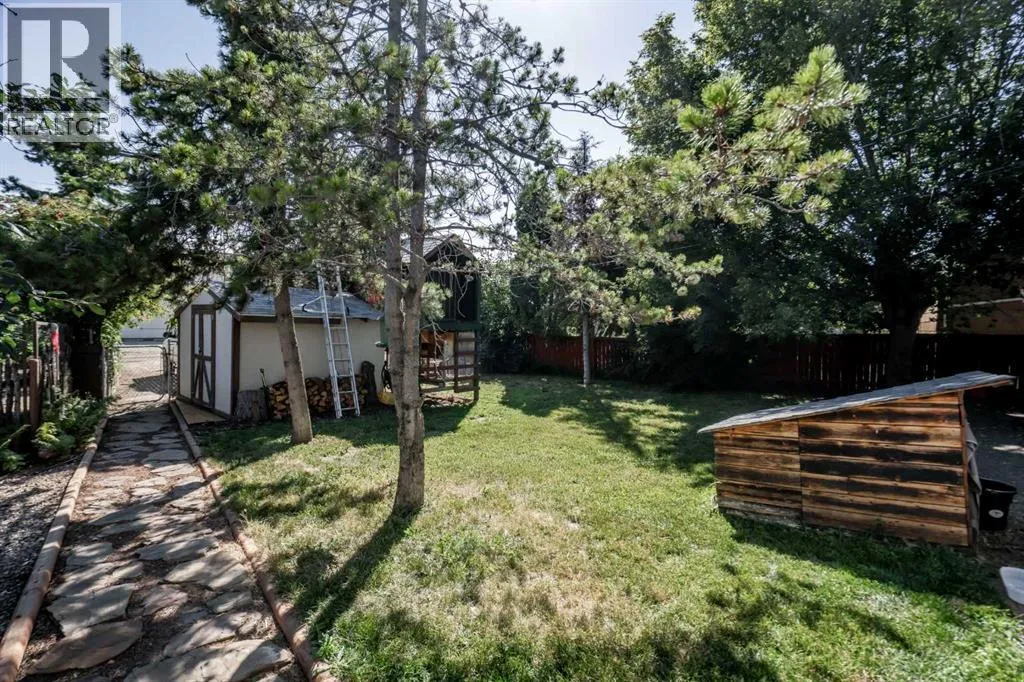 This beautiful 4 bed 2 bath home is located on a lot and a half just blocks away from downtown shopping, groceries and the multiplex, outdoor pool, multiple schools just mere steps away from the house. This home boasts 1105 square feet with a single attached garage and a fully finished basement. Inside your home you will find a beautiful open concept kitchen and dinning room with ample space for the cook in the family. Large windows in the spacious living room letting in tons of natural light. Down the hall you have 3 bedrooms and a renovated 4 piece bathroom. Downstair you have a large living room / rec room with an additional large bedroom, office or den, tons of storage and your laundry room. Outside in your fully fenced private backyard oasis you will find a fire pit area with a gazebo, waterfall feature, shed, large garden and tons back alley parking perfect for multiple vehicles and a RV! Don't miss out and call today for a viewing (id:27476)
