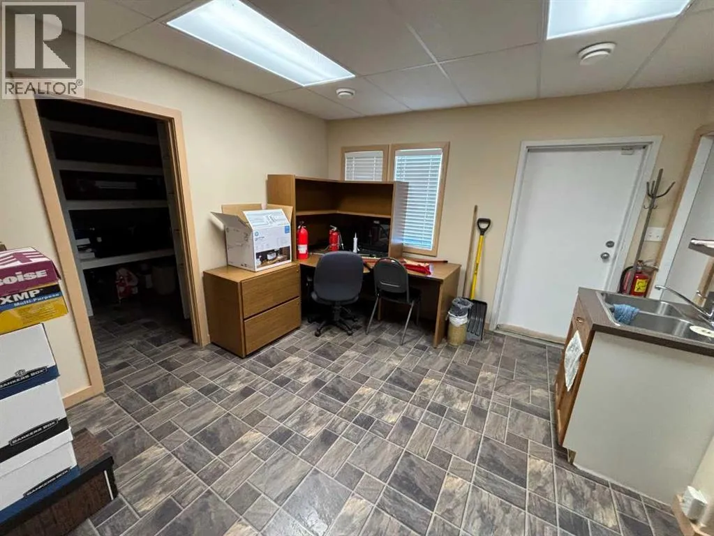 Move in ready office building in a great location in Grimshaw. With 3 enclosed offices and room for more open work stations, this building has many possibilities. There is additional storage and a lunch room area as well. Ready to go with plenty of parking and air conditioned to keep it cool in the summer. Why lease a space when you could own. Being located on the edge of a residential street, the option to have the property rezoned to residential is another option to consider. Call for your appointment to view. (id:27476)