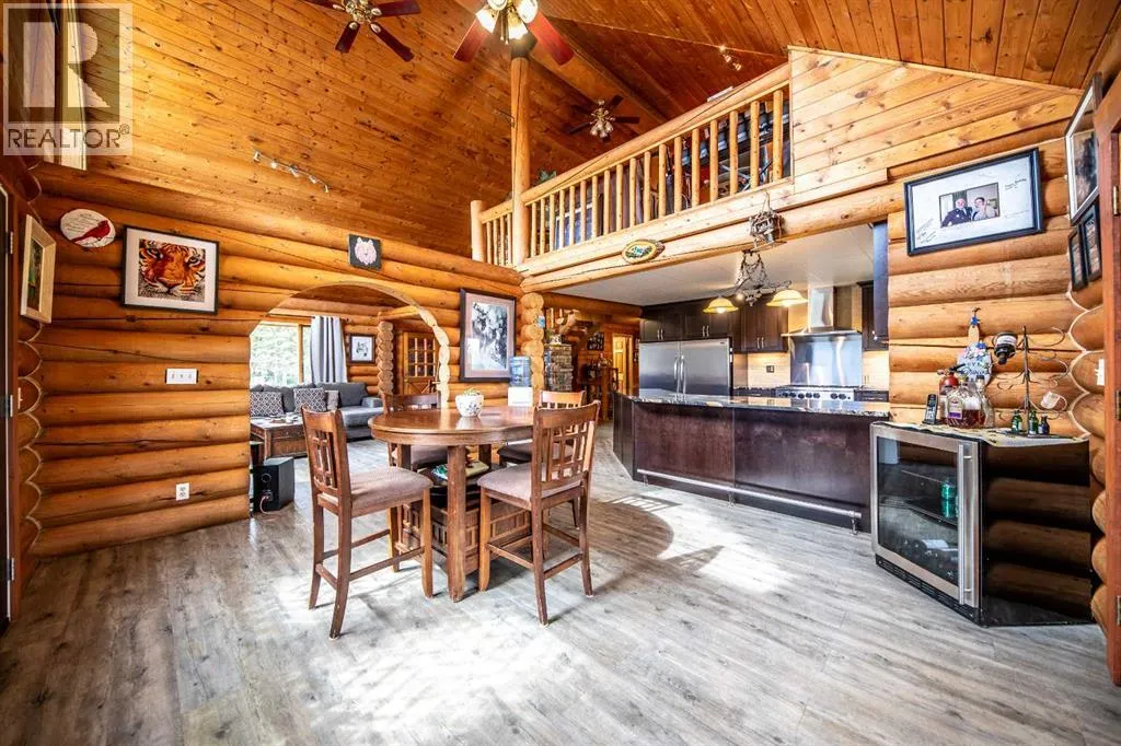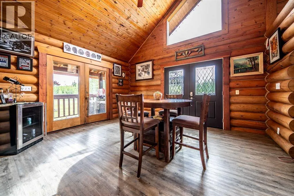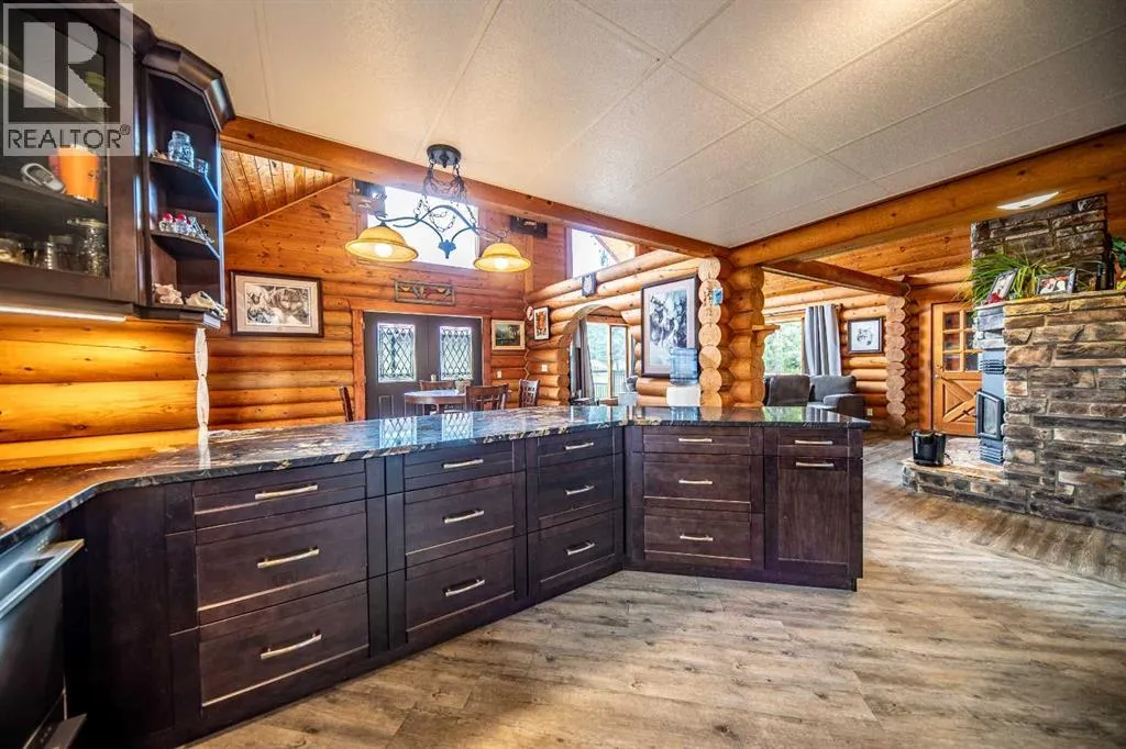 Imagine waking up each morning surrounded by 111+ acres of pristine natural beauty, with towering trees, and endless skiesâyet still within easy reach of city convenience. Perfectly positioned between Grande Prairie and Grande Cache, this stunning log chalet home is your gateway to a life that balances serenity with opportunity. Just 26 minutes from Grande Prairie and 37 minutes to the tranquil Musreau Lake, this 5-bedroom, 3.5-bathroom retreat is designed for those who want more from lifeâmore space, more peace, and more time at home. Step inside to a warm, inviting interior featuring a fully renovated kitchen with high-end stainless steel appl's, an 6-burner gas stove, two-drawer dishwasher, and expansive granite countertops. Whether youâre preparing a quiet dinner or hosting family and friends, this kitchen is ready for it all. Enjoy cozy winters with heated floors and a new wood-burning fireplace. Upstairs, a 2-storey loft offers private bedrooms and a full bath, while a finished basement includes a wet bar, games room, and additional bedroomâplenty of space to relax or entertain. Outside, unwind on your south-facing deck, complete with gazebo and hot tub, or take advantage of the 35x40 heated shop built in 2020 with radiant heat, concrete floors, drains and two 10ft overhead doors. For the entrepreneurial spirit, this property offers a turnkey opportunity. A fully operational and well-established kennel business (18 years strong) is included, with everything in placeâfrom grooming facilities to private dog and cat runs, client-ready office space, and a loyal customer base. Ideal for pet lovers ready to work from home while living in harmony with nature. Additional features include: 2 chicken coops, 16x20 greenhouse, wood shed, 24x35 woodworking building. Cleared 40-acres âideal for pasture, RV/boat storage, or other commercial use. Highway access for visibility and convenience. Whether you're dreaming of a slower pace, space to grow a business, or just a more meaningful way of living, this rare property delivers. Nature, comfort, and potentialâall in one place. (id:27476)