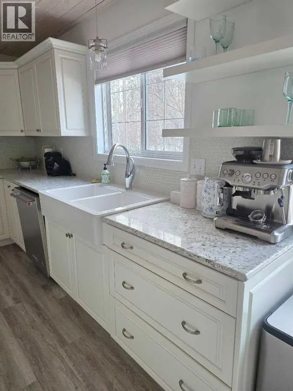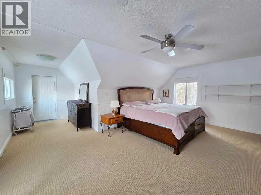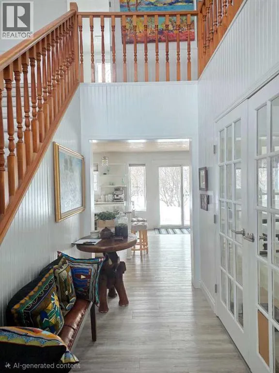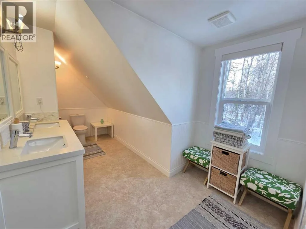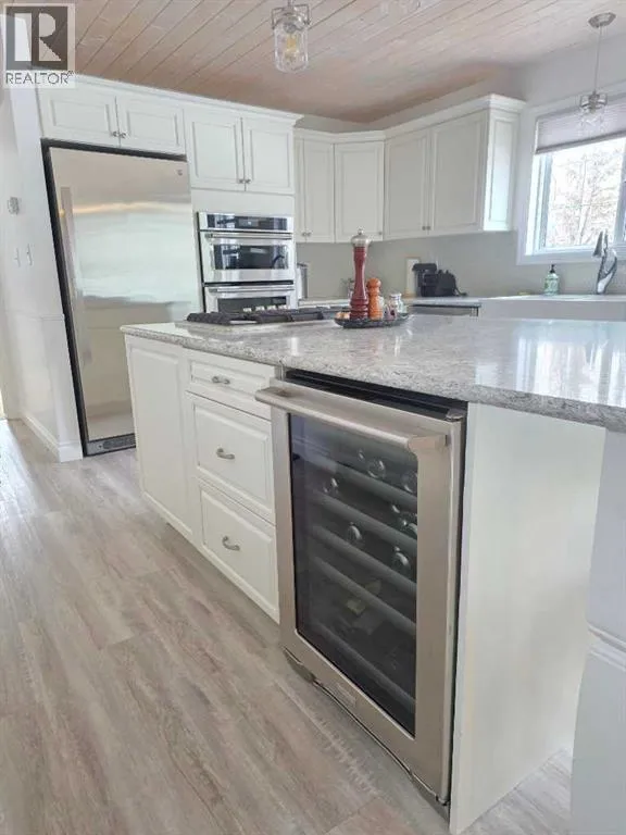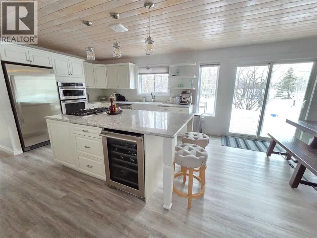 Welcome to the peace and serenity of country living with this charming, renovated home and beautifully treed 5.6 acres of land. Just outside the hamlet of Grovedale and only 15 minutes from Grande Prairie. This spacious home has been completely renovated and boasts a professionally installed kitchen complete with an oversized island with gorgeous granite countertops, gas stove top, wine cooler, lots of beautiful cabinetry. Plus, a wall of pull-out pantry drawers, high-end stainless-steel appliances, and a lovely large farmhouse sink. Patio doors lead from the dining area out to the expansive maintenance free deck. The family room area is separated by glass French doors and boasts a very stylish gas fireplace, with large windows for great views and natural light. There is a large bedroom with a walk-in closet and a wall of wardrobe cabinets, and ensuite with a large soaker tub. The other spacious bedroom on the main level has been made into an office/study room with a nice large window seat, and lots of great storage. There is main floor laundry as well as a 2-piece bathroom. Upstairs you will find another cozy sitting room and study area, as well as the very large master bedroom with a charming gas stove fireplace. A spacious full bathroom that features double sinks, with separate tiled shower and soaker tub. An additional very large bedroom can fit two beds, with lovely window seats and fantastic views out the windows. The double garage has extension to make it larger, is heated and finished with fantastic wood panel walls, plus has an EV charger that can be also used for your RV. Most all the windows and blinds are brand new, and patio doors as well. There is a water softener and RO water system. The well was serviced in 2024, and there is an option to hook up to municipal water if you decide. Shingles were replaced in 2018, and the 2-stage septic system was replaced in 2020. The overhead garage doors are new in the last 5 years, as well as the deck upgraded to c omposite maintenance free boards. The yard is landscaped with lots of weeping tile for great drainage, and features a lovely fire pit area, and childrenâs play fort area. The property is fully fenced and boasts lots of trees. The Driveway that leads to the home has a circle drive around and plenty of parking space. This is a wonderful place to enjoy and call home! Plus its only minutes away from the Nitehawk ski and recreation park. (id:27476)