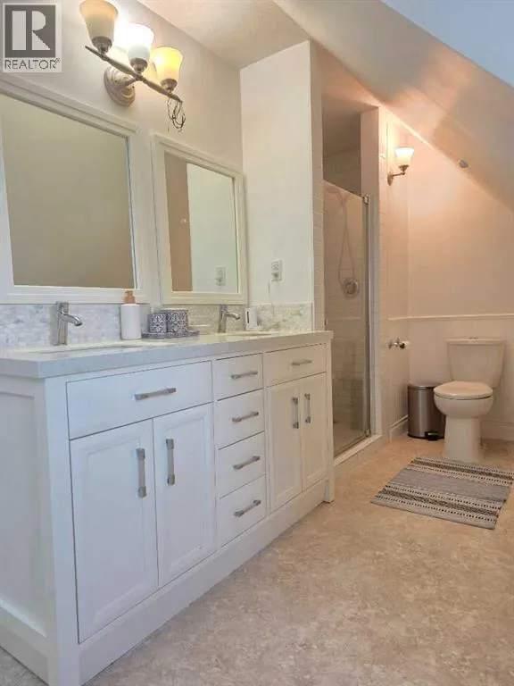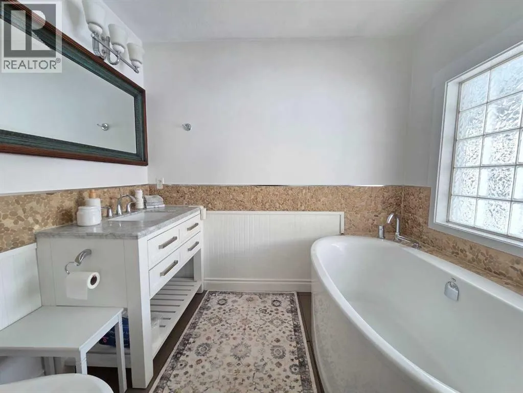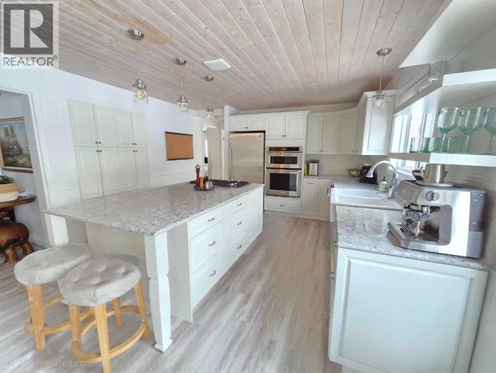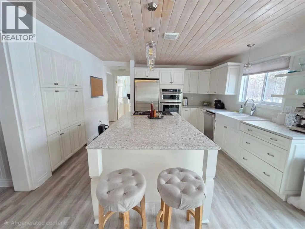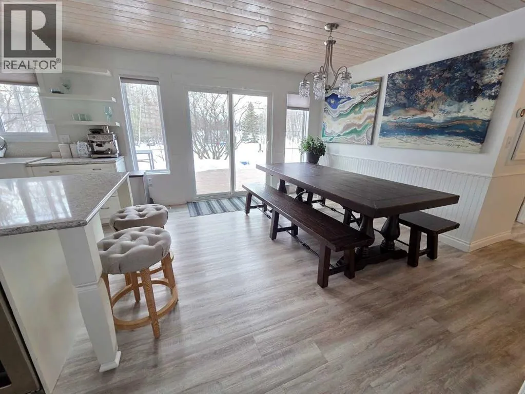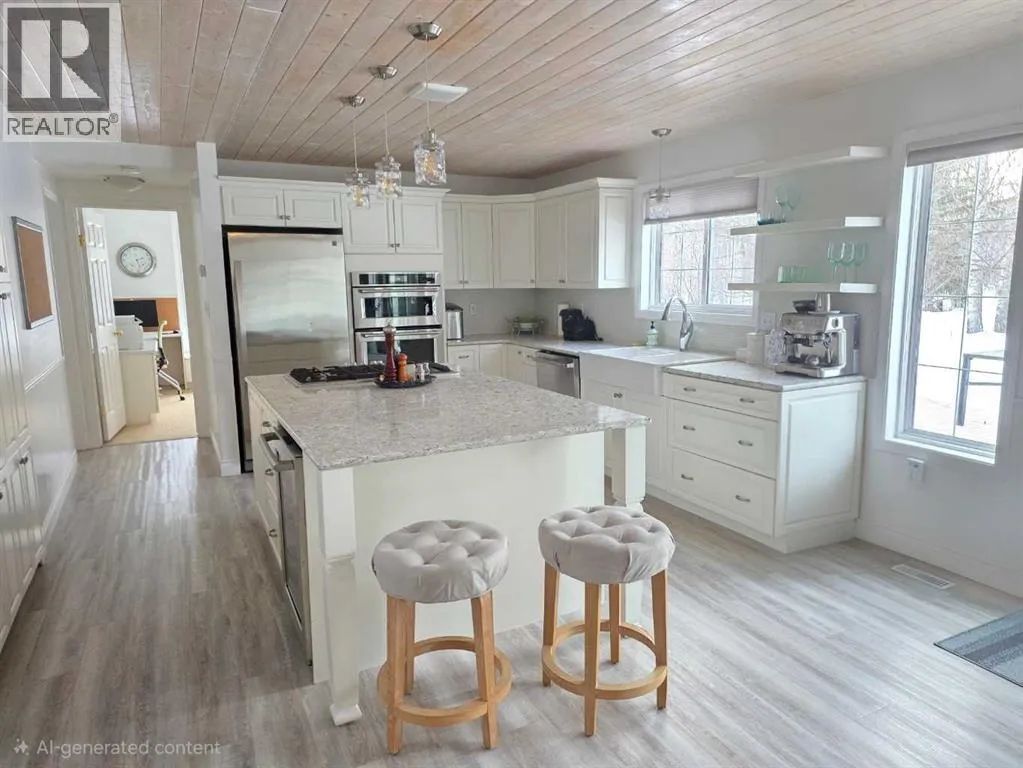Welcome to the peace and serenity of country living with this charming, renovated home and beautifully treed 5.6 acres of land. Just outside the hamlet of Grovedale and only 15 minutes from Grande Prairie. This spacious home has been completely renovated and boasts a professionally installed kitchen complete with an oversized island with gorgeous granite countertops, gas stove top, wine cooler, lots of beautiful cabinetry. Plus, a wall of pull-out pantry drawers, high-end stainless-steel appliances, and a lovely large farmhouse sink. Patio doors lead from the dining area out to the expansive maintenance free deck. The family room area is separated by glass French doors and boasts a very stylish gas fireplace, with large windows for great views and natural light. There is a large bedroom with a walk-in closet and a wall of wardrobe cabinets, and ensuite with a large soaker tub. The other spacious bedroom on the main level has been made into an office/study room with a nice large window seat, and lots of great storage. There is main floor laundry as well as a 2-piece bathroom. Upstairs you will find another cozy sitting room and study area, as well as the very large master bedroom with a charming gas stove fireplace. A spacious full bathroom that features double sinks, with separate tiled shower and soaker tub. An additional very large bedroom can fit two beds, with lovely window seats and fantastic views out the windows. The double garage has extension to make it larger, is heated and finished with fantastic wood panel walls, plus has an EV charger that can be also used for your RV. Most all the windows and blinds are brand new, and patio doors as well. There is a water softener and RO water system. The well was serviced in 2024, and there is an option to hook up to municipal water if you decide. Shingles were replaced in 2018, and the 2-stage septic system was replaced in 2020. The overhead garage doors are new in the last 5 years, as well as the deck upgraded to c omposite maintenance free boards. The yard is landscaped with lots of weeping tile for great drainage, and features a lovely fire pit area, and childrenâs play fort area. The property is fully fenced and boasts lots of trees. The Driveway that leads to the home has a circle drive around and plenty of parking space. This is a wonderful place to enjoy and call home! Plus its only minutes away from the Nitehawk ski and recreation park. (id:27476)