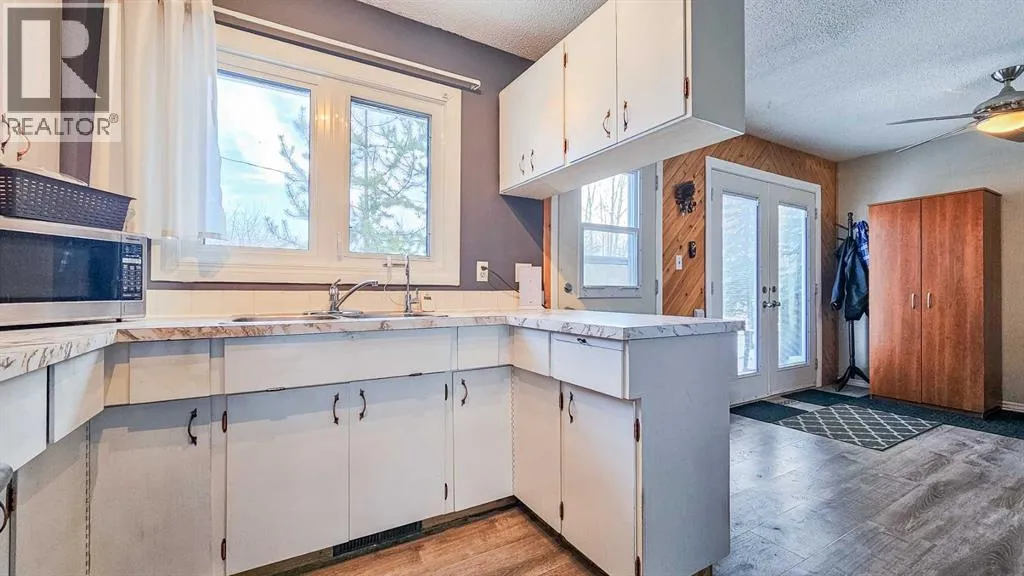 Set on 4.88 acres with paved access right to the driveway, this charming acreage offers privacy, functionality, and a peaceful natural setting. The 900 sq. ft. bi-level home has seen several updates over the years and is complemented by a single detached garage and a shop, providing excellent space for vehicles, hobbies, or storage. The property features a seasonal creek, a dugout, and a beautiful stand of mature trees at the back, where a private trail system offers the perfect setting for ATV rides, walking, or simply enjoying the serenity of your own land.Inside, the main level includes two bedrooms and a full bathroom, along with a U-shaped kitchen, dining area and living room. Garden doors off the dining room lead to a large deck, ideal for relaxing and enjoying your morning coffee while taking in the surrounding views.The lower level offers two additional generously sized bedrooms, another bathroom, and a cozy family room featuring a wood-burning stove, creating the perfect retreat on cold winter evenings.Over the years, the home has benefited from several updates, including newer windows, vinyl plank flooring, and updated bathroom vanities, sinks, and toilets. Additional improvements include shingles (approximately 10 years ago), furnace (2007), electrical panel upgrade (2007), new well pump (2016), and hot water tank (2021).This well-maintained acreage offers a wonderful balance of comfort, outdoor space, and rural tranquility, all with the convenience of paved access. (id:27476)