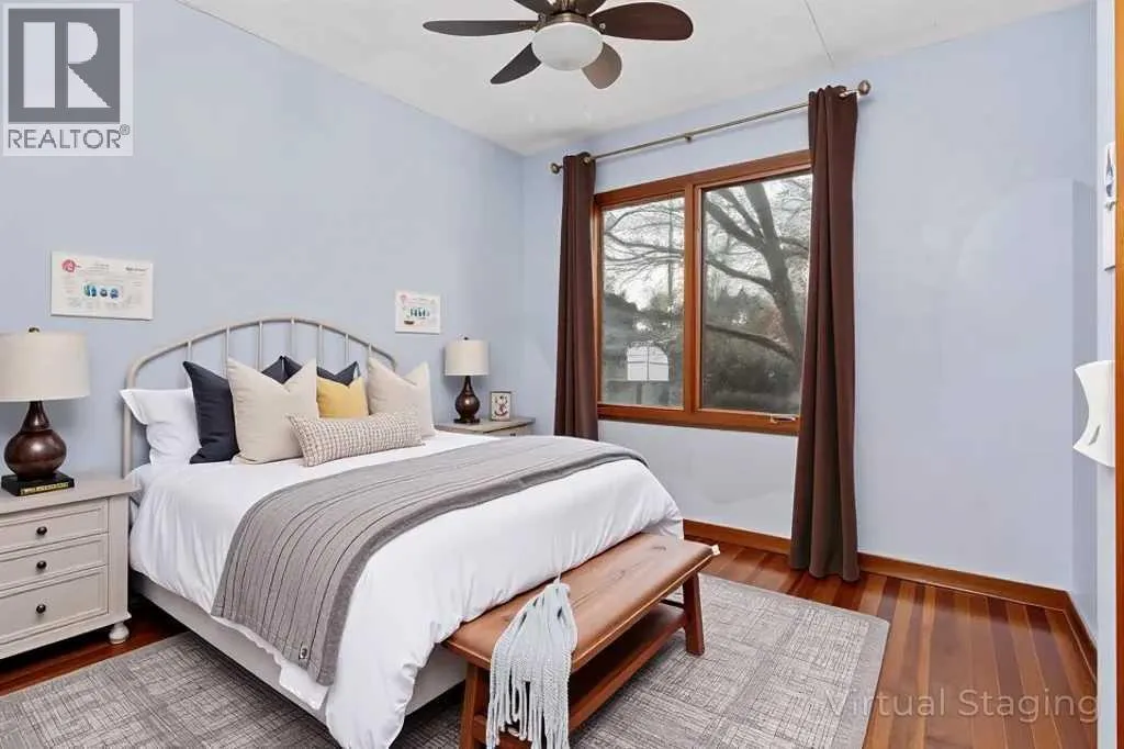 Move on In!! This is not your average bungalow - starting with immense curb appeal from the front yard to the useful backyard and deck! The yard is partially fenced with a storage shed and detached garage! The main level of this home offers just over 1,000 square feet of thoughtfully designed space! Which features hardwood flooring, two bright bedrooms and an updated full bathroom, alongside the convenience of main floor laundry. The eat-in kitchen has lots of storage and cabinet space! Going downstairs is the finished basement that showcases a spacious living room perfect for entertaining, a large bedroom for guests, and an additional 4-piece bathroom for added comfort. The home features vinyl siding, newer shingles and a new Hot Water Tank in 2022! Nestled in a welcoming community that features a lake, golf course, parks and playgrounds, grocery store, hospital, shopping, walking trails and more! (id:27476)