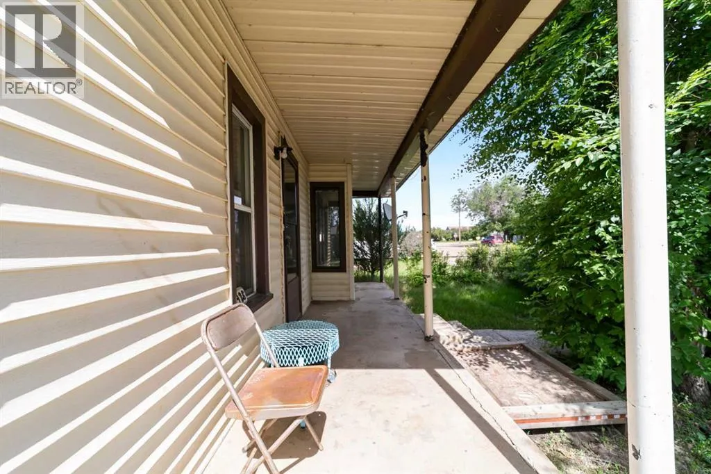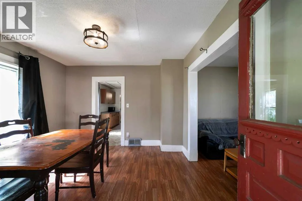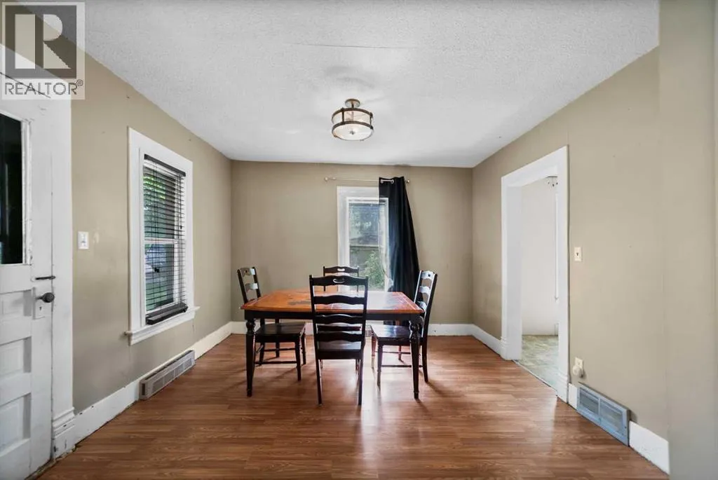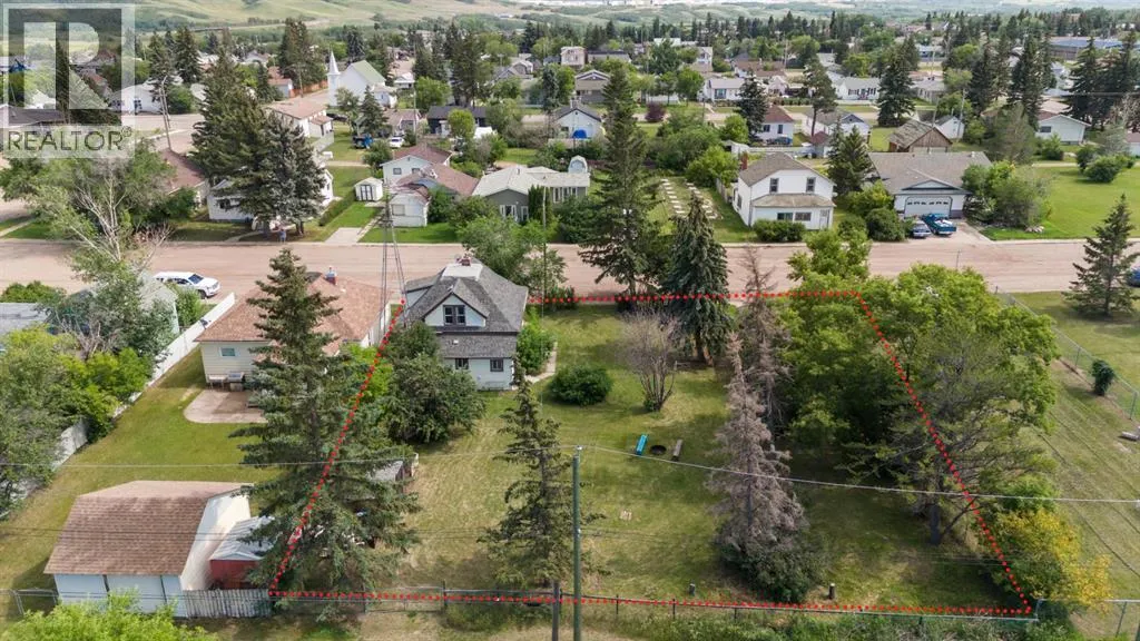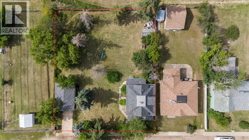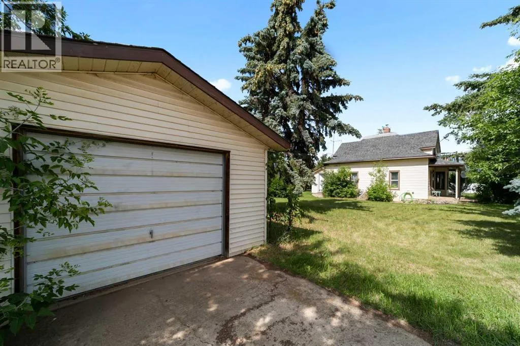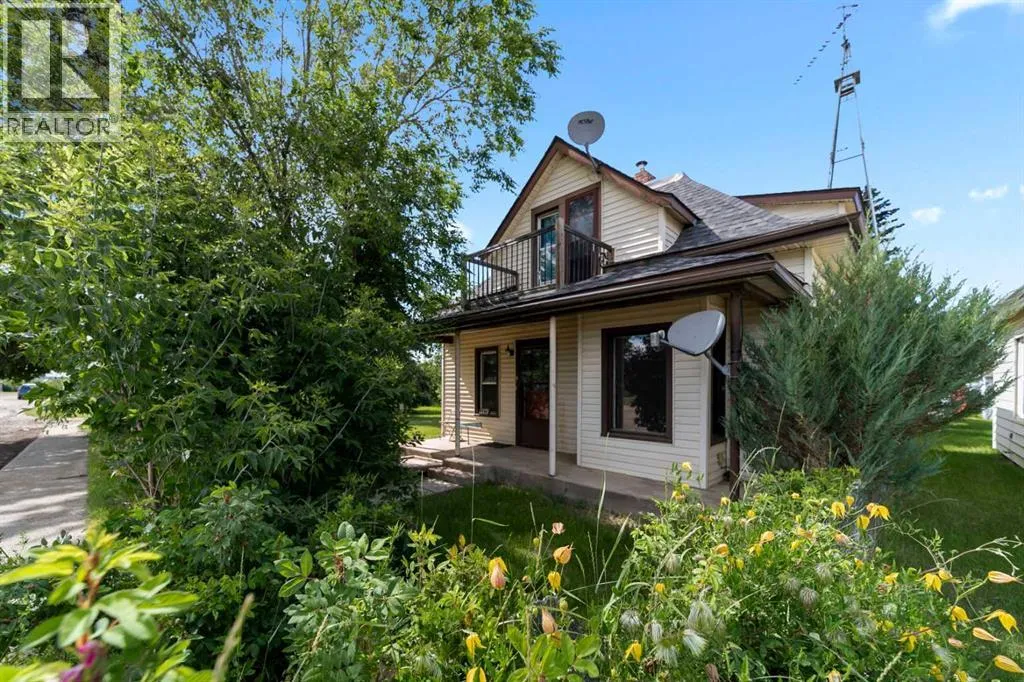 Step into timeless charm with this 1.5-story home built in 1917, ideally located in the welcoming community of Hardisty, Central Alberta. Set on a generous double lot overlooking scenic walking trails, this property offers the perfect balance of character, space, and small-town living. Inside, the home showcases original wood trim, solid wood doors, and hardwood flooring hidden beneath the carpetâready for your personal touch. The main floor offers a spacious kitchen with ample room to customize with additional cabinetry or counter space. The open-concept dining and living room areas create a warm and inviting space for gatherings. Youâll also find a convenient main floor bedroom and a 4-piece bathroom that includes laundry for added practicality. Upstairs, three more bedrooms provide room for family or guests. The basement is clean, dry, and ideal for storage, hobbies, or future development. Outdoors, enjoy the peace and privacy of a fully usable yard complete with mature trees, including a fruit-bearing apple tree, a firepit area, a detached single-car garage, and a handy garden shed. Located in a vibrant town with its own lake, golf course, campground, grocery store, bank, hospital, and local shoppingâthis is small-town living with big-time amenities. Whether you're a first-time buyer, investor, or looking for a place with character and potential, this gem in Hardisty is one to see! (id:27476)